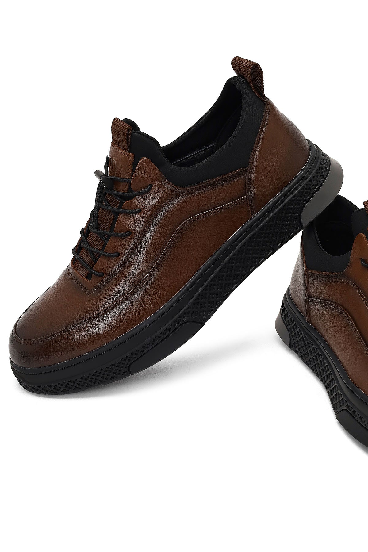 Erkek Kahverengi Bağcıklı Kalın Tabanlı Deri Sneaker