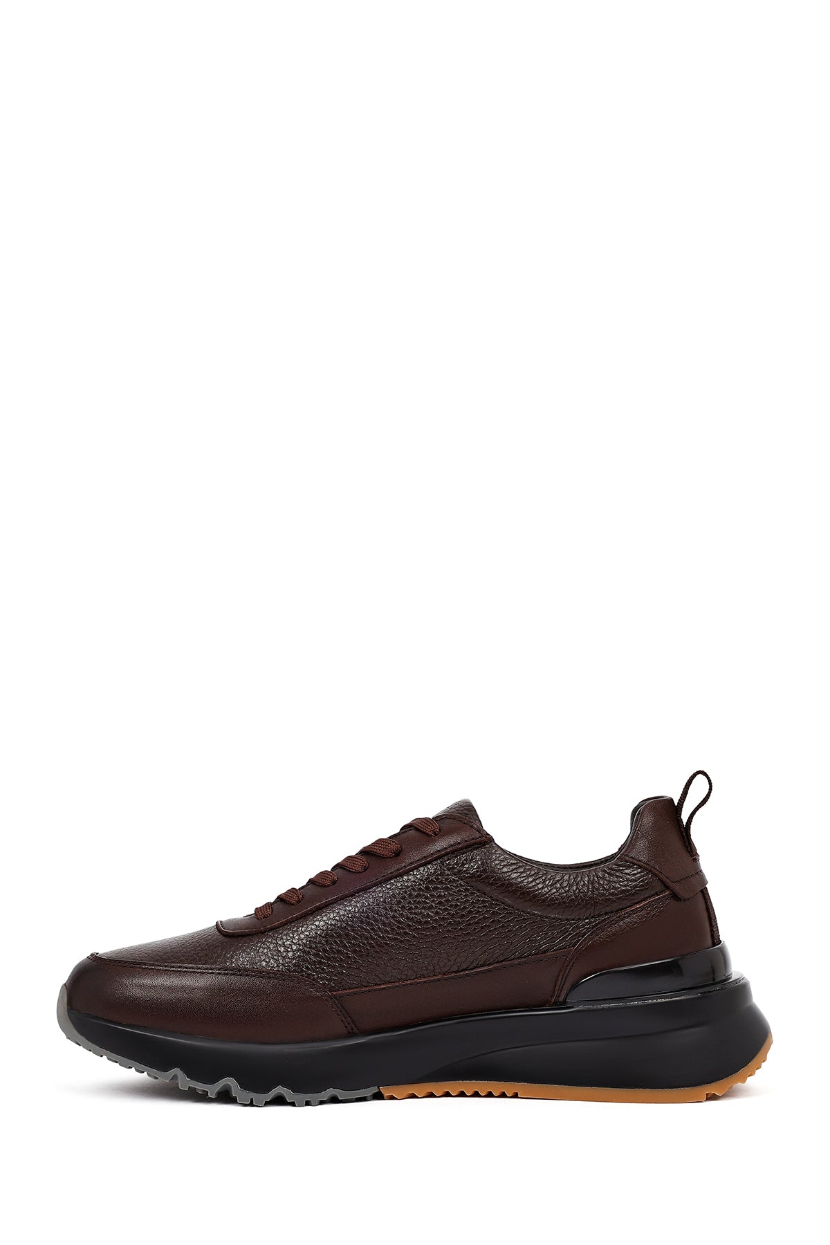 Erkek Kahverengi Bağcıklı Kalın Tabanlı Deri Sneaker