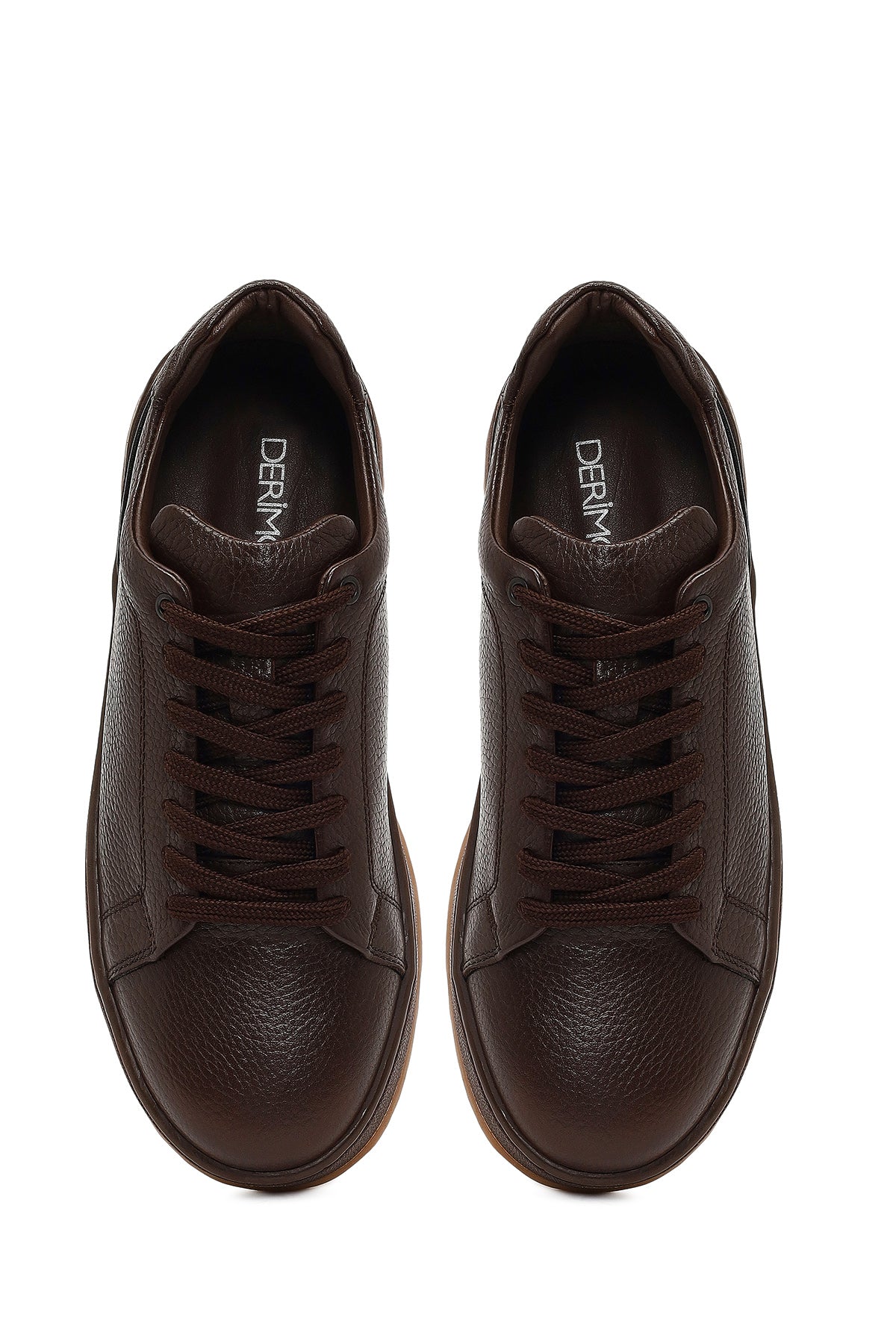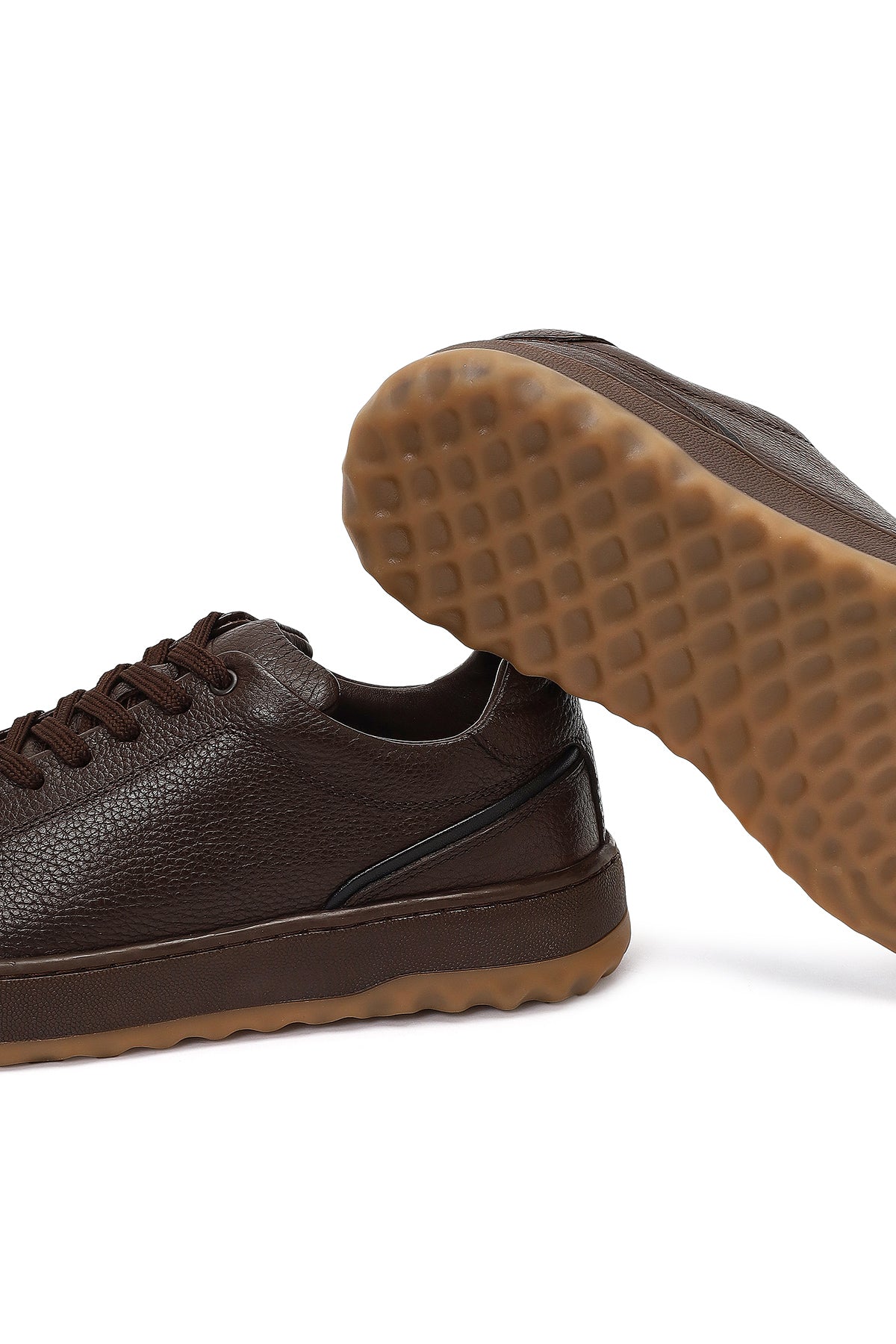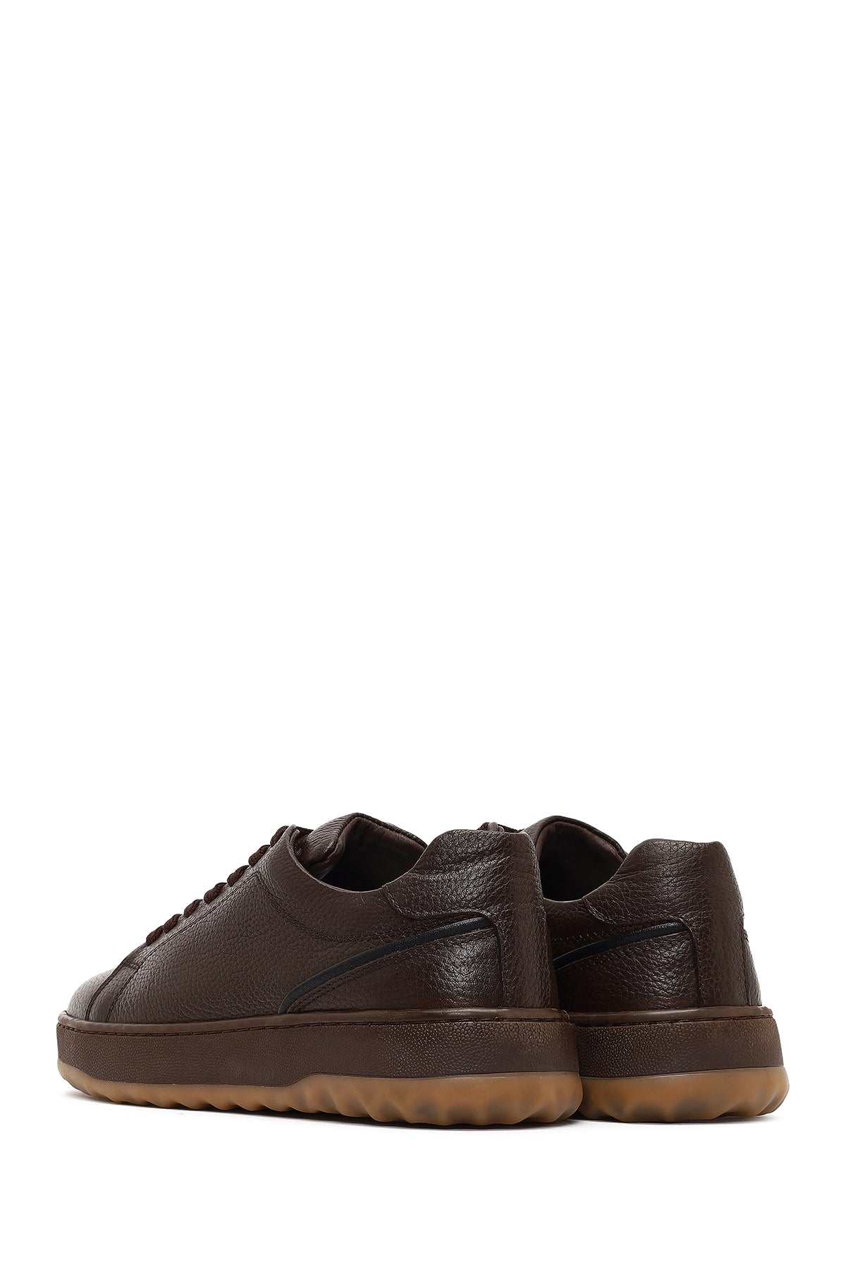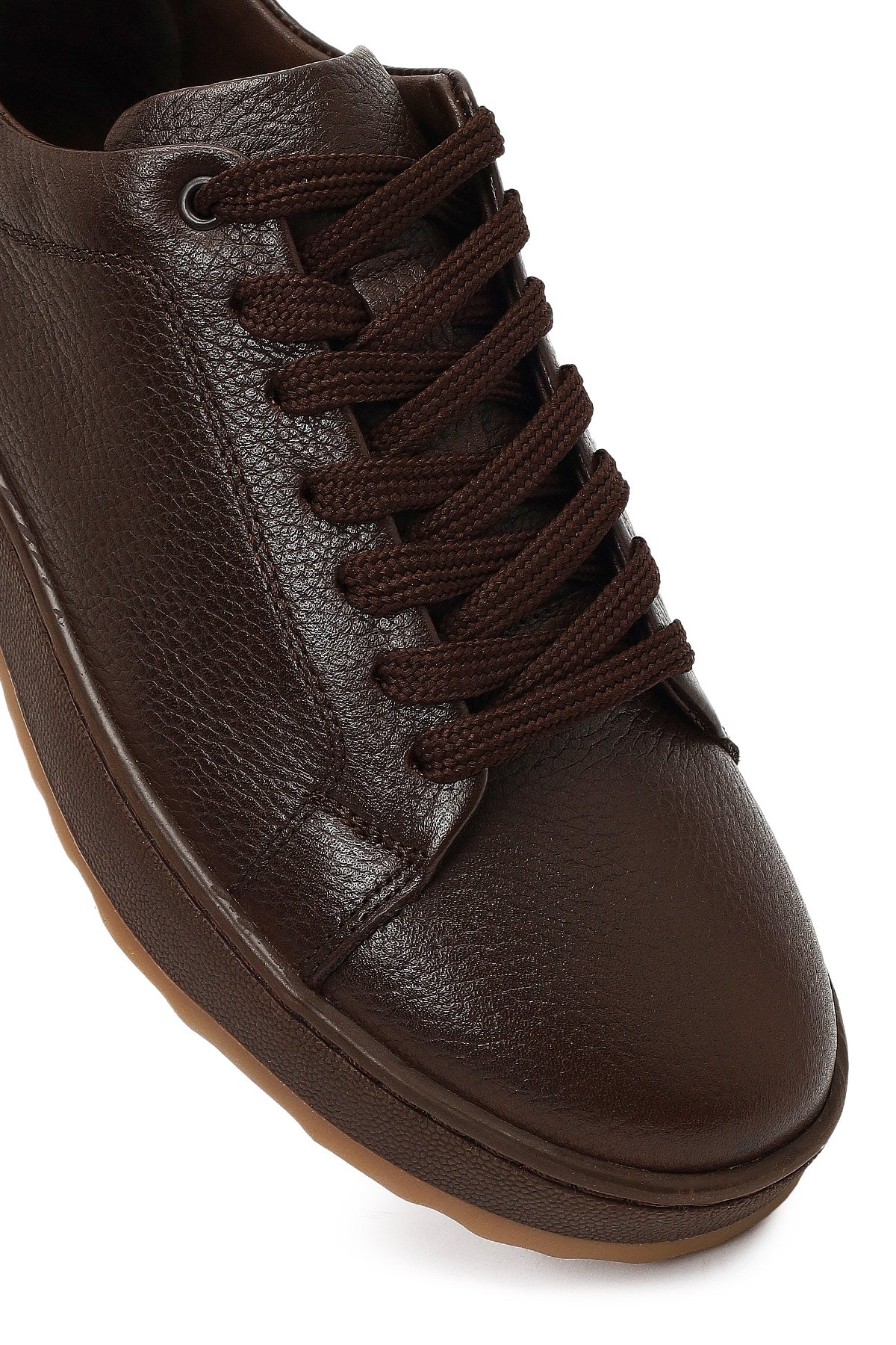 Erkek Kahverengi Bağcıklı Kalın Tabanlı Deri Sneaker