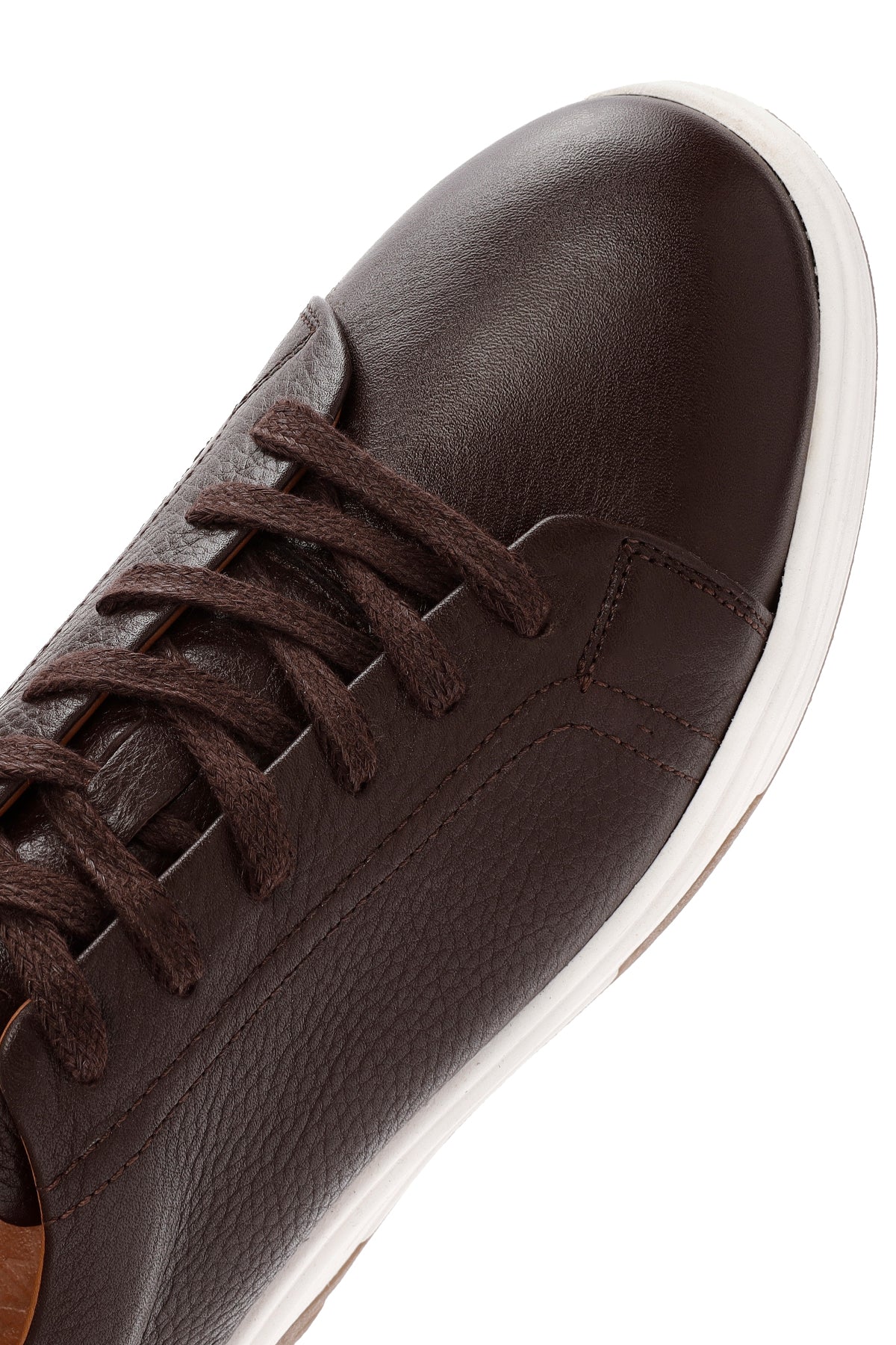 Erkek Kahverengi Bağcıklı Kalın Tabanlı Deri Sneaker