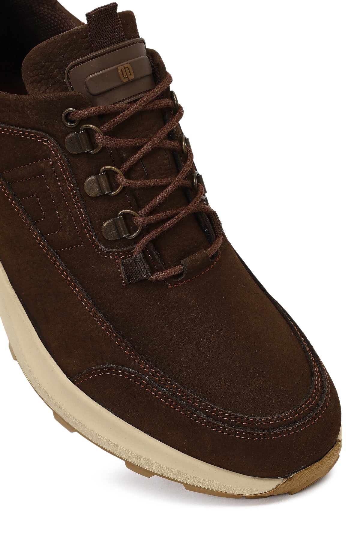 Erkek Kahverengi Bağcıklı Kalın Tabanlı Nubuk Deri Casual Sneaker