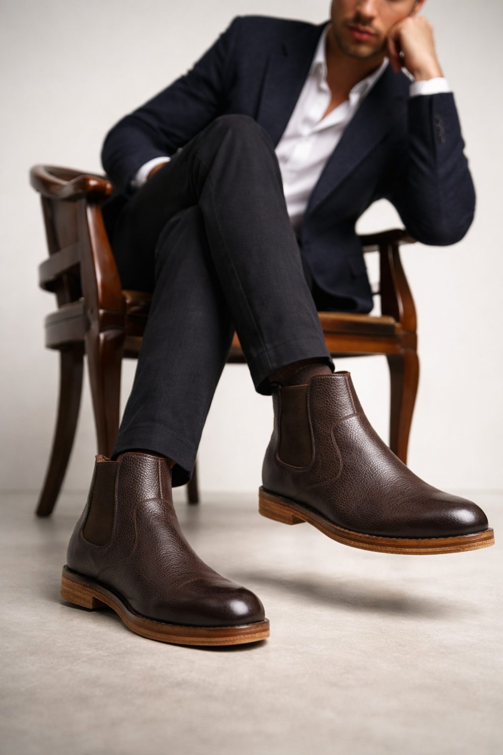 بوت چلسی کژوال چرمی مردانه قهوهای دریمد