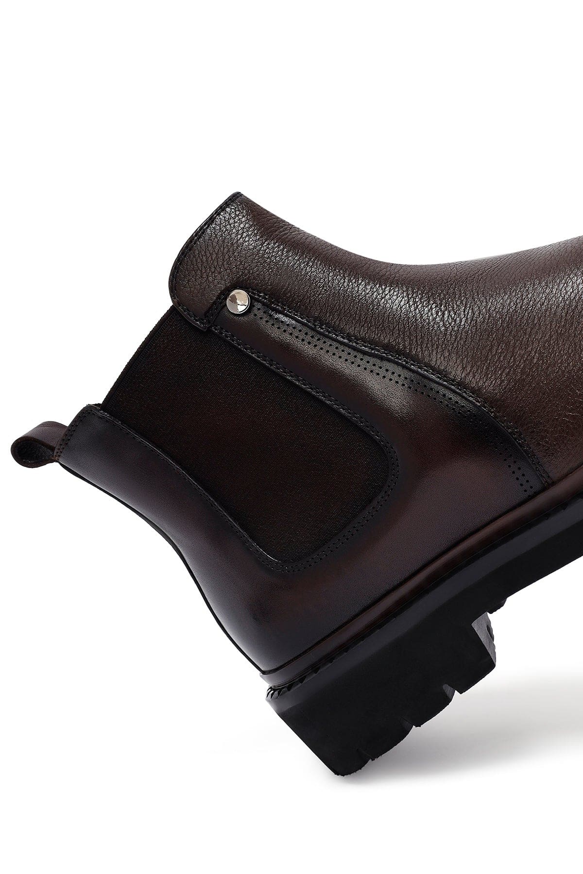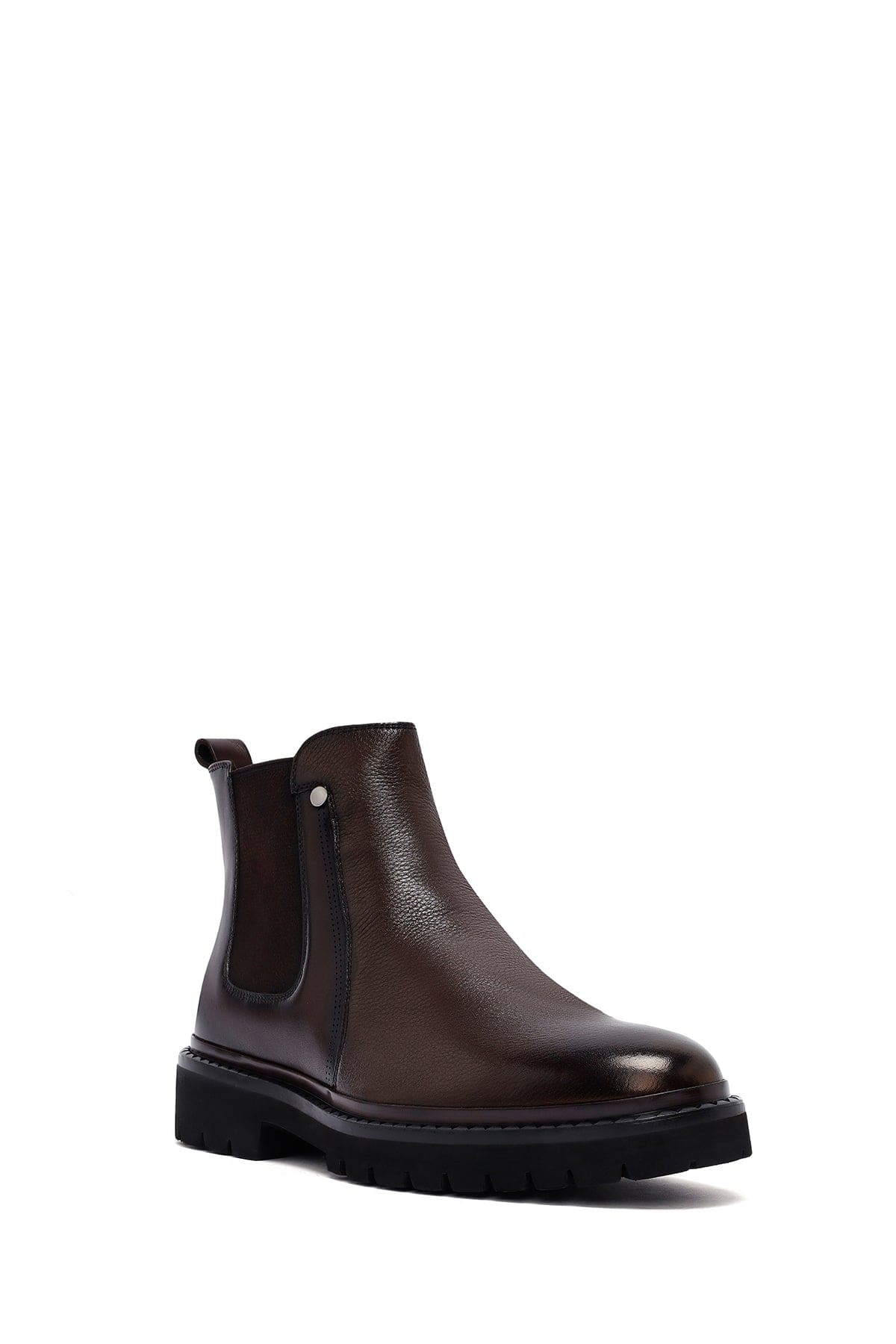 بوت مردانه چرمی قهوهای چلسی دری مد