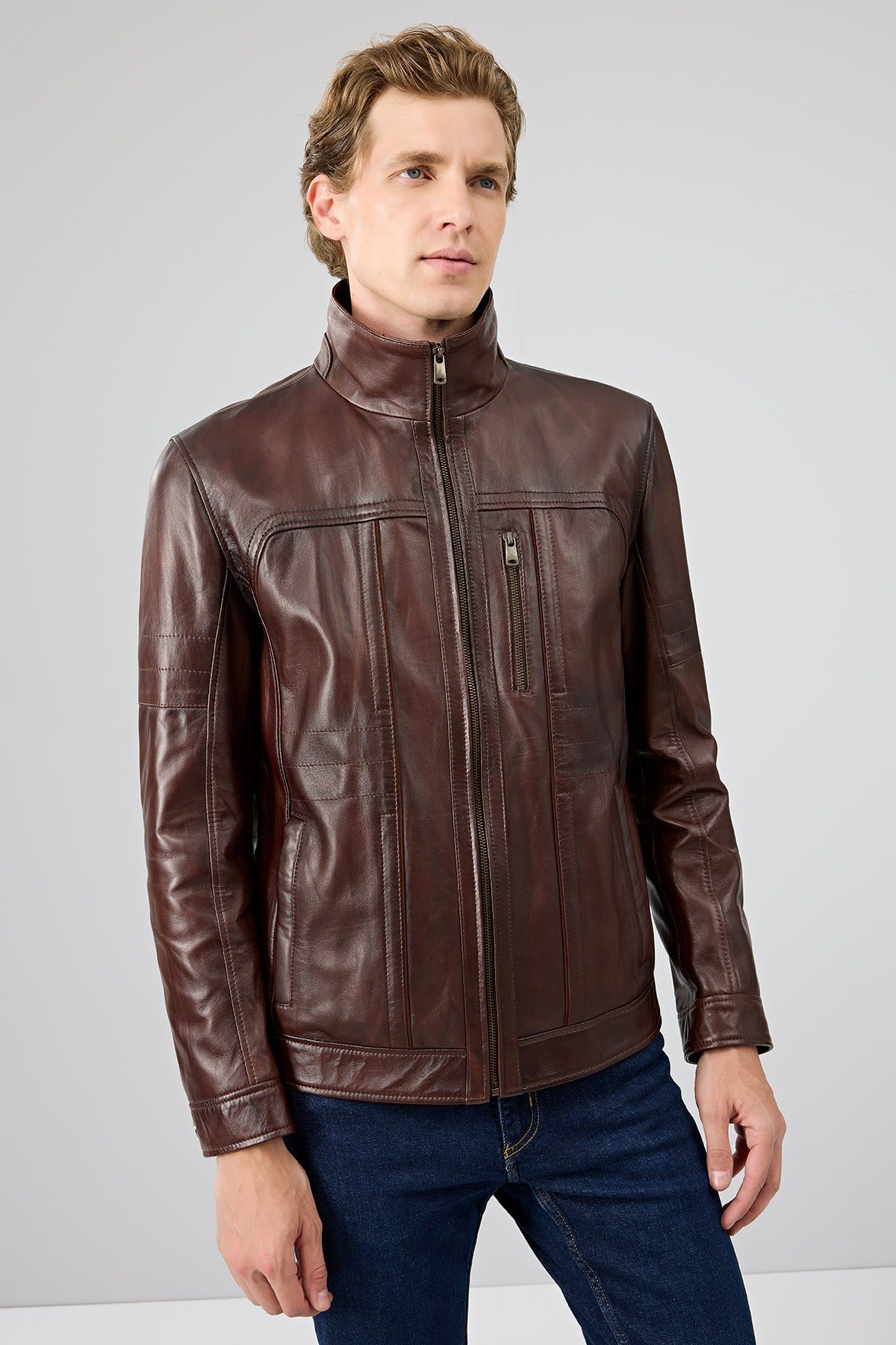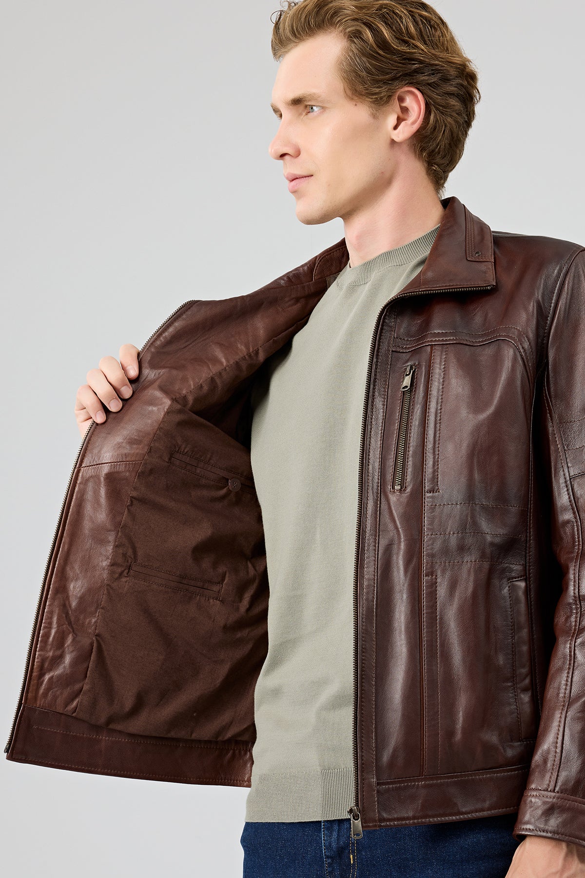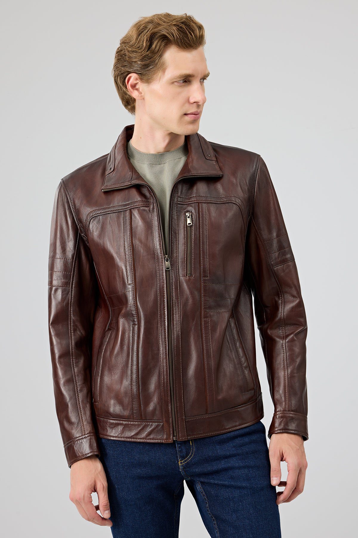 کت چرمی مردانه قهوهای Bruno دری مد