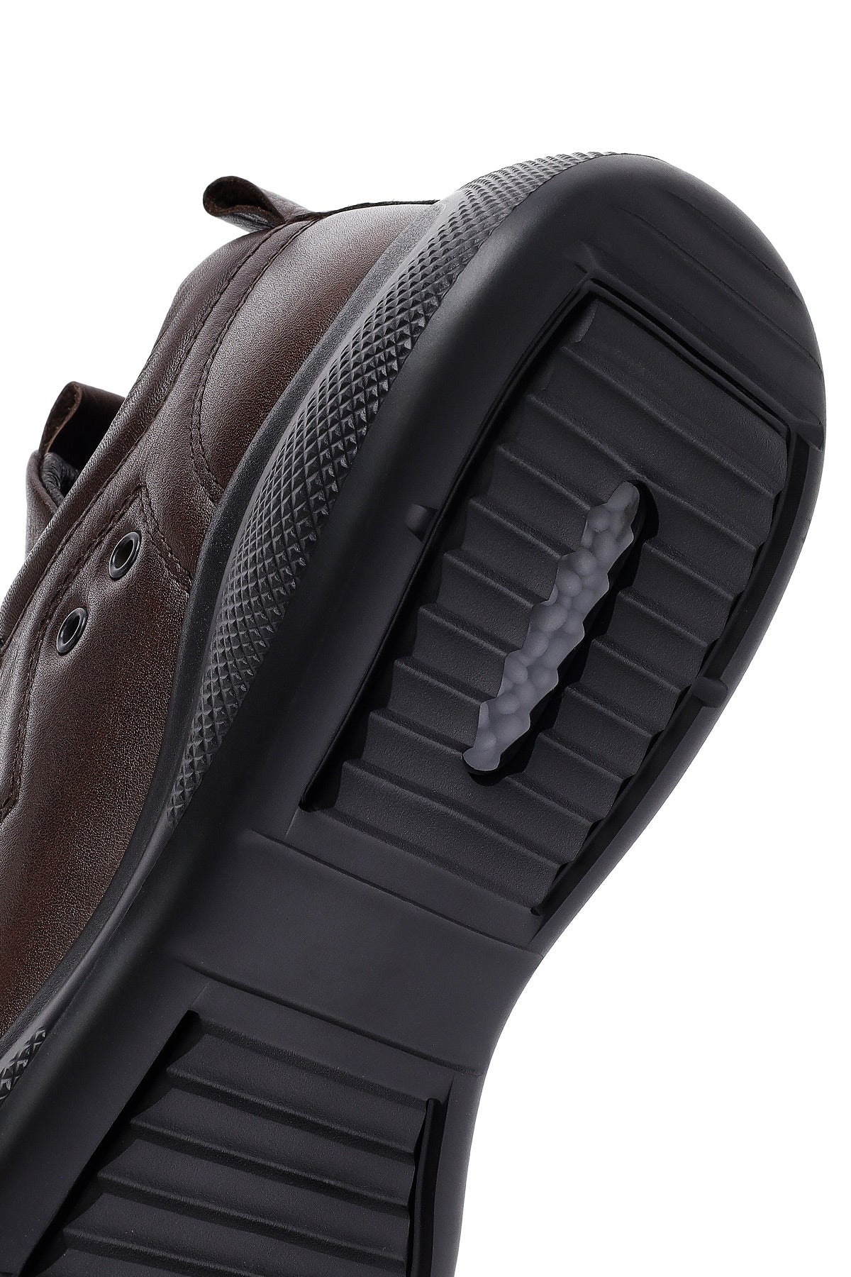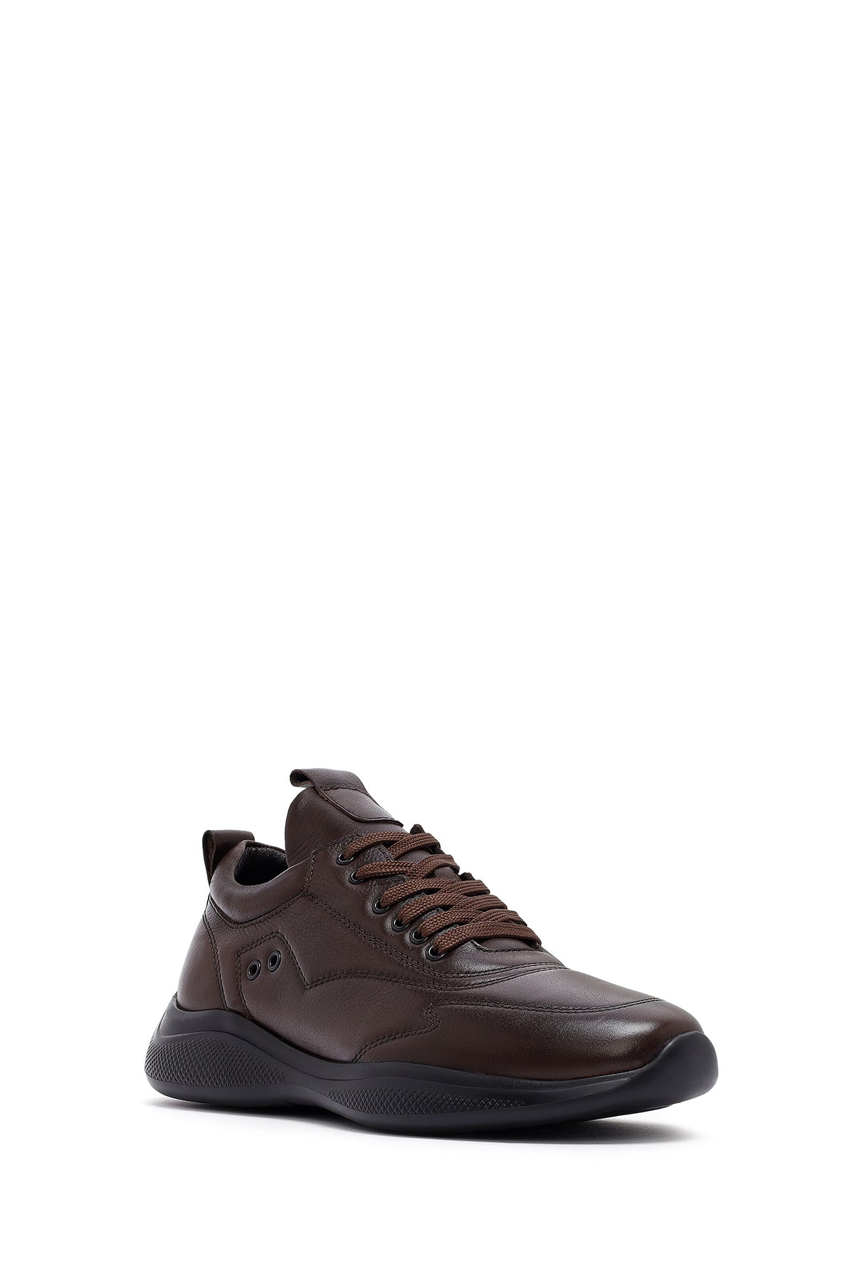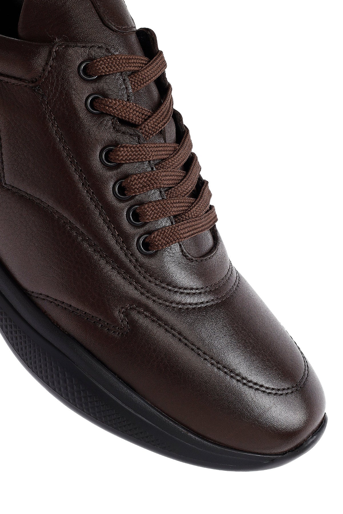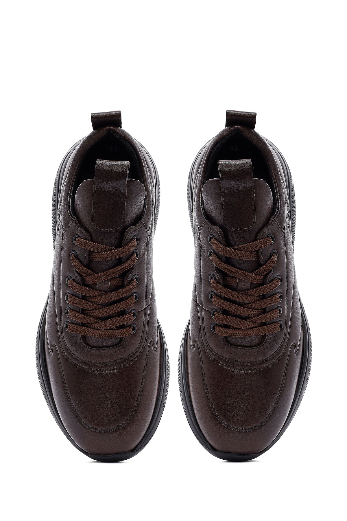 Erkek Kahverengi Bağcıklı Deri Sneaker