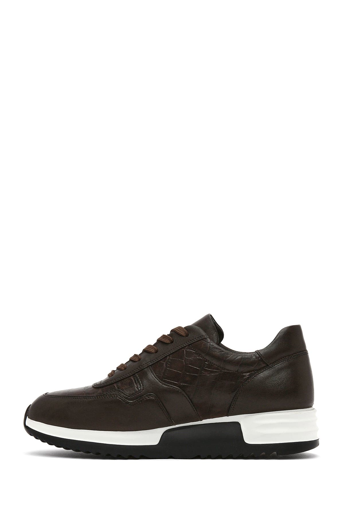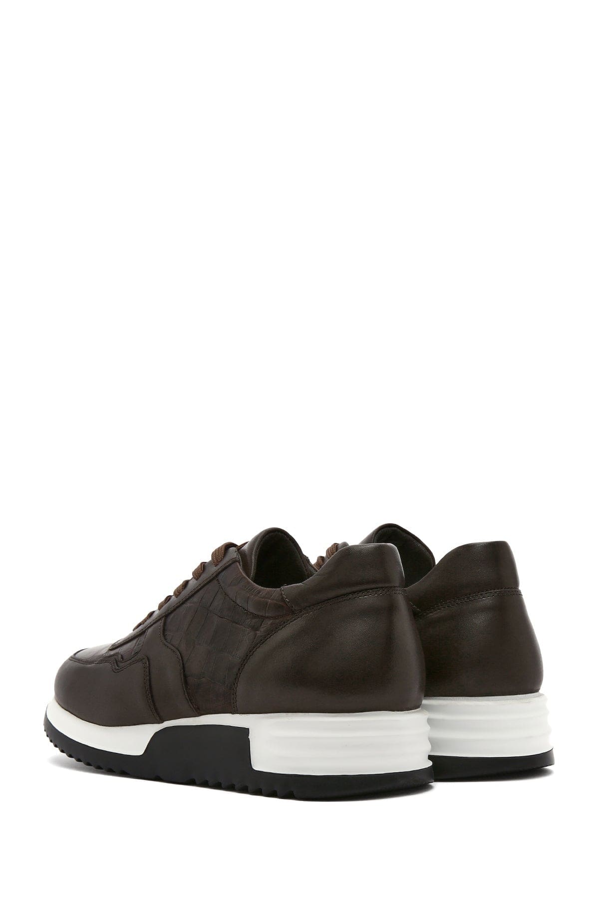 Erkek Kahverengi Bağcıklı Deri Sneaker