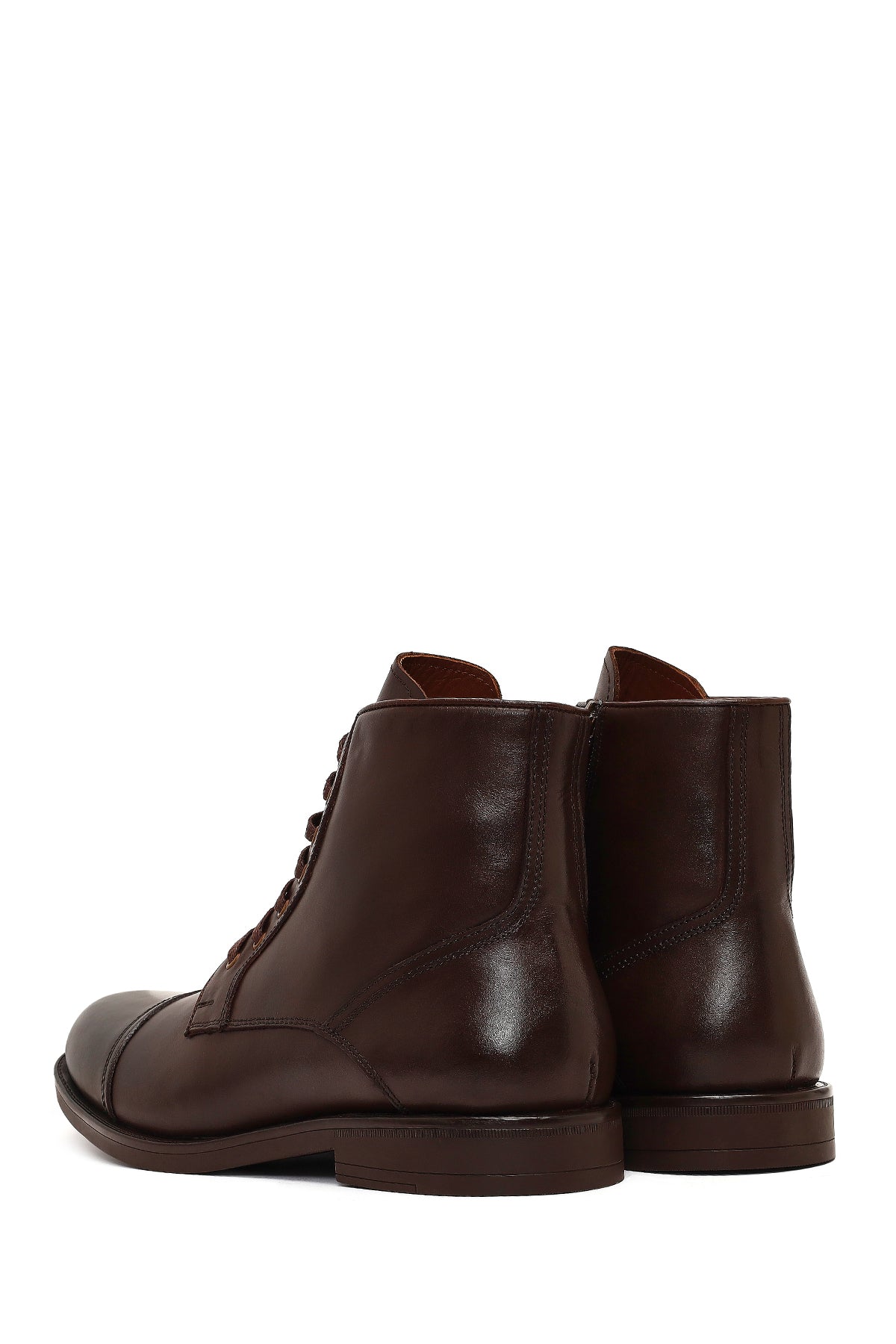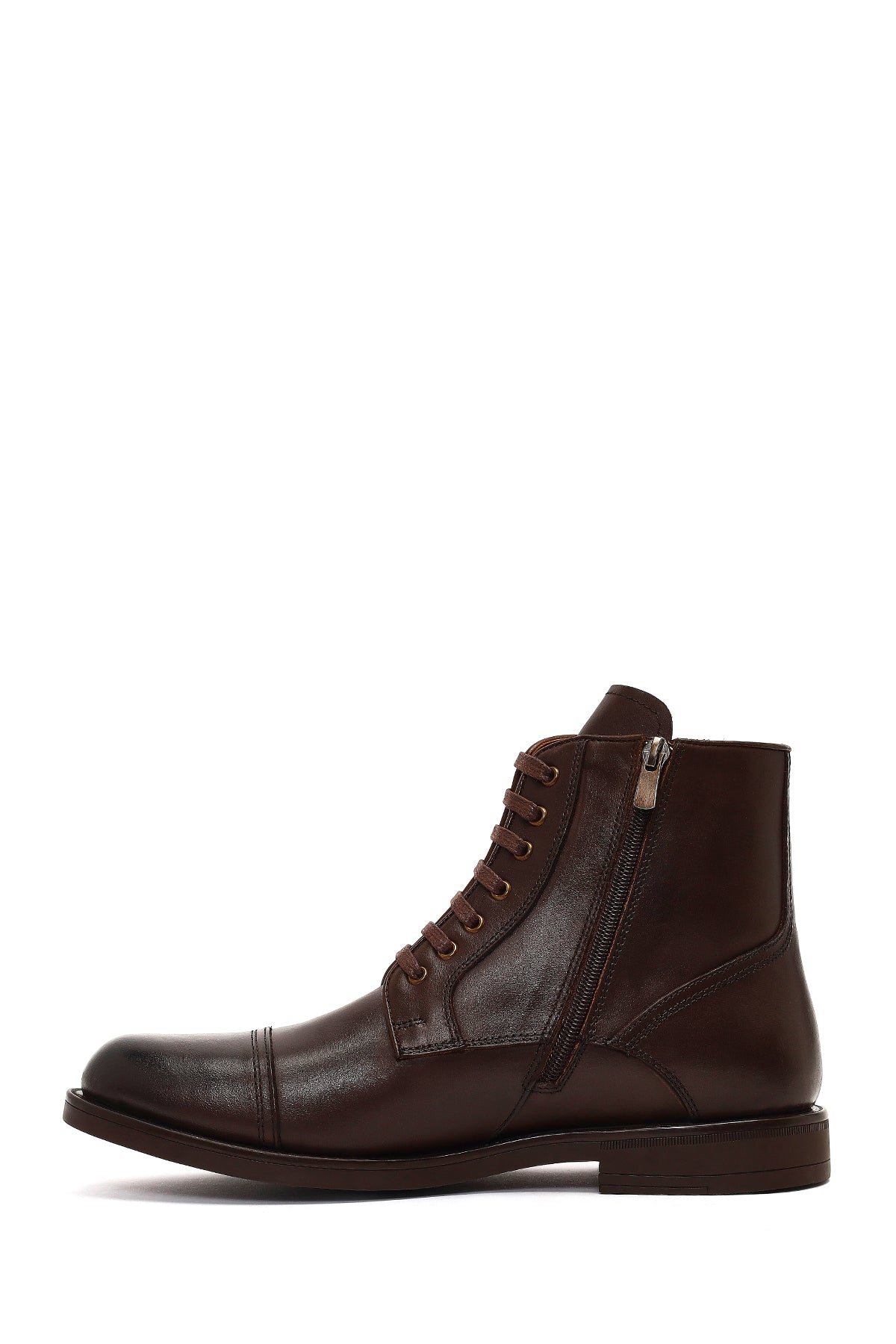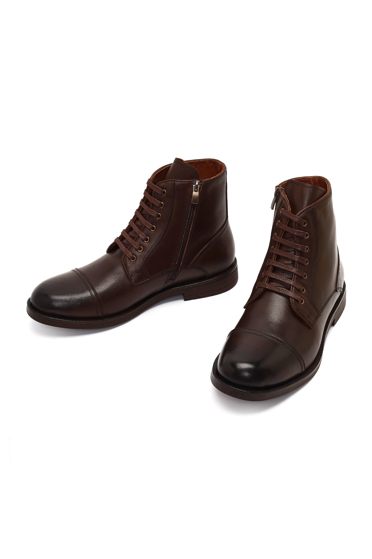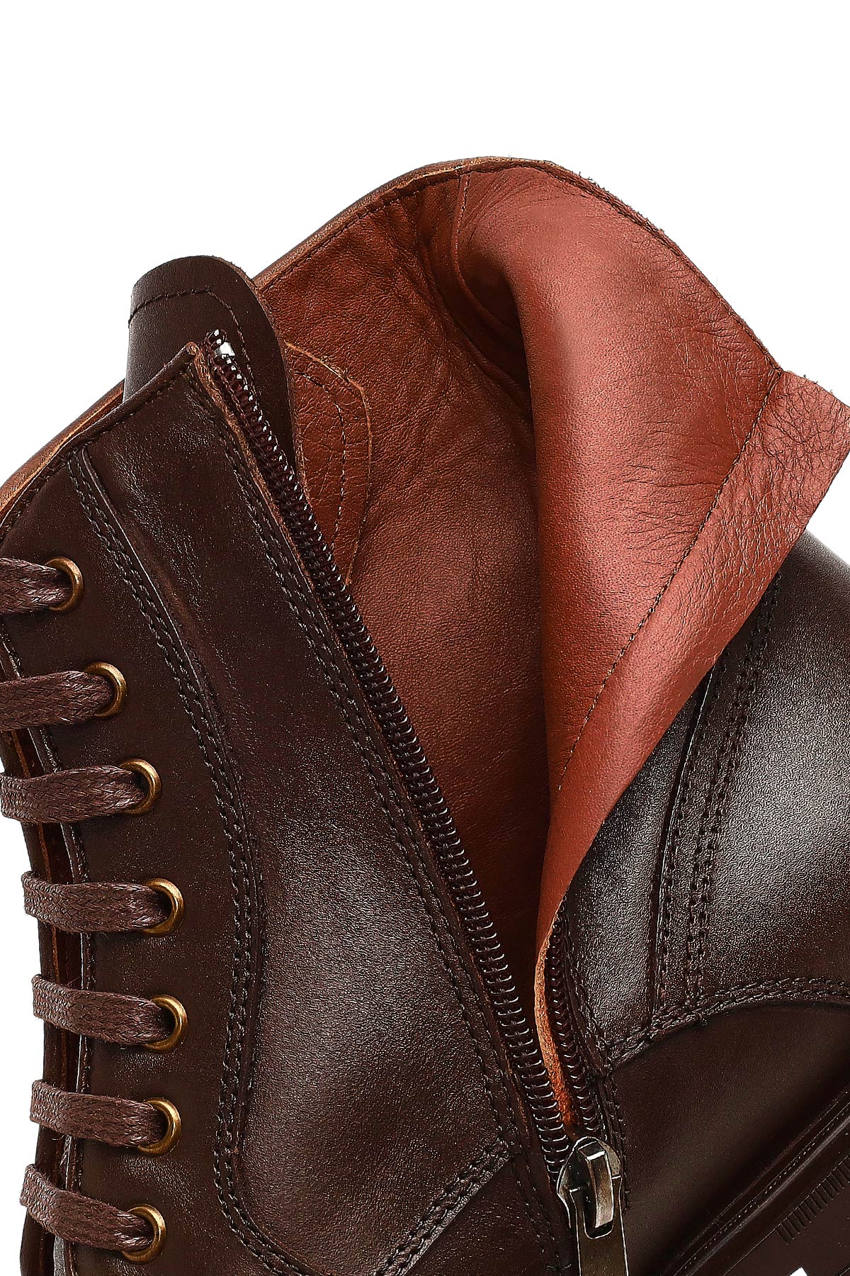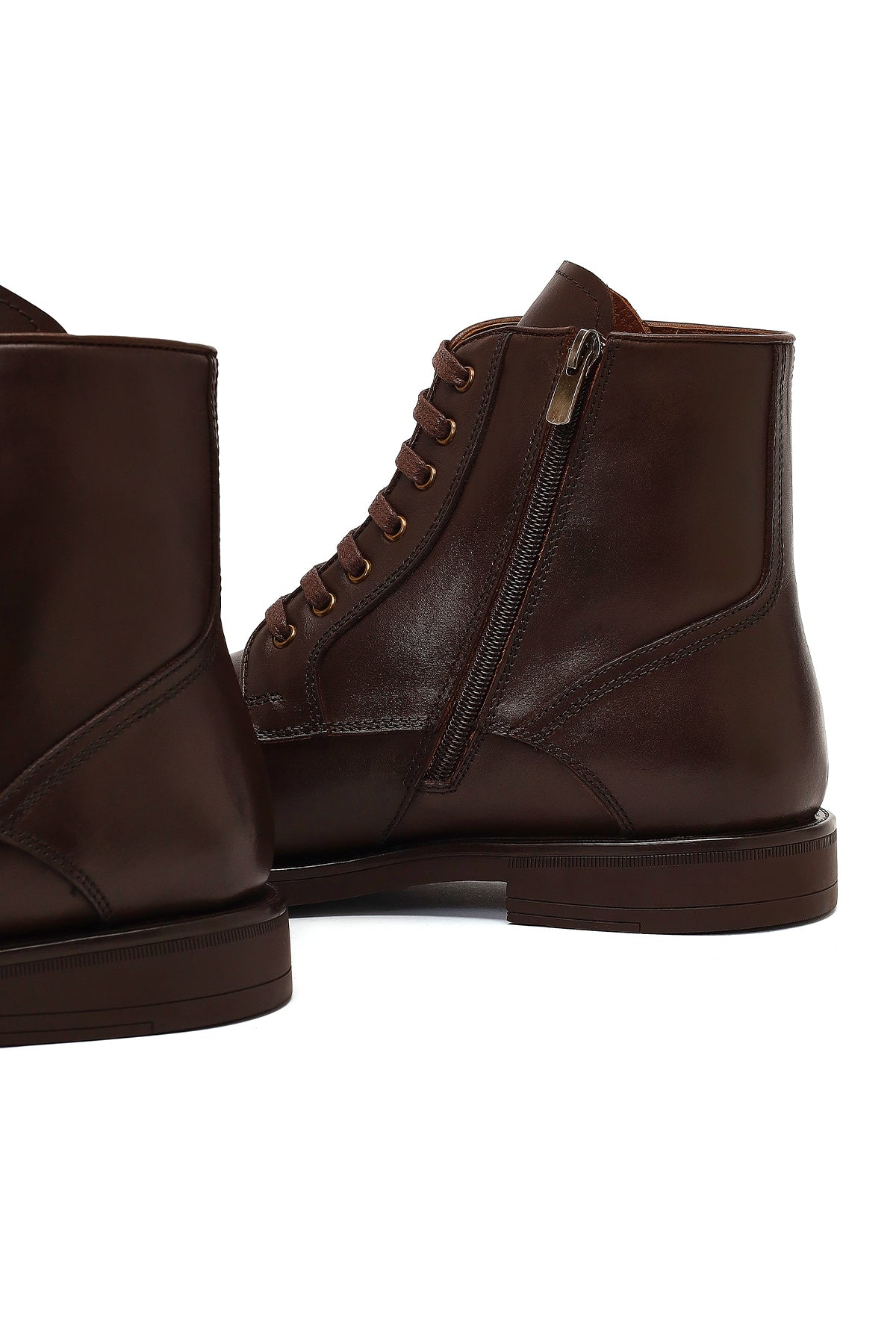 Erkek Kahverengi Bağcıklı Fermuarlı Deri Casual Bot