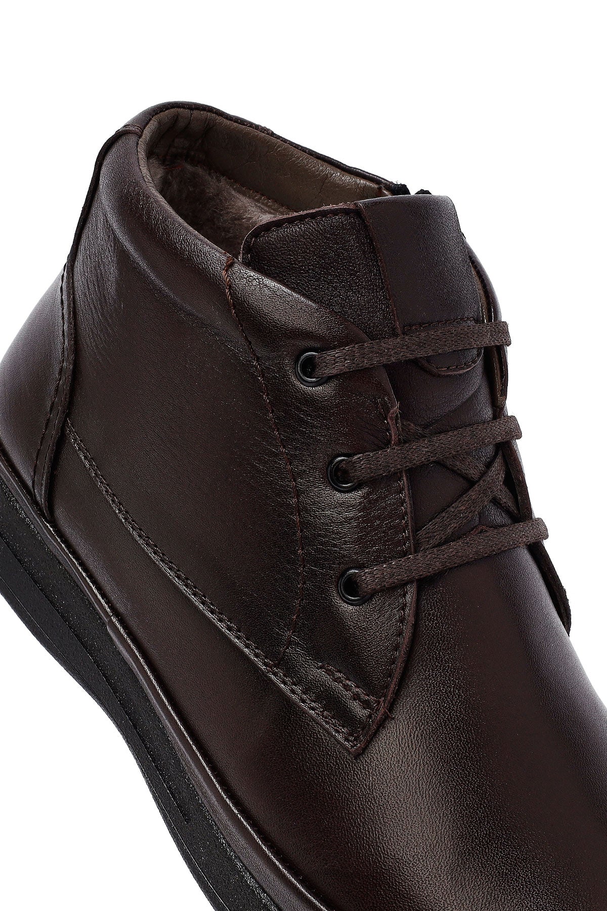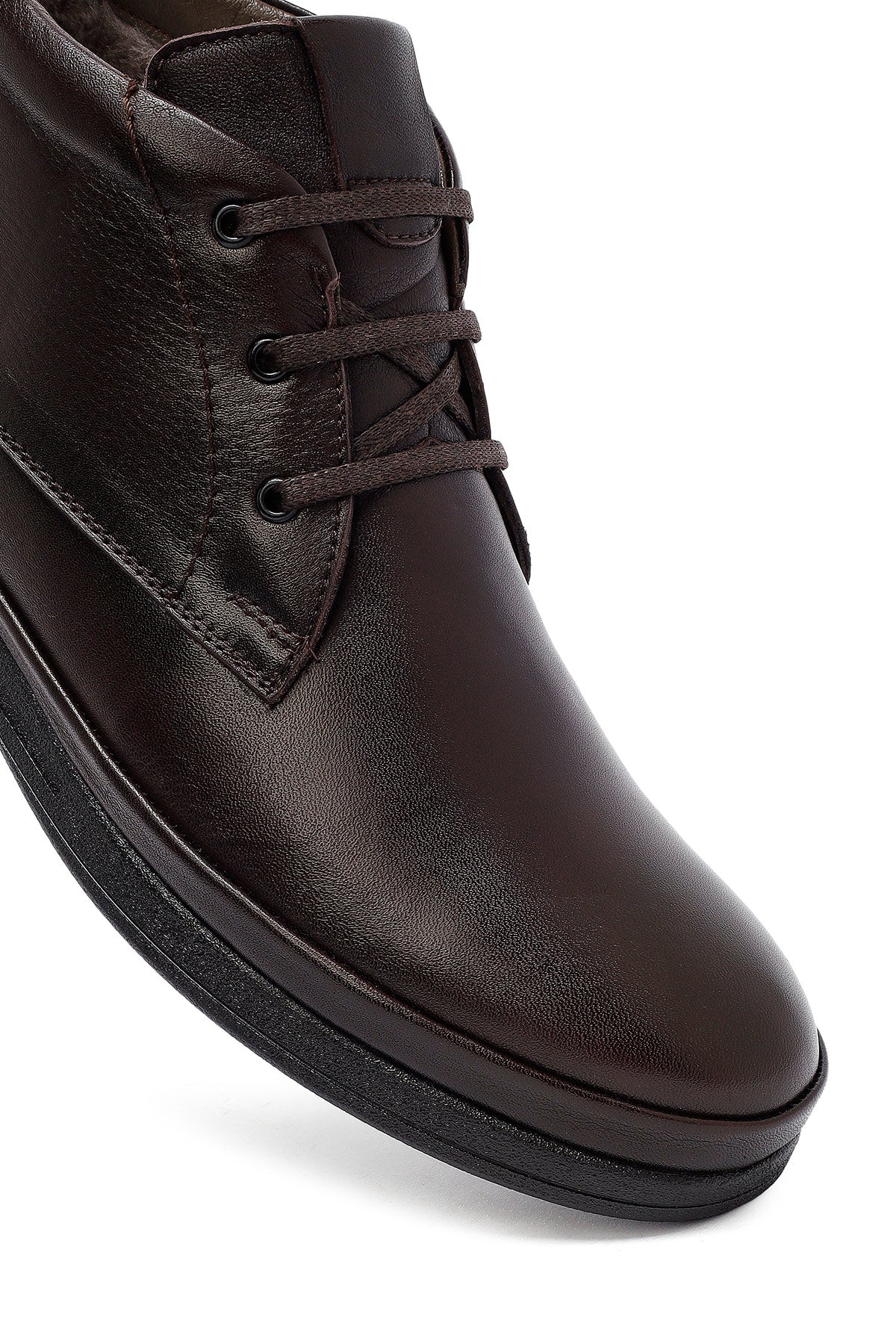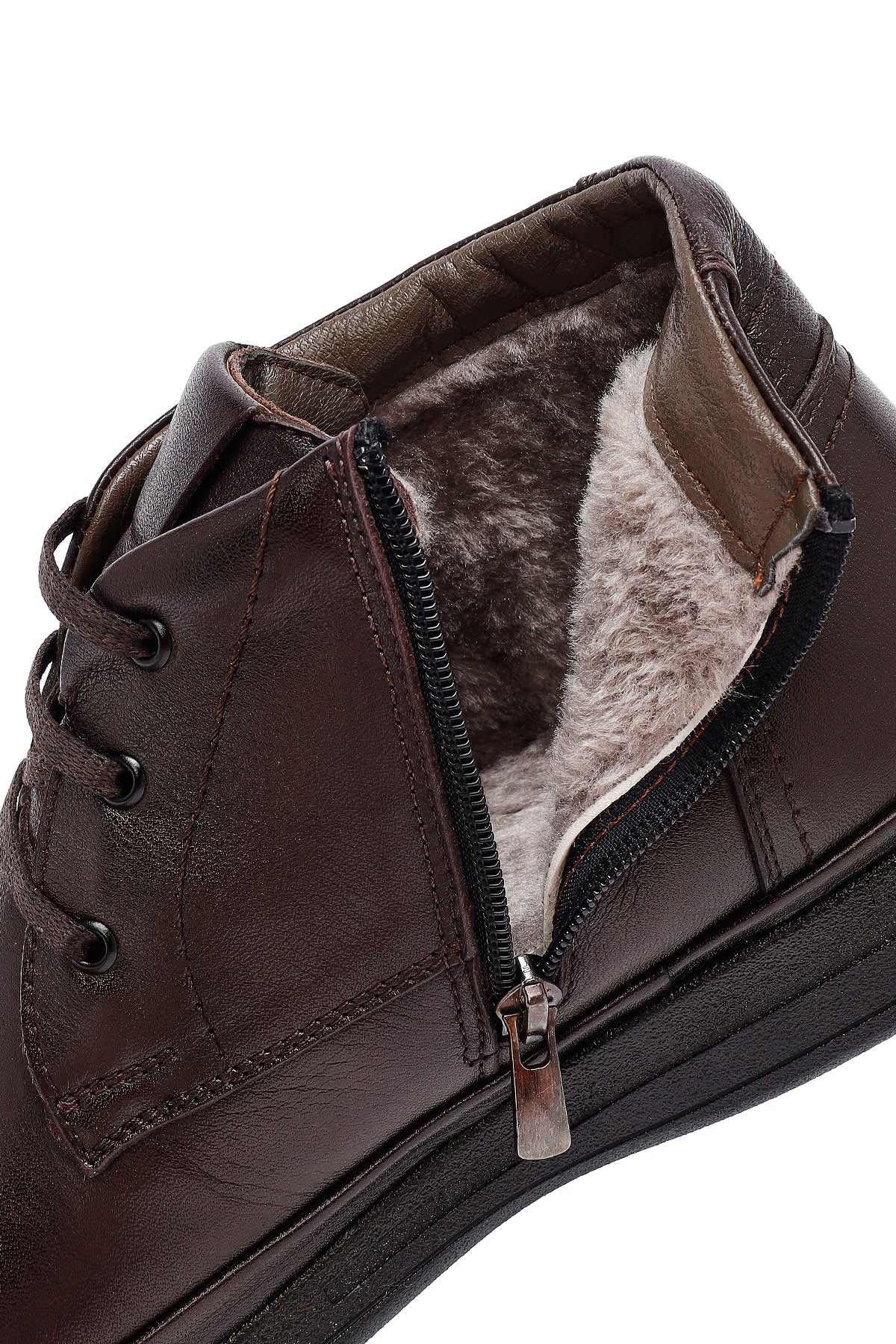 Erkek Kahverengi Bağcıklı Fermuarlı Deri Casual Bot