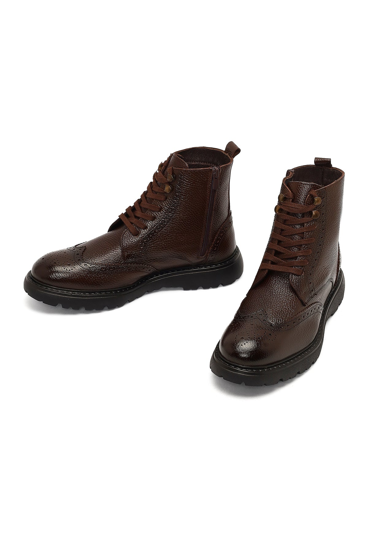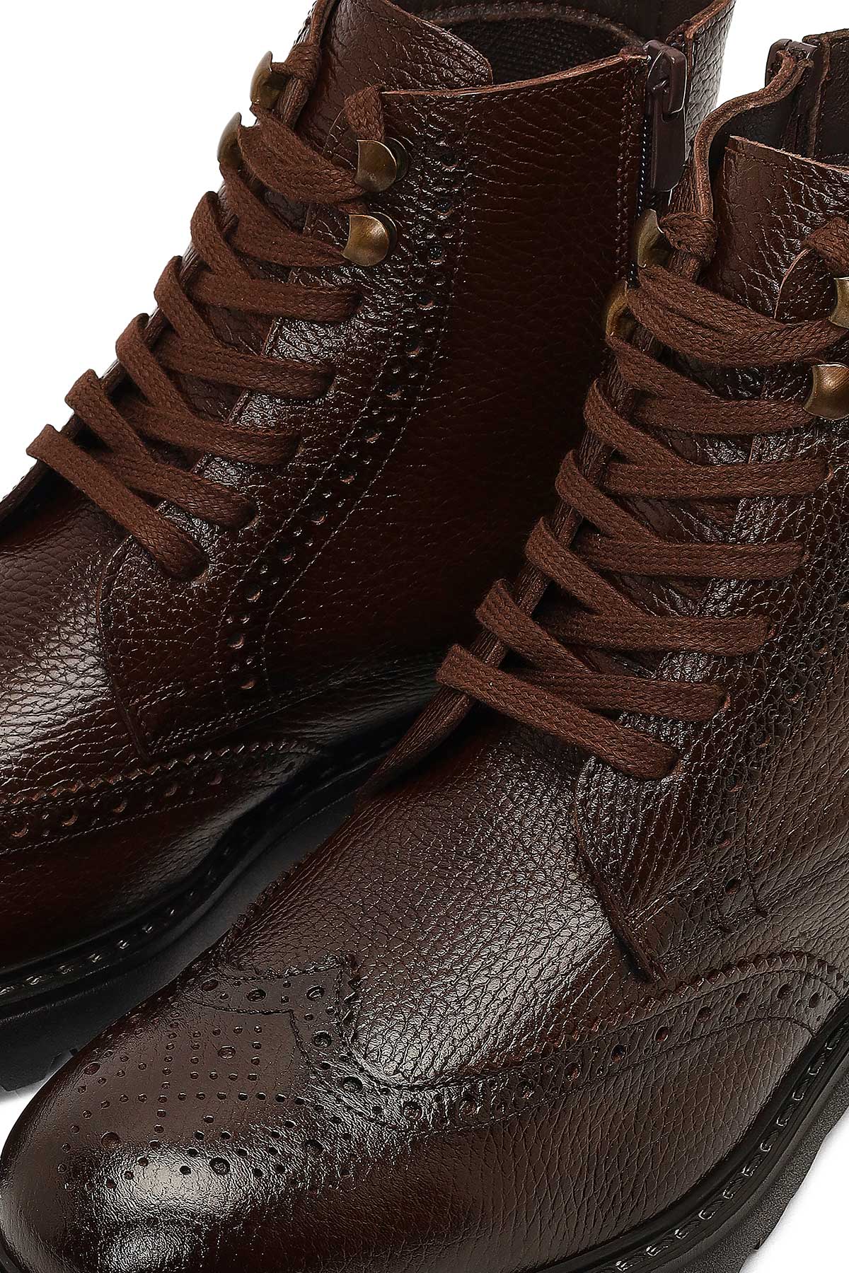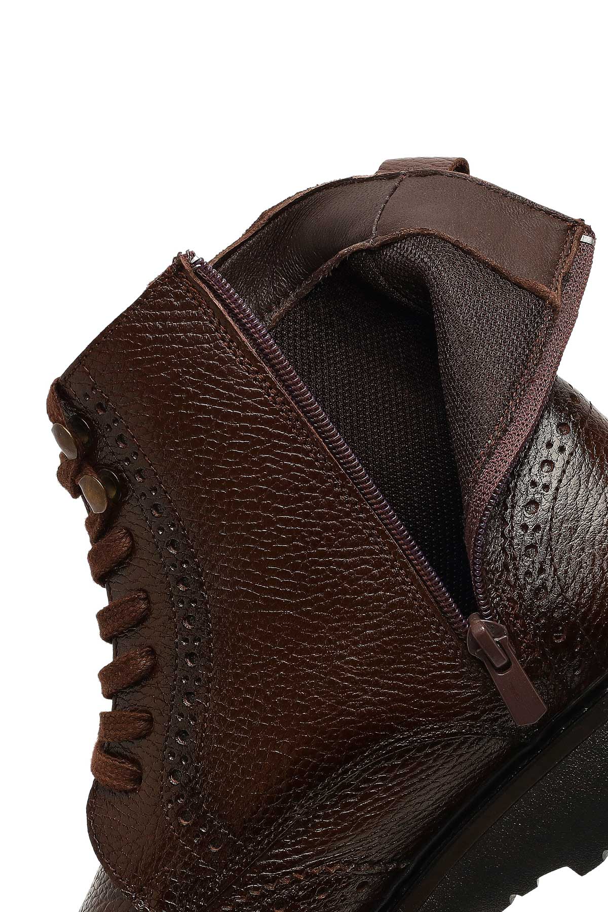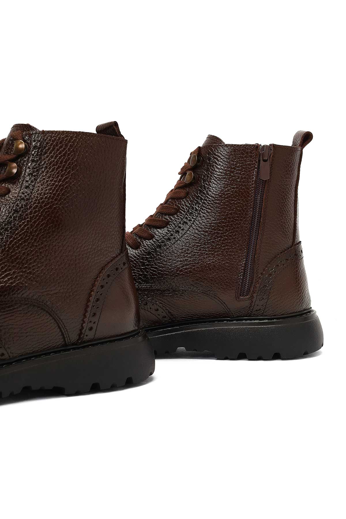 Erkek Kahverengi Fermuarlı Deri Bot