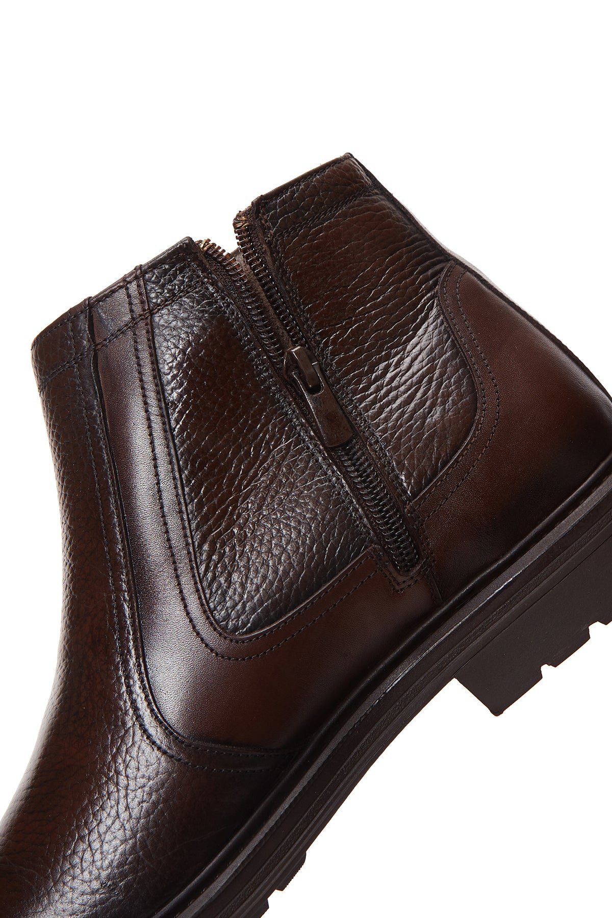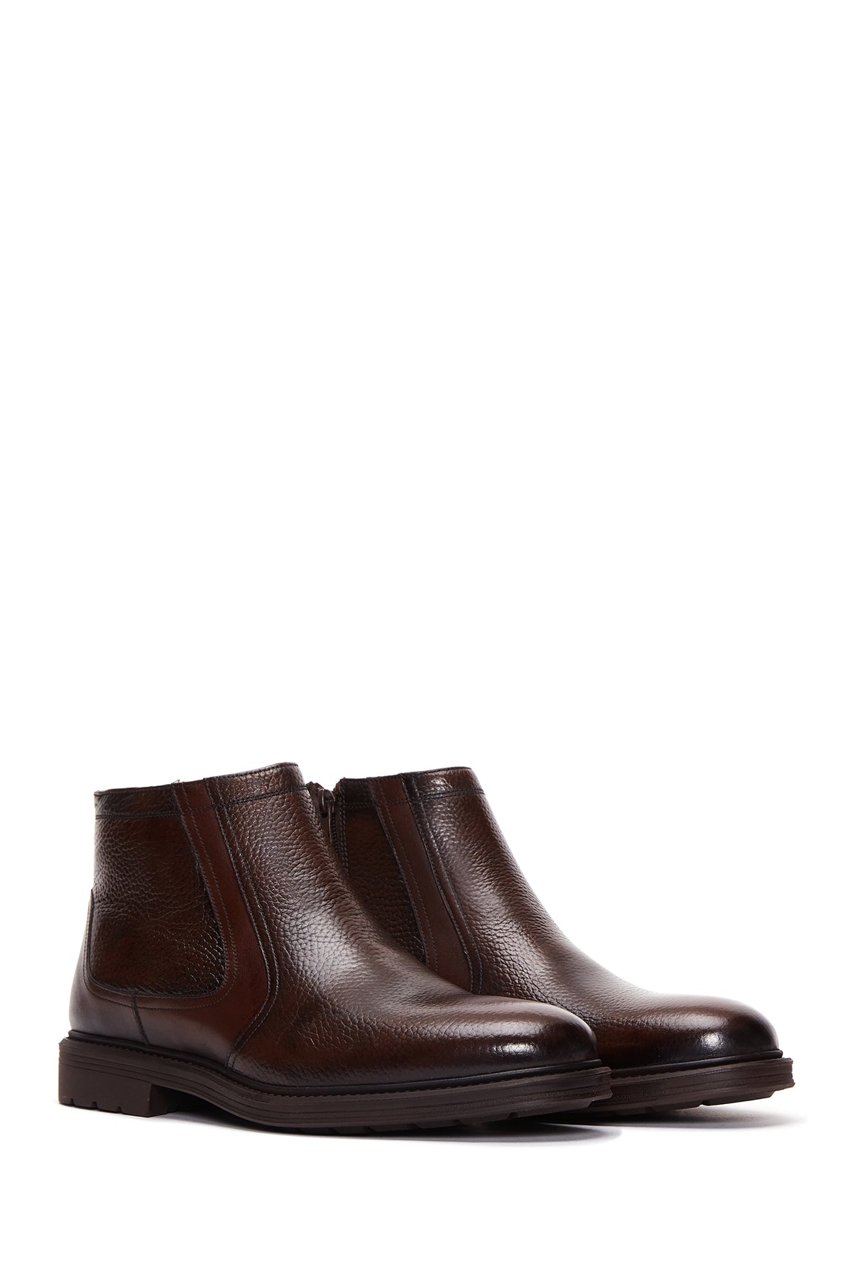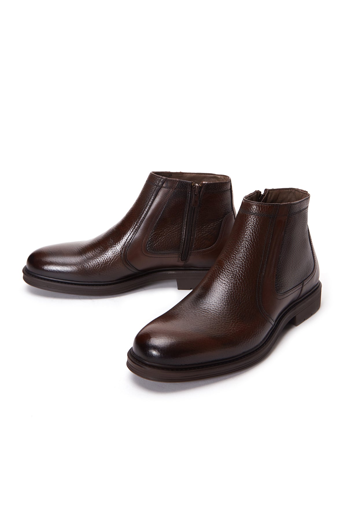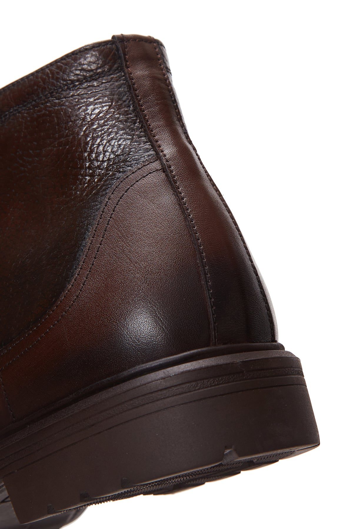 Erkek Kahverengi Fermuarlı Deri Casual Bot