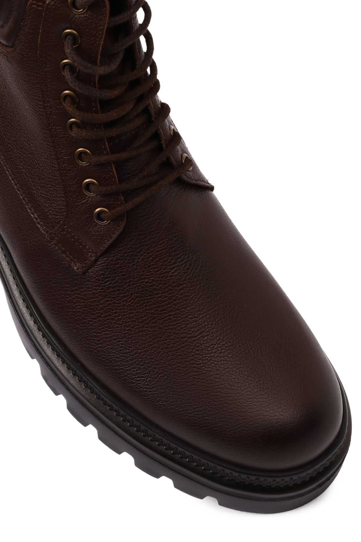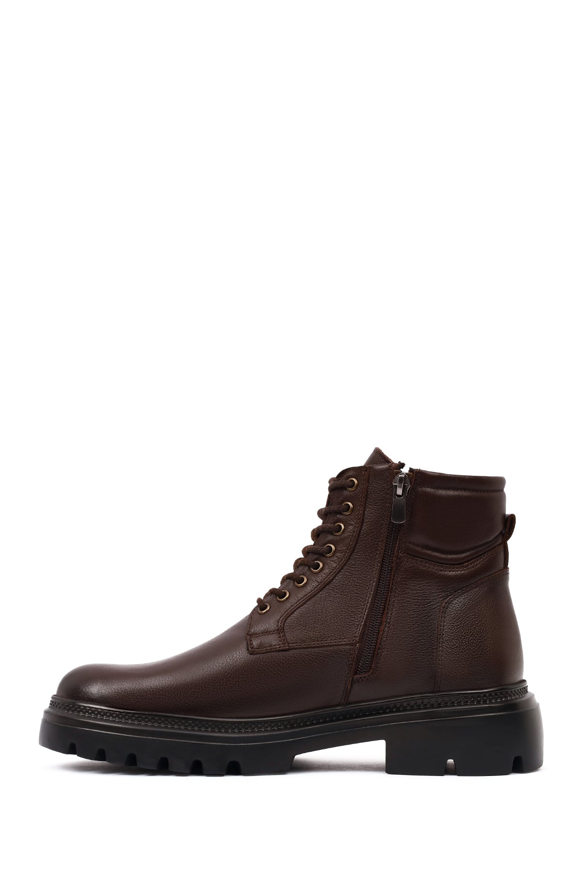 Erkek Kahverengi Fermuarlı Kalın Tabanlı Deri Bot