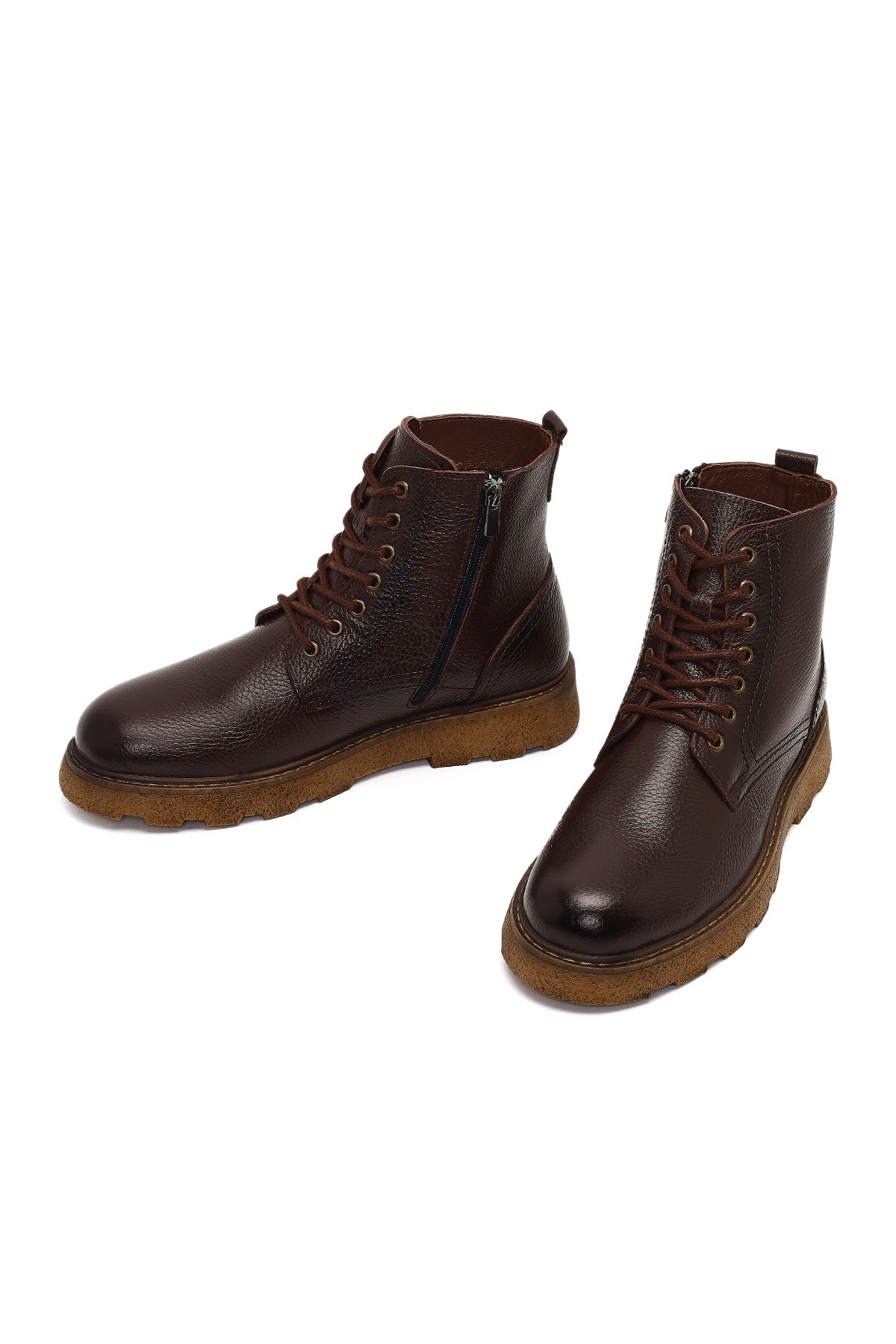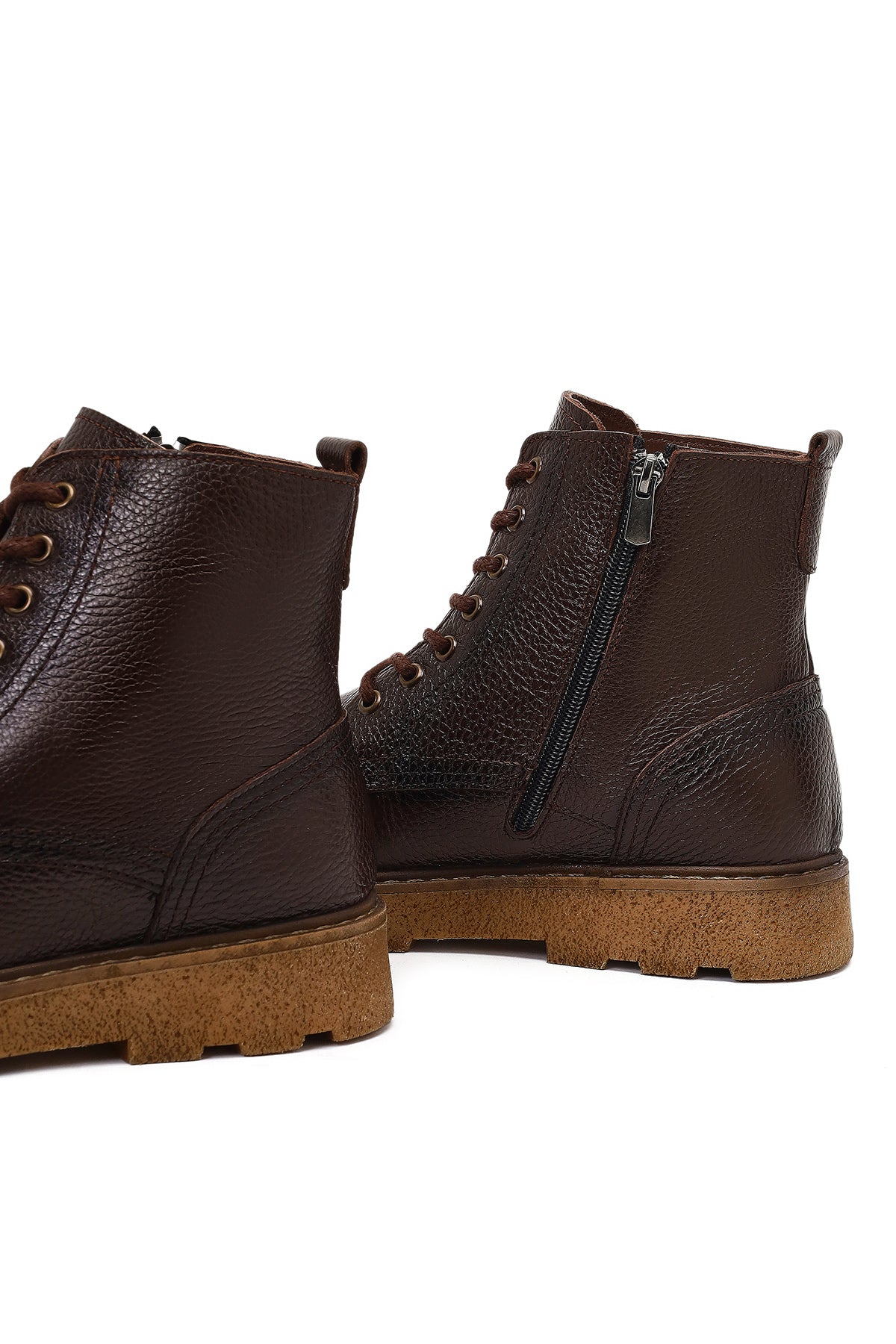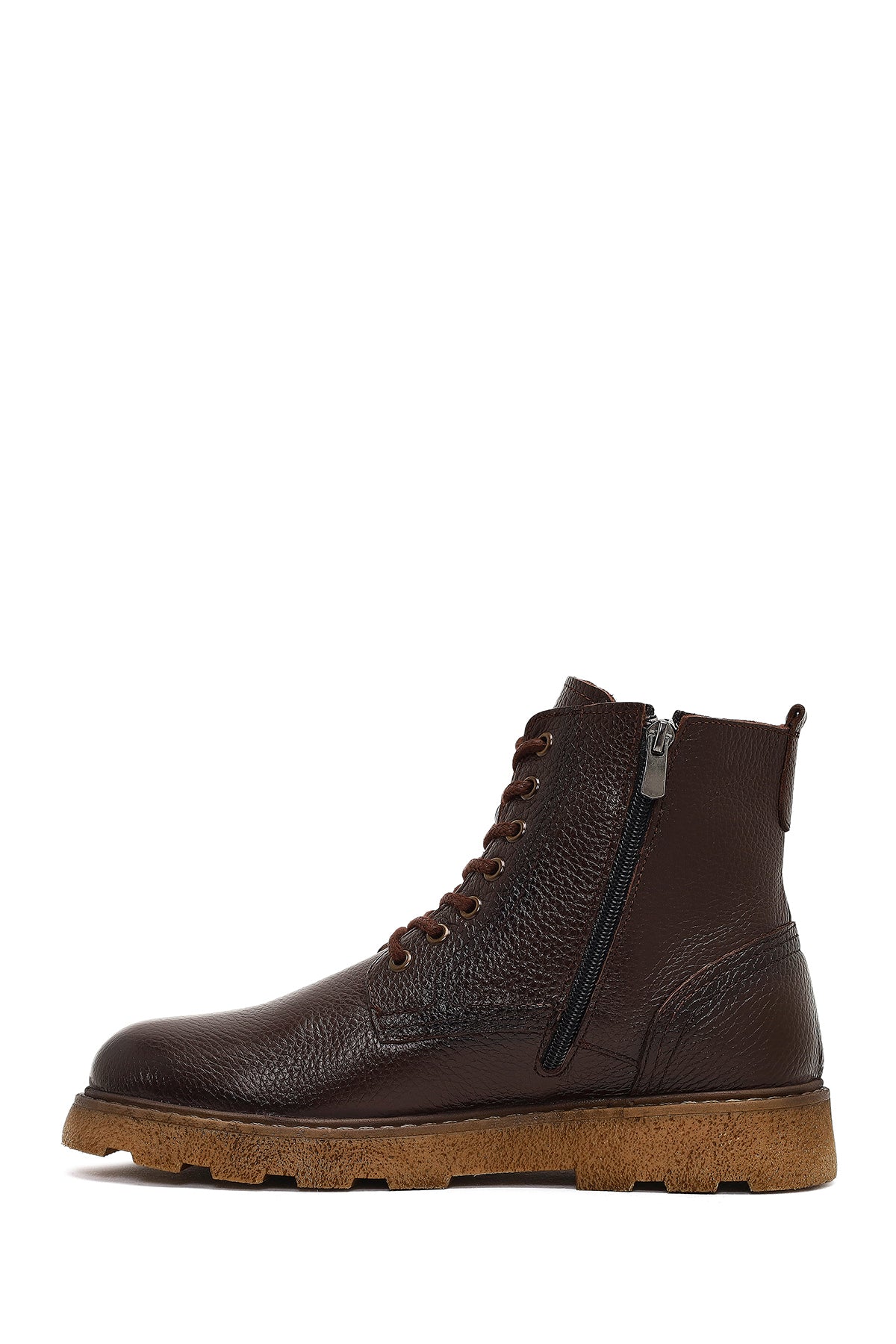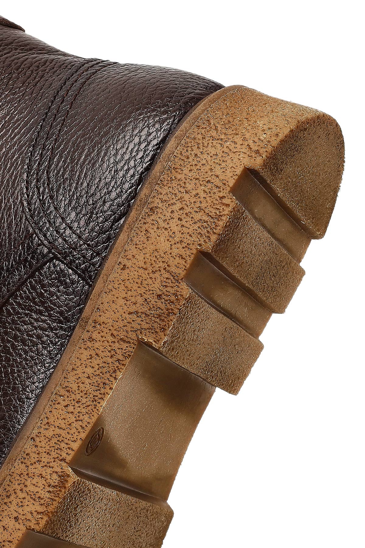 Erkek Kahverengi Fermuarlı Kalın Tabanlı Deri Bot