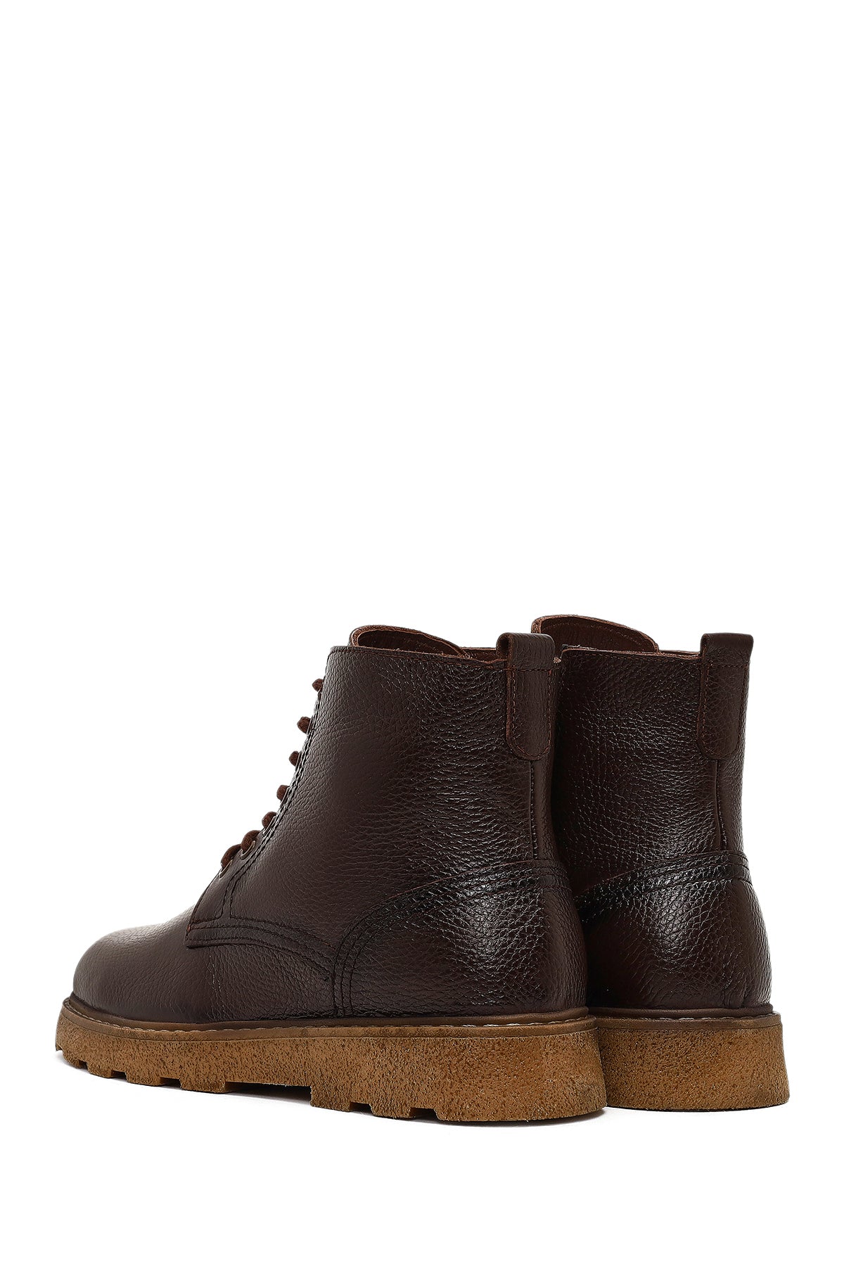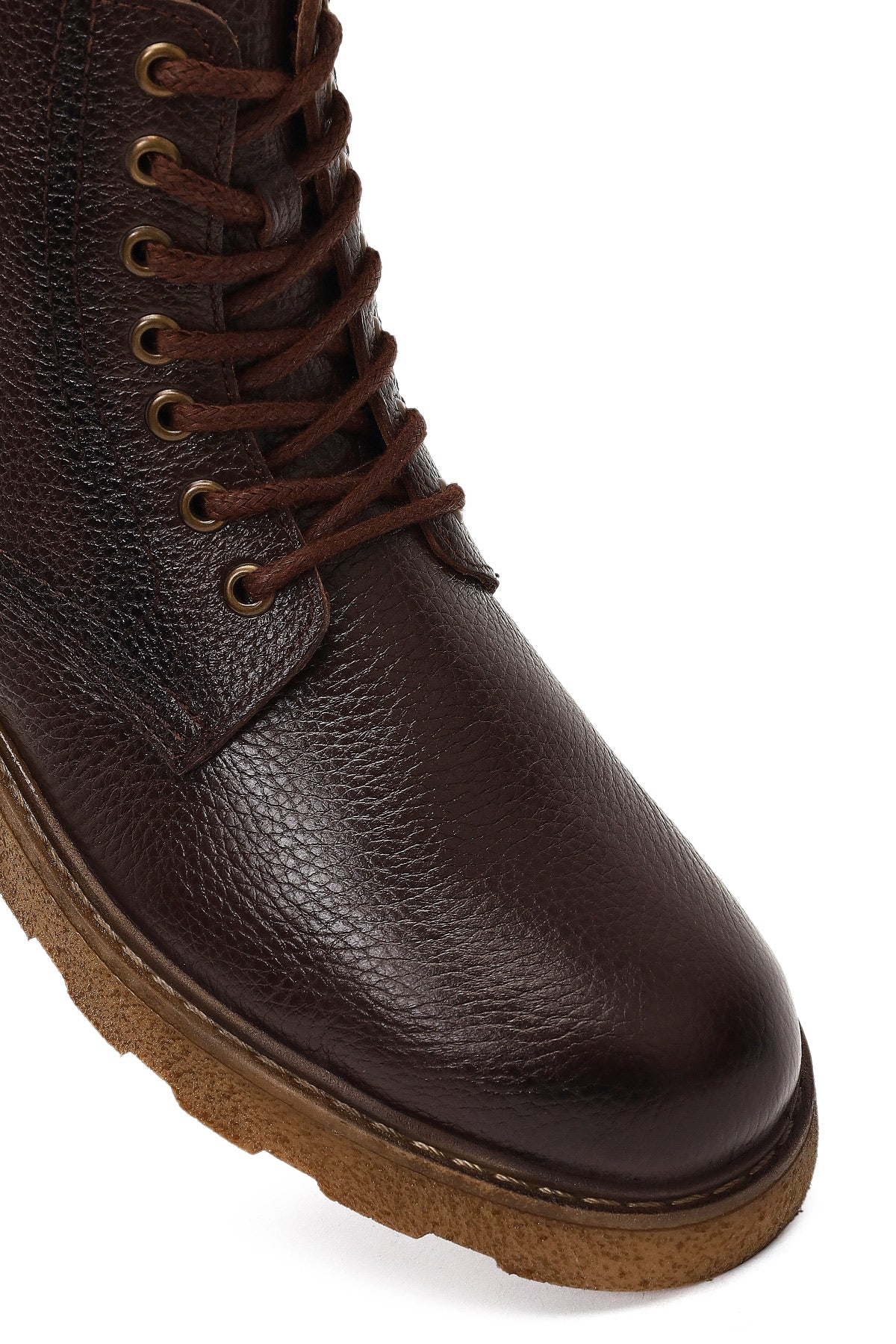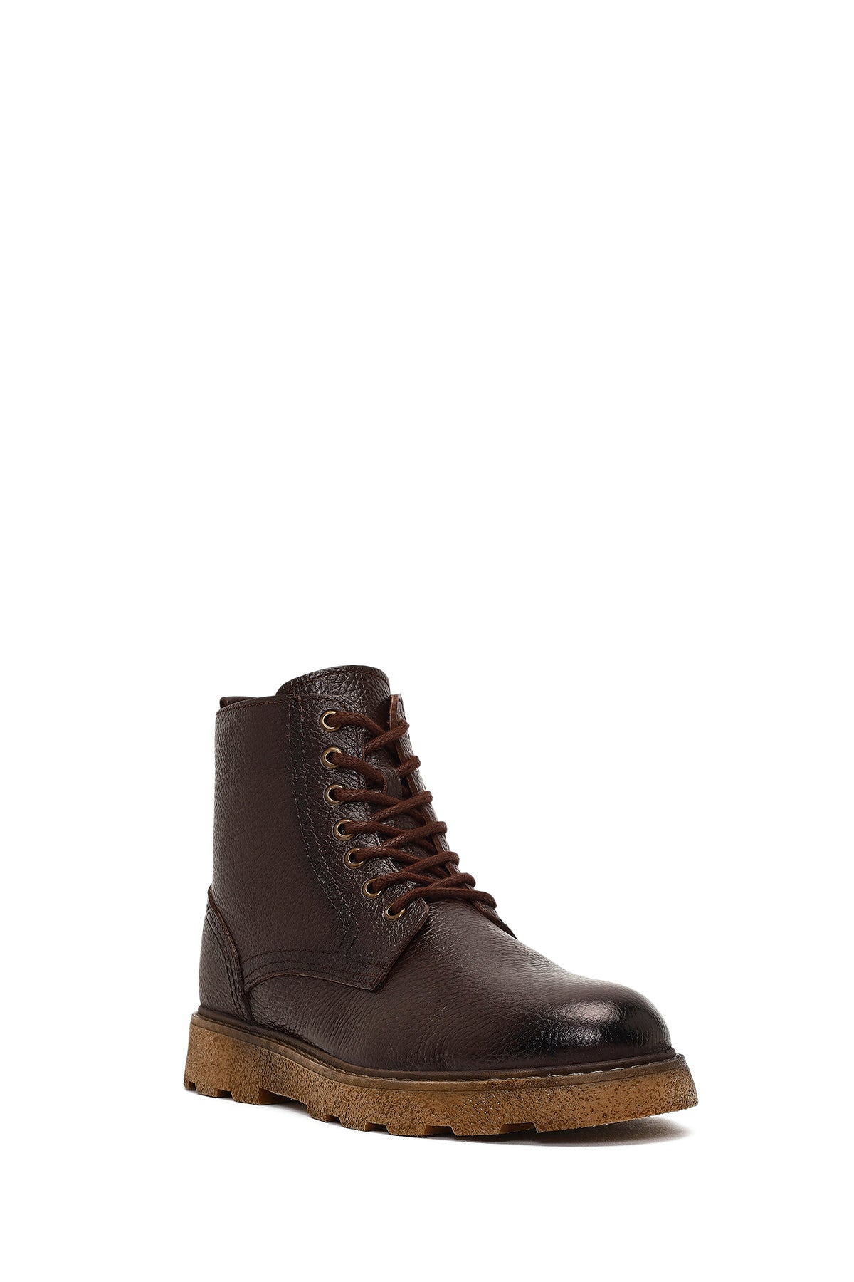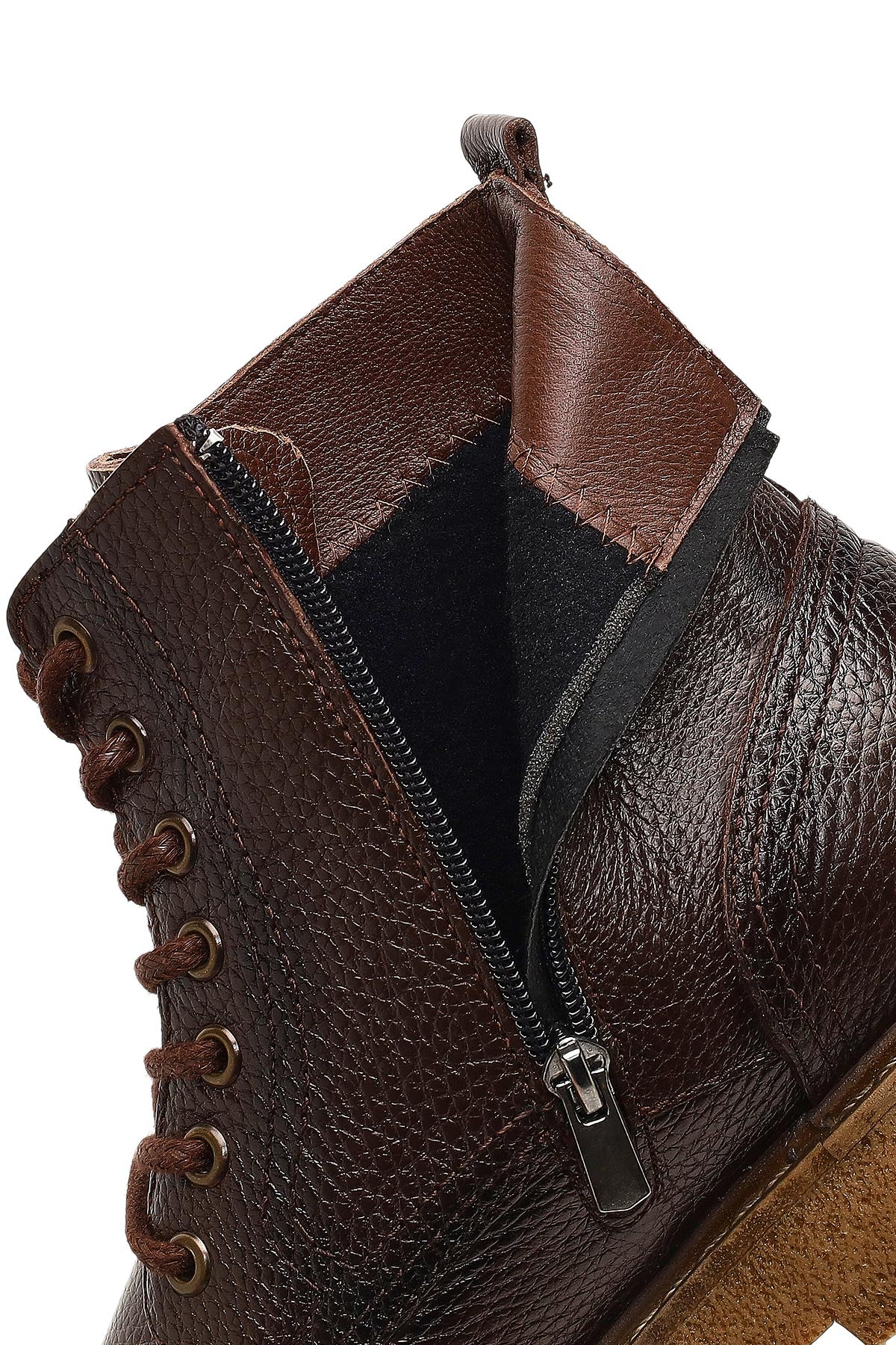 Erkek Kahverengi Fermuarlı Kalın Tabanlı Deri Bot