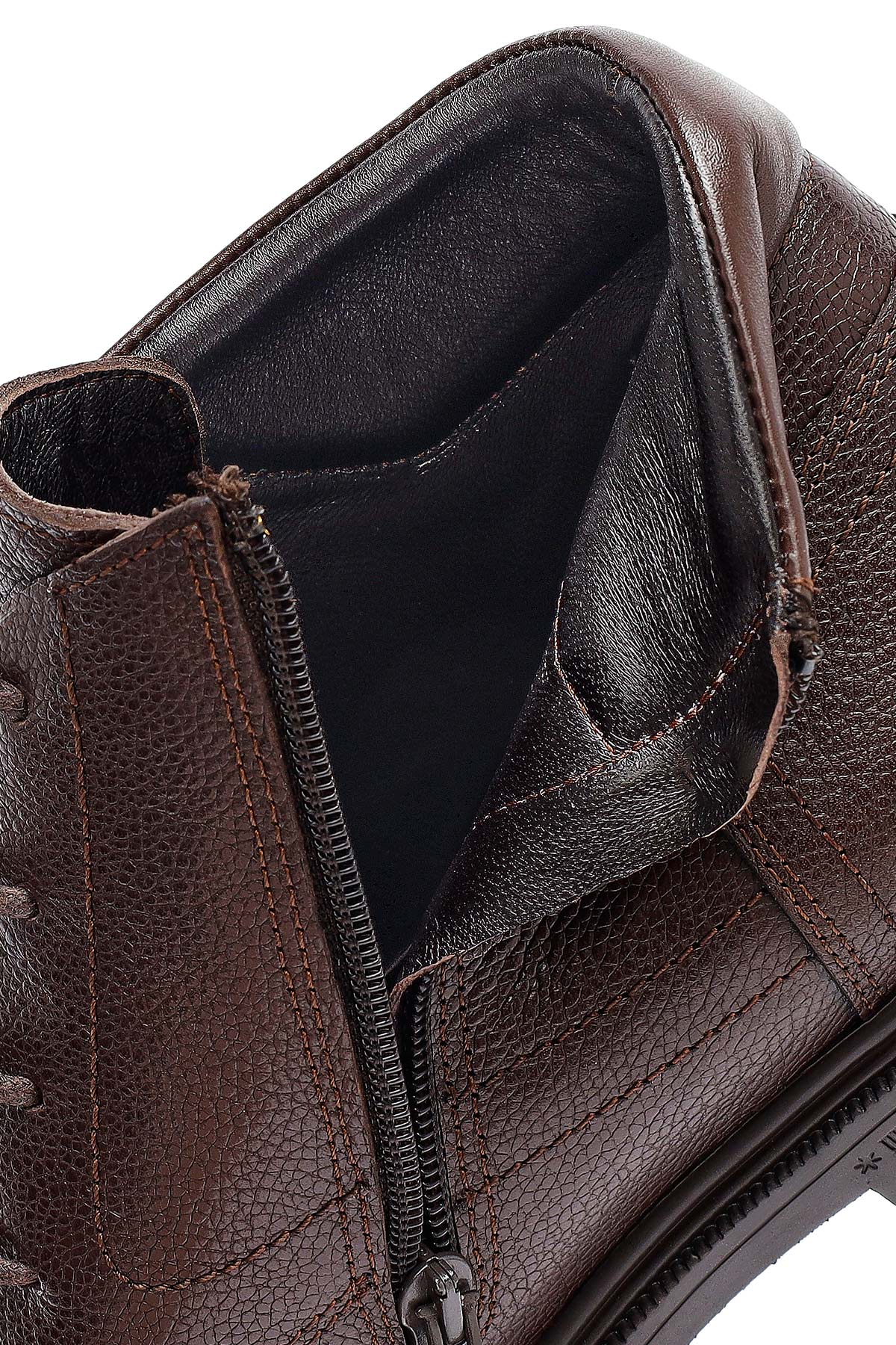 Erkek Kahverengi Fermuarlı Deri Bot