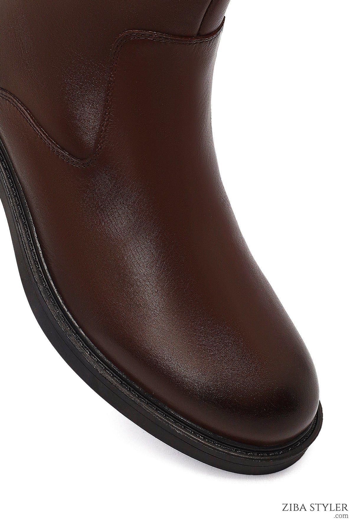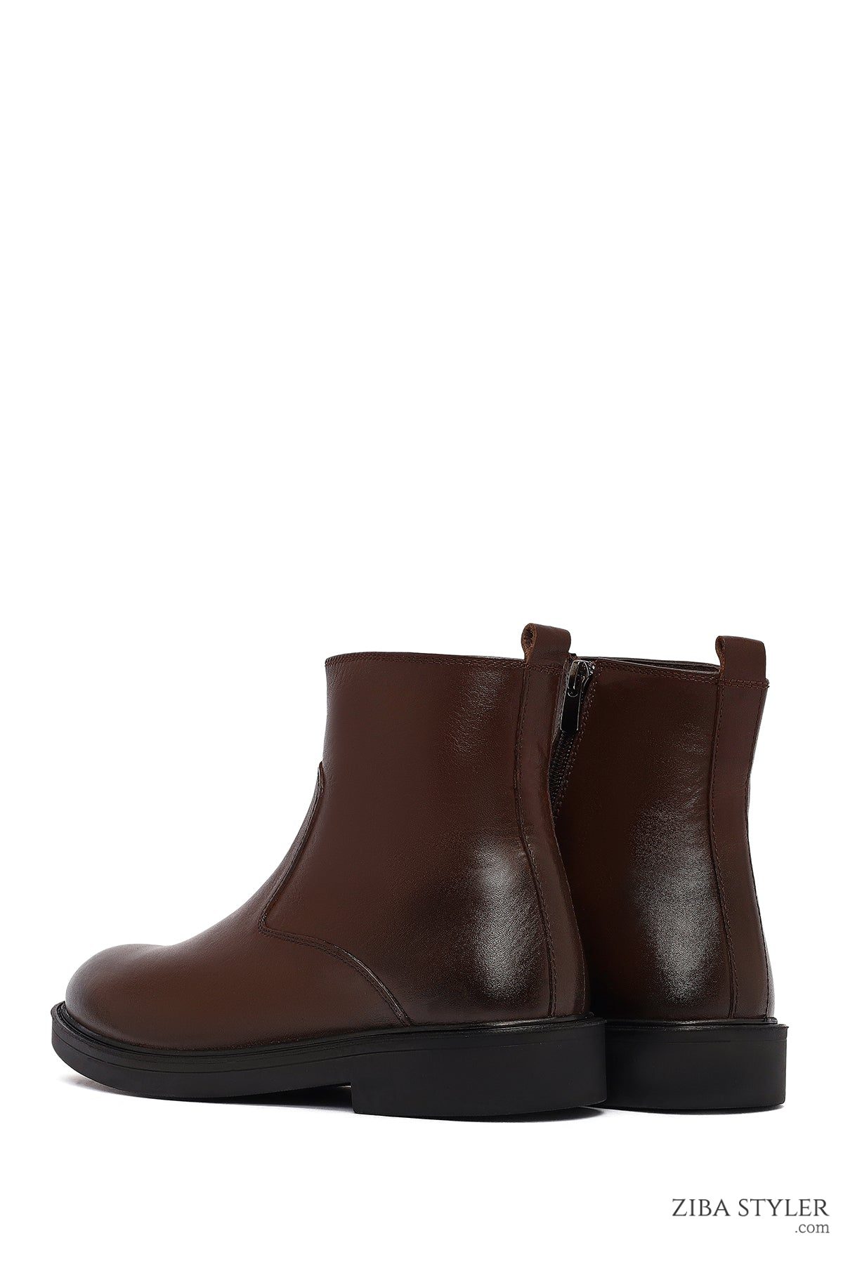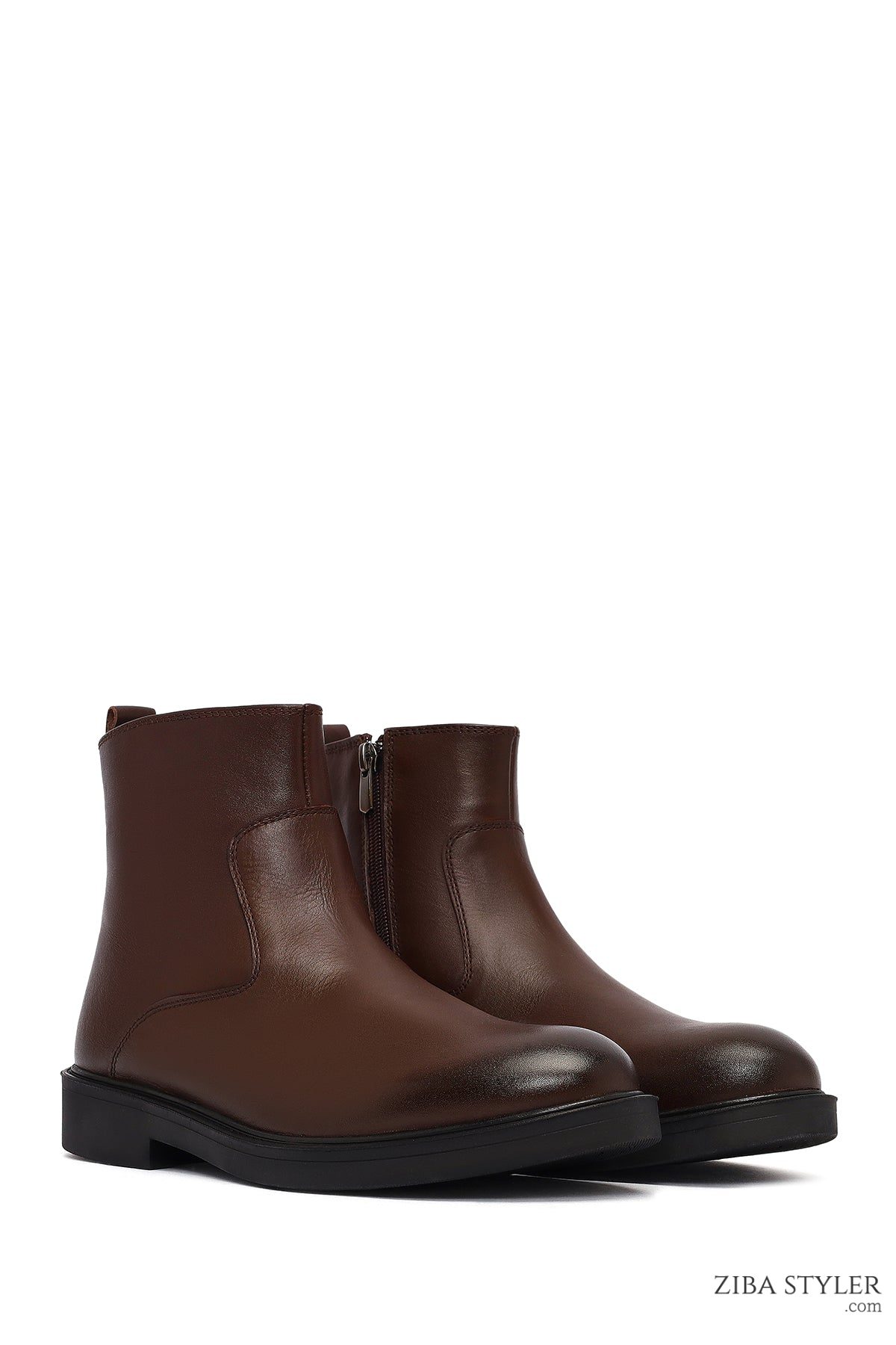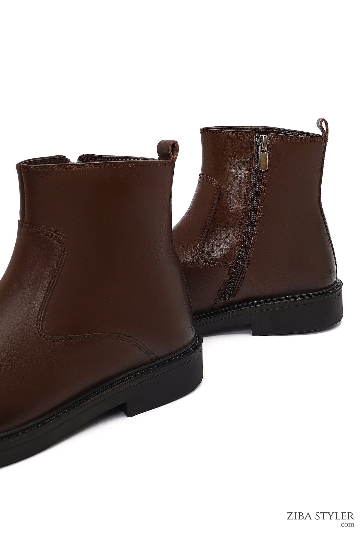 بوت کژوال مردانه چرمی قهوهای زیپدار دری مد