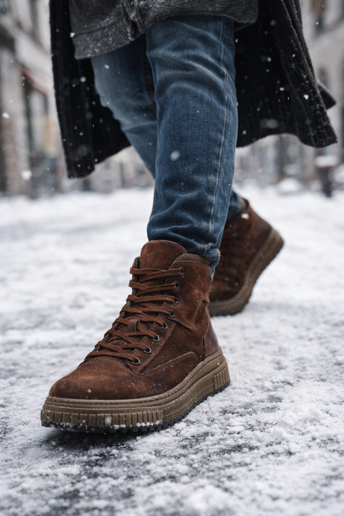 Erkek Kahverengi Bağcıklı Nubuk Deri Spor Bot