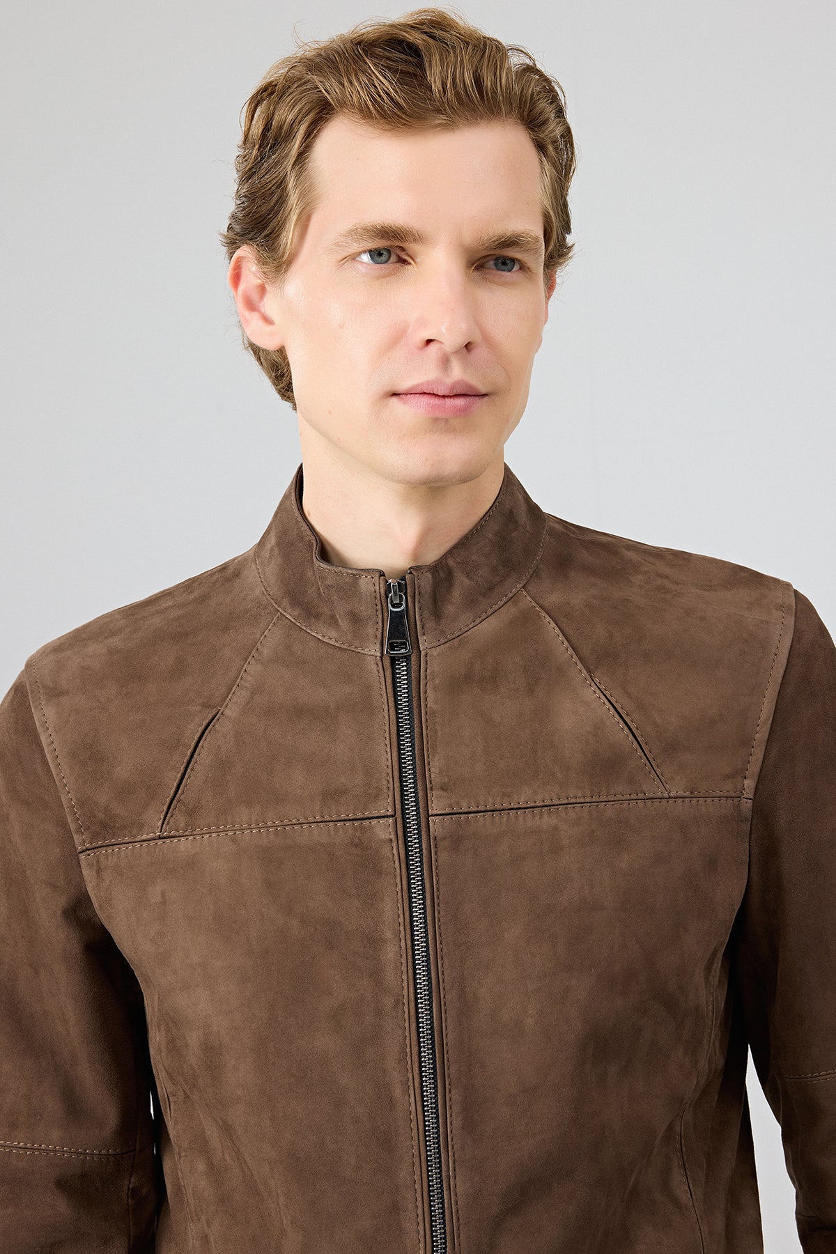 Neymar Erkek Kestane Hakim Yaka Slim-Fit Süet Deri Ceket