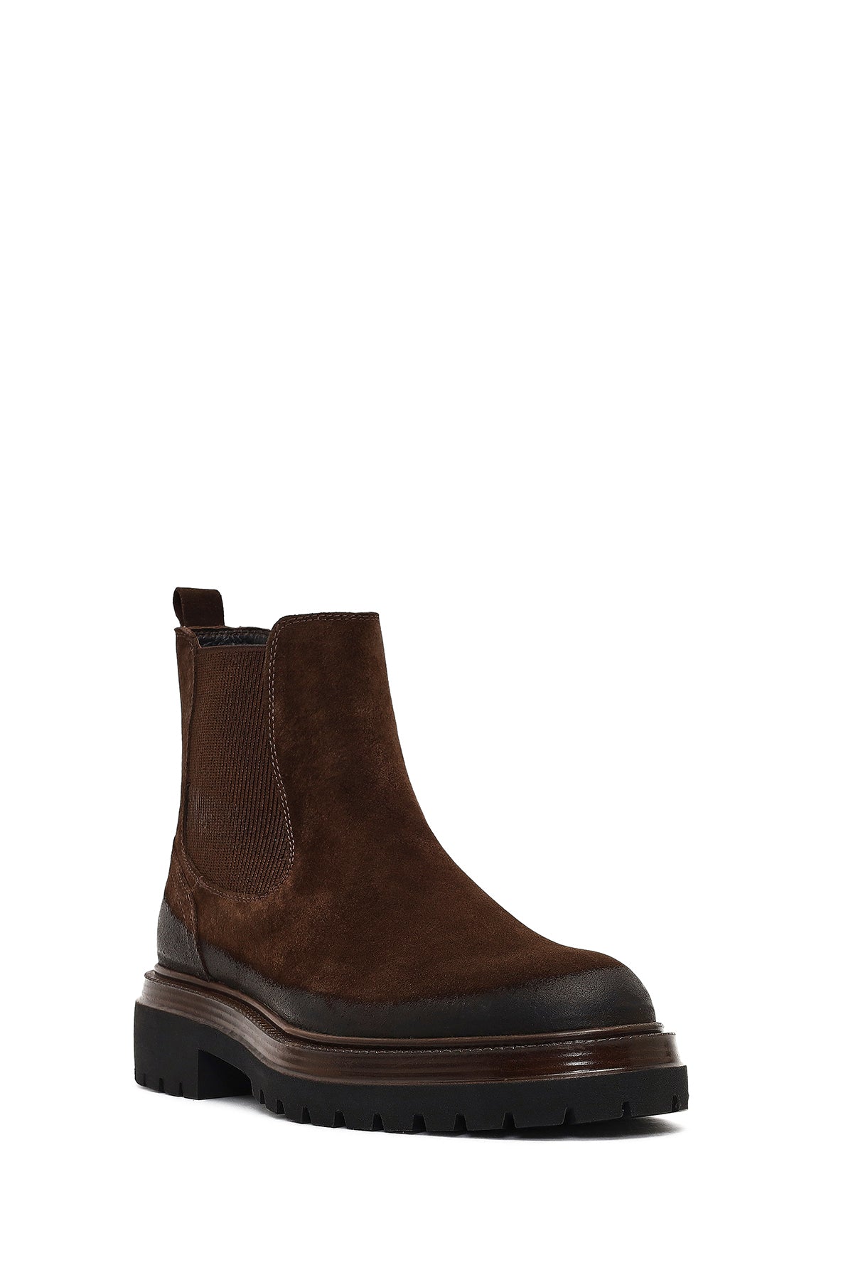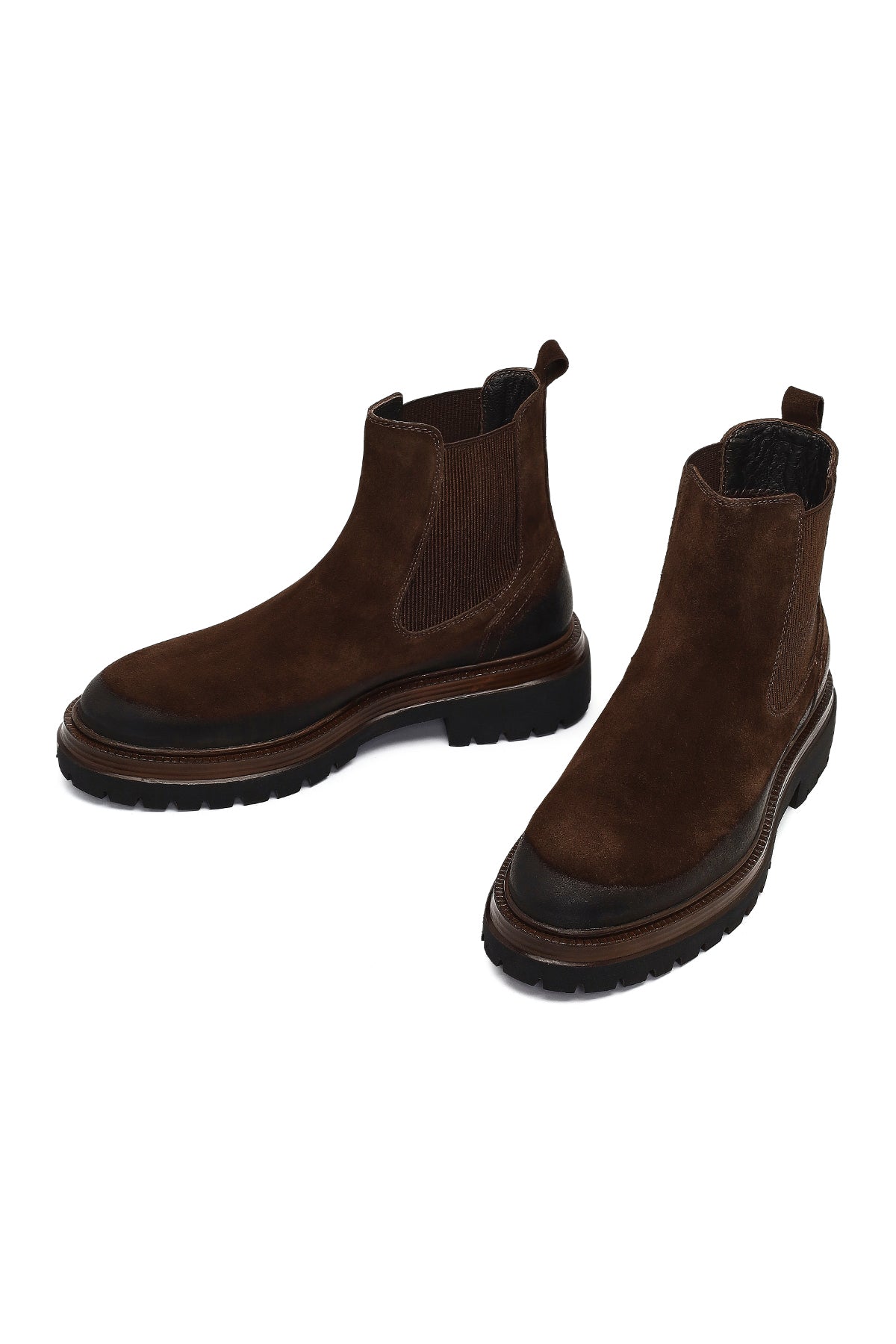 Erkek Kahverengi Kalın Tabanlı Süet Deri Chelsea Bot