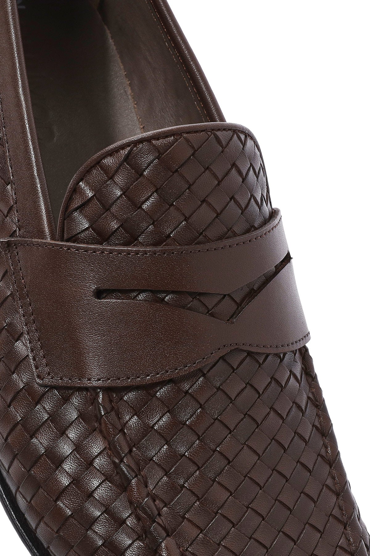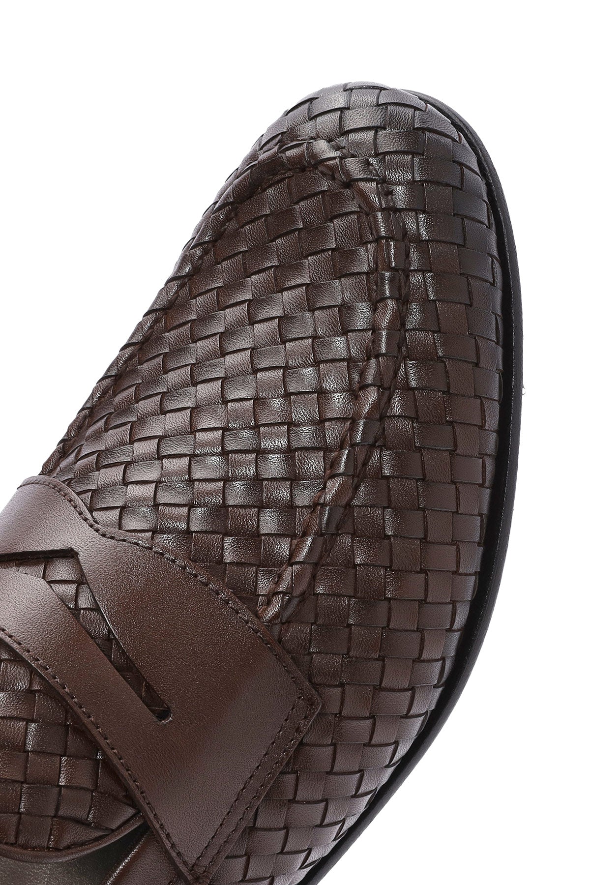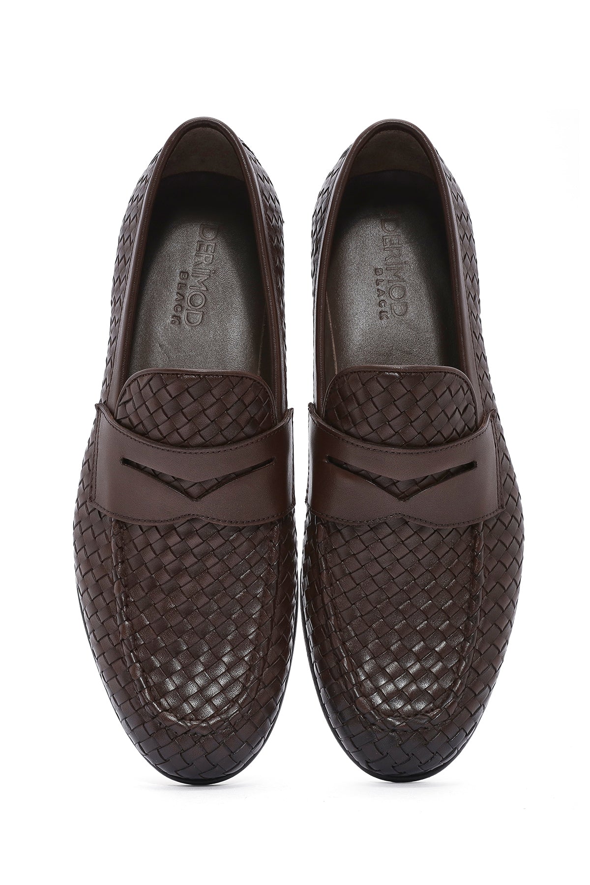Erkek Kahverengi Örgü Deri Klasik Loafer