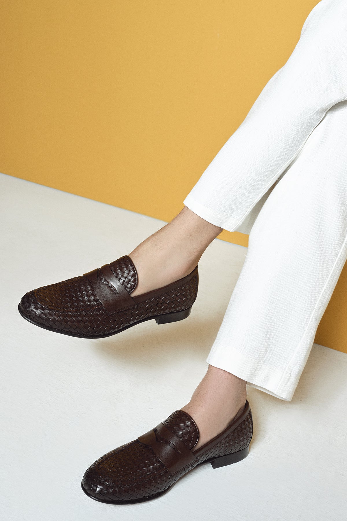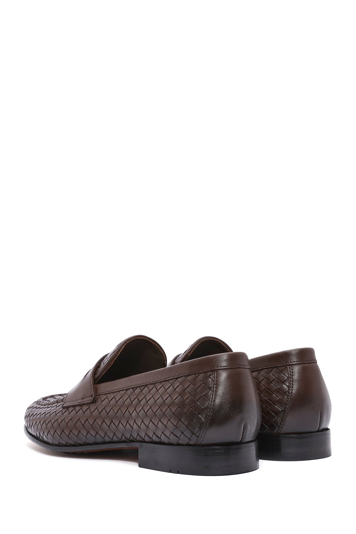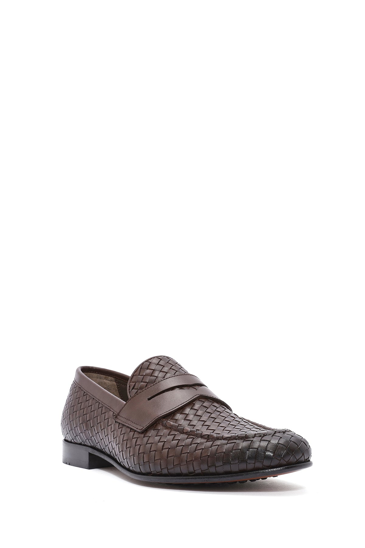 Erkek Kahverengi Örgü Deri Klasik Loafer