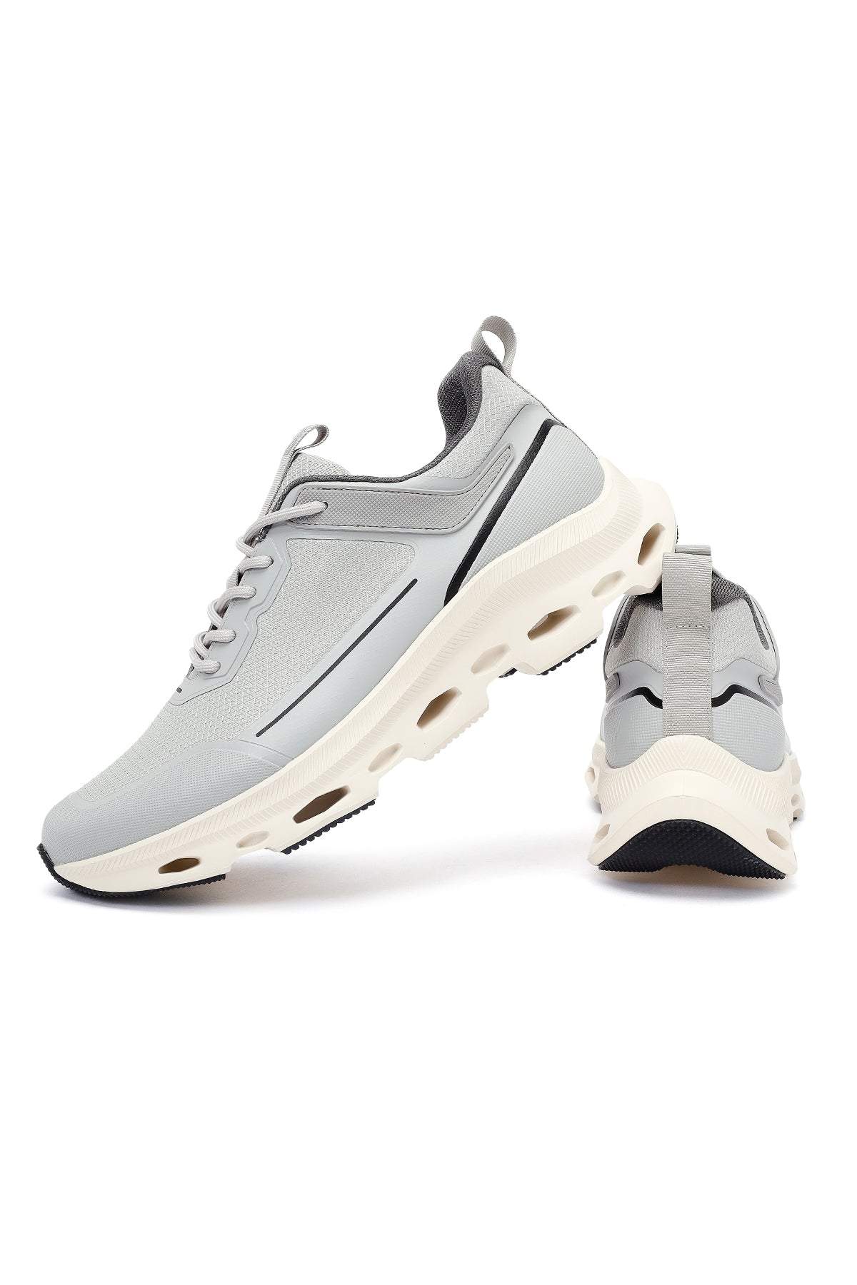 Erkek Gri Bağcıklı Kalın Tabanlı Kumaş Sneaker