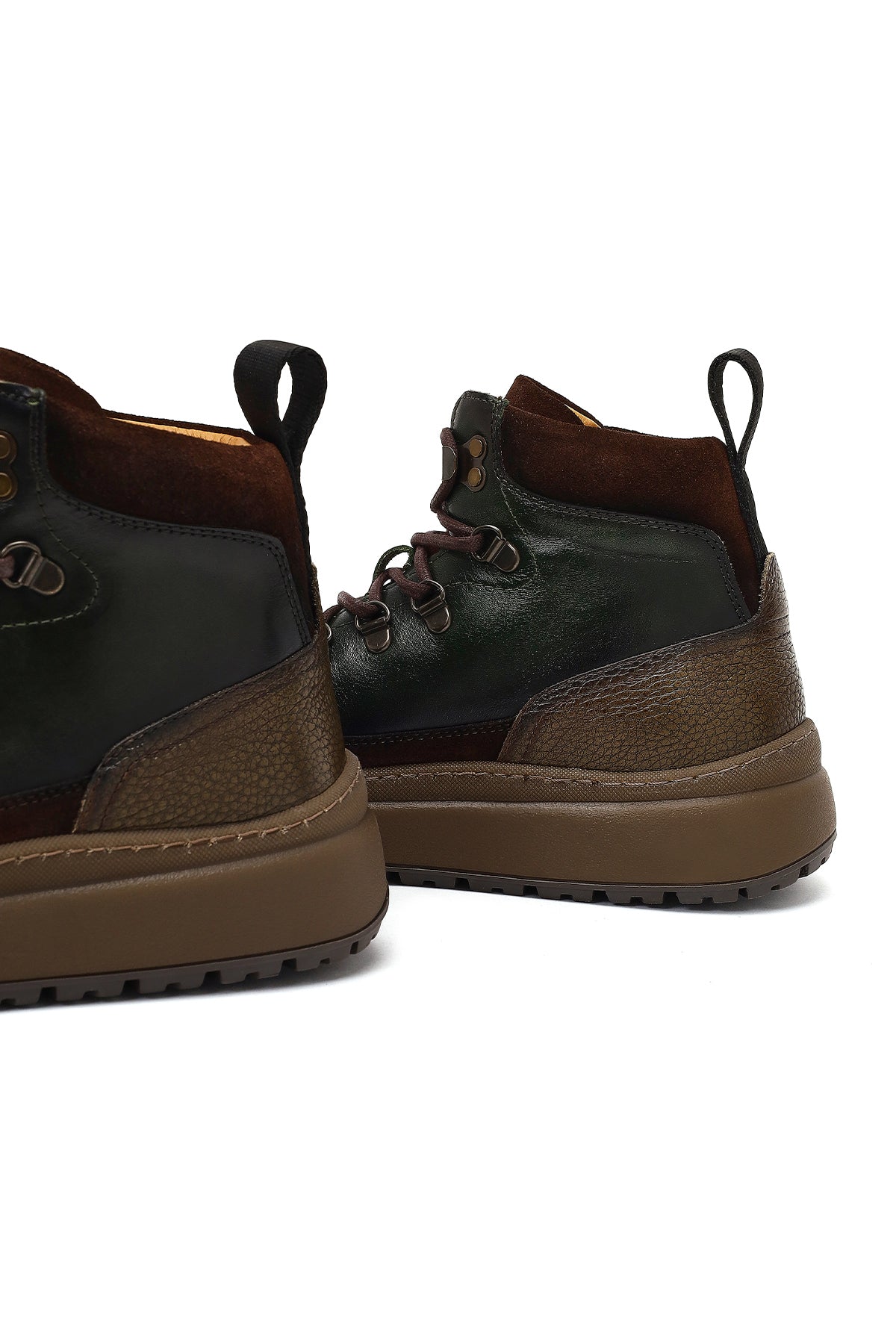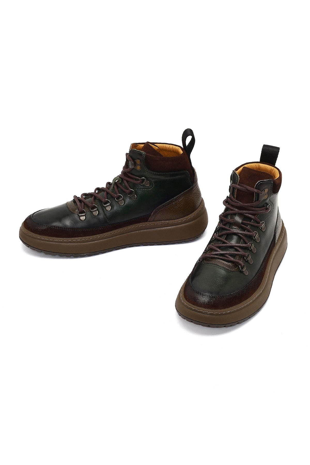 Erkek Yeşil Bağcıklı Kalın Tabanlı Deri Spor Bot