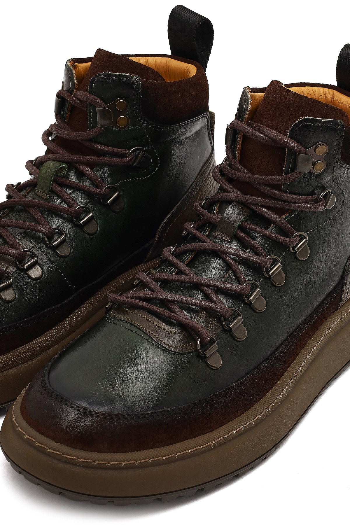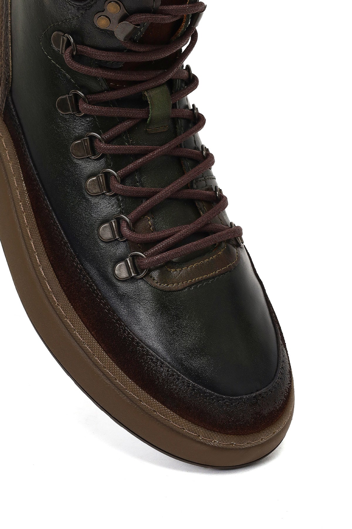 بوت چرمی مردانه سبز بندی زیره ضخیم دریمد