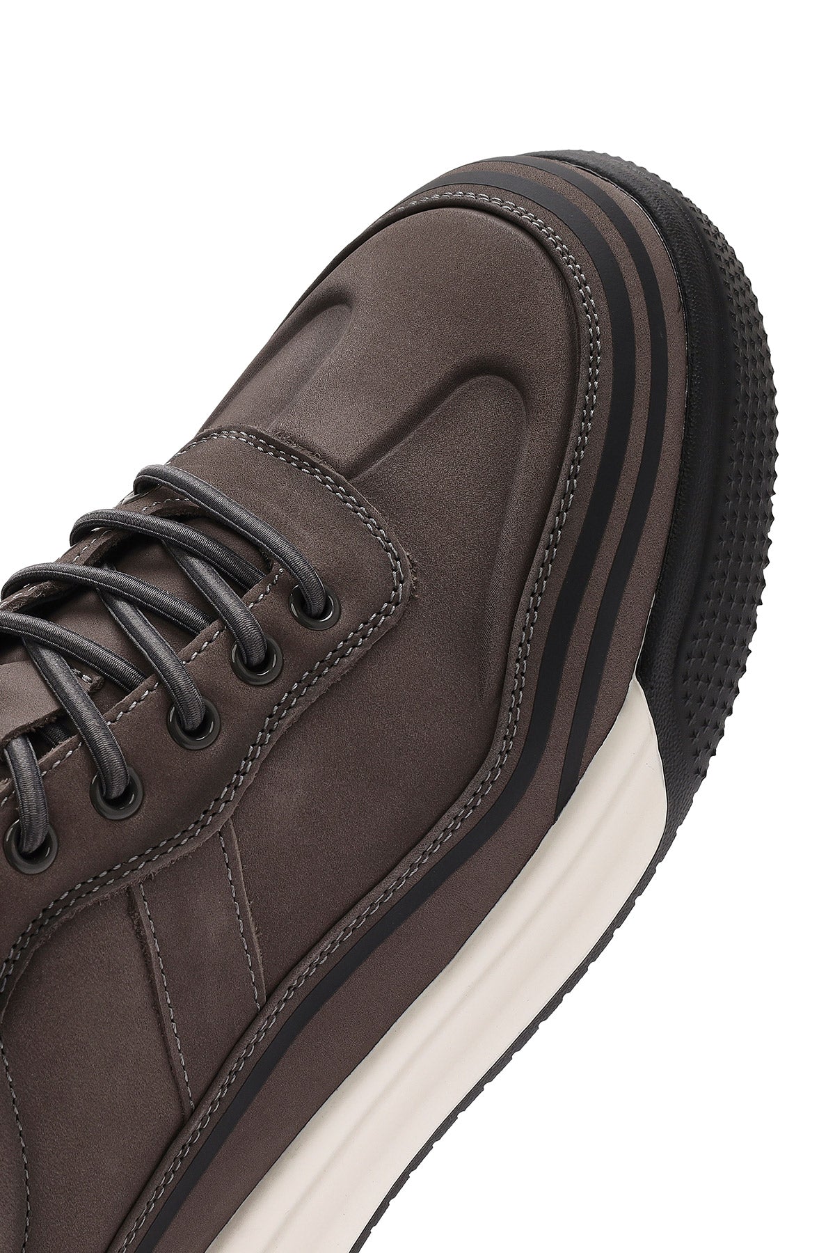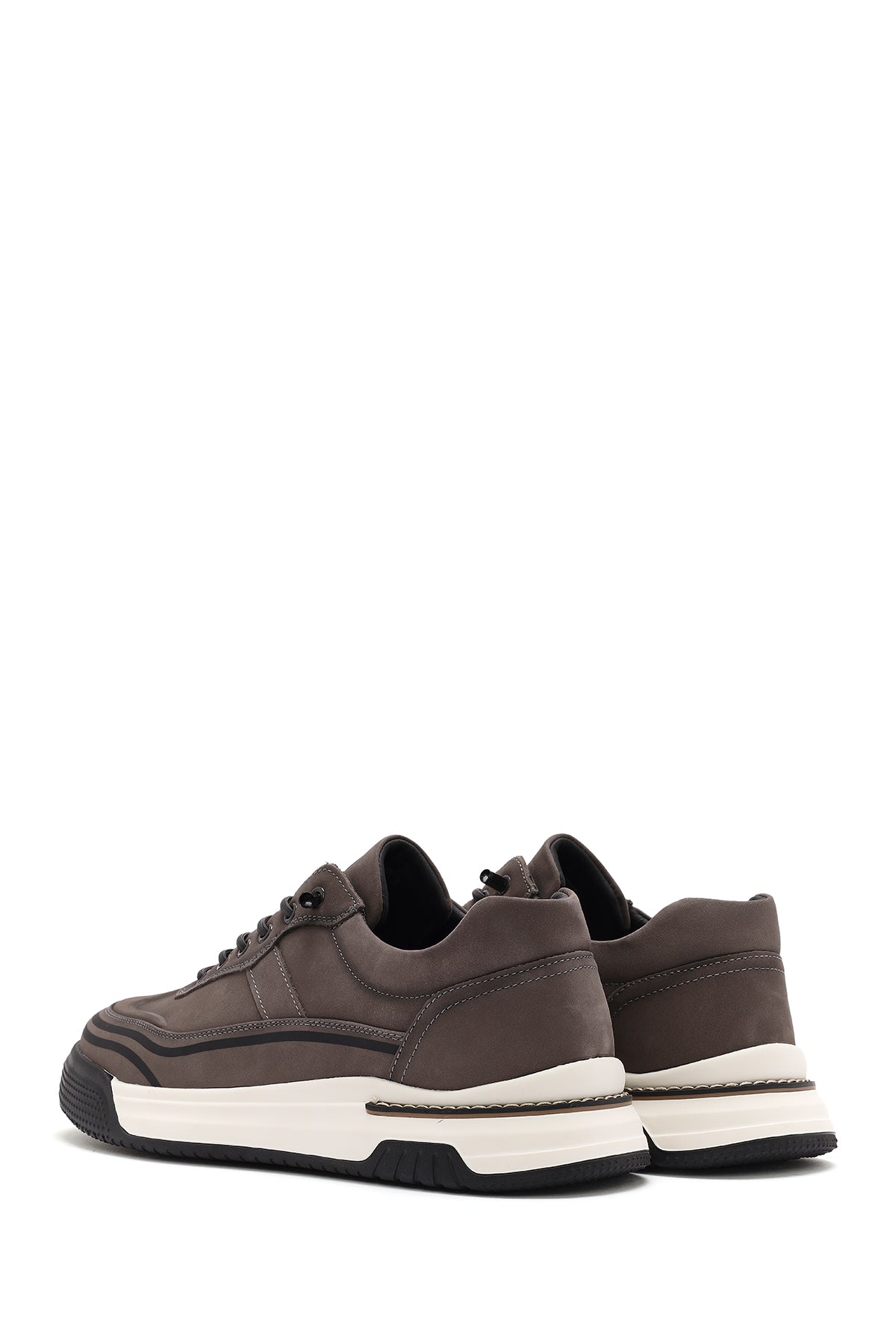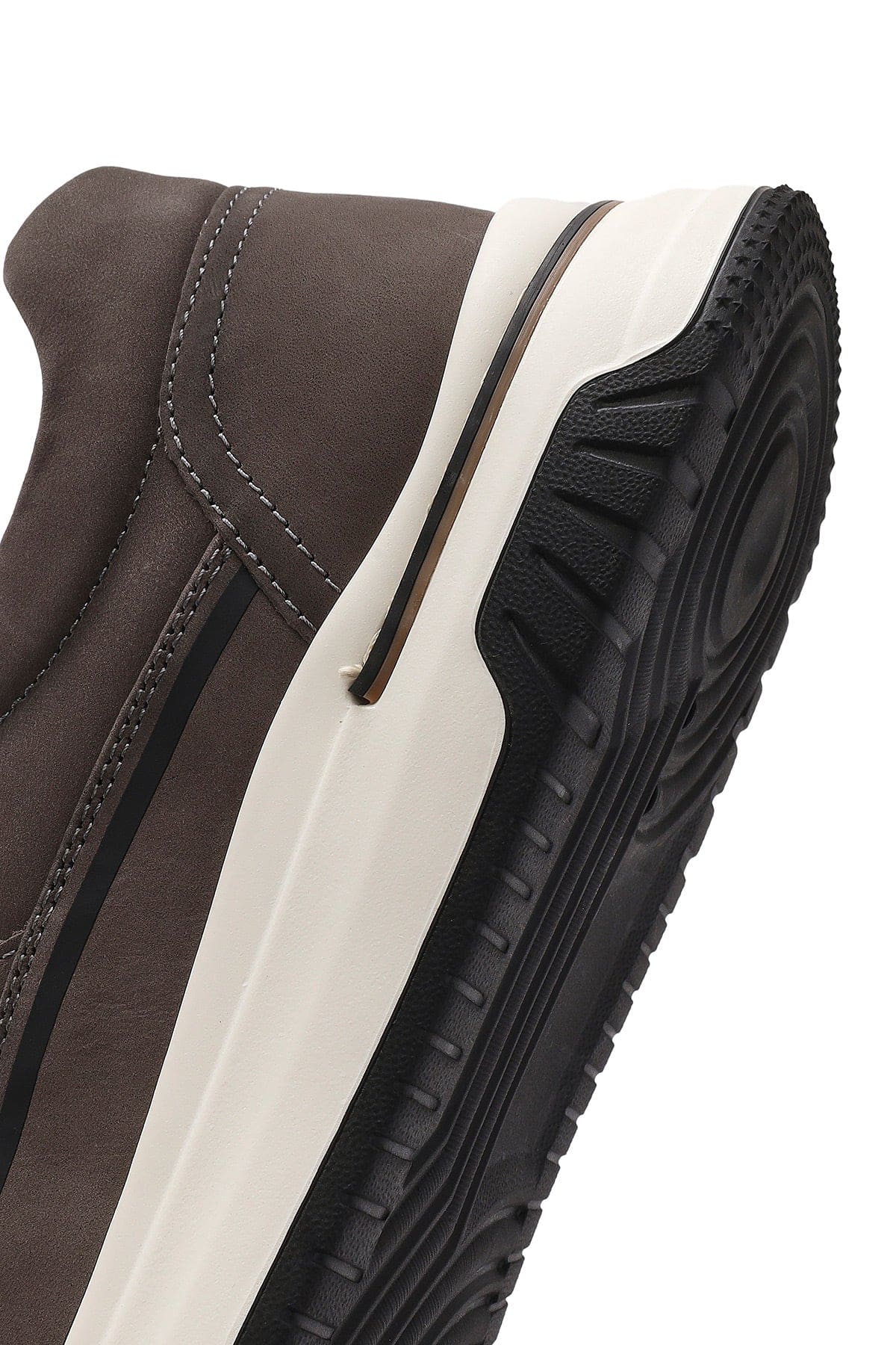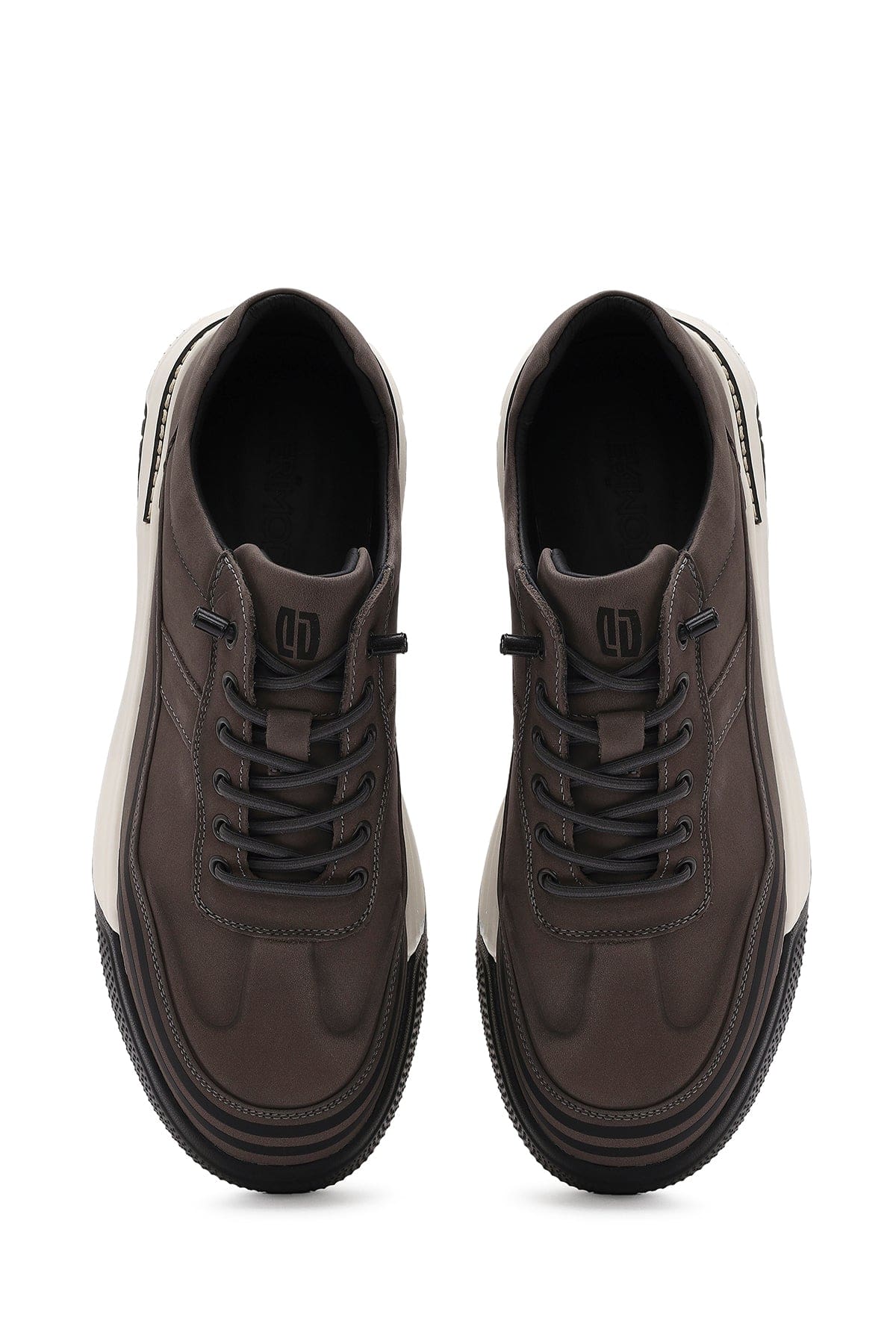 Erkek Gri Bağcıklı Kalın Tabanlı Nubuk Deri Sneaker