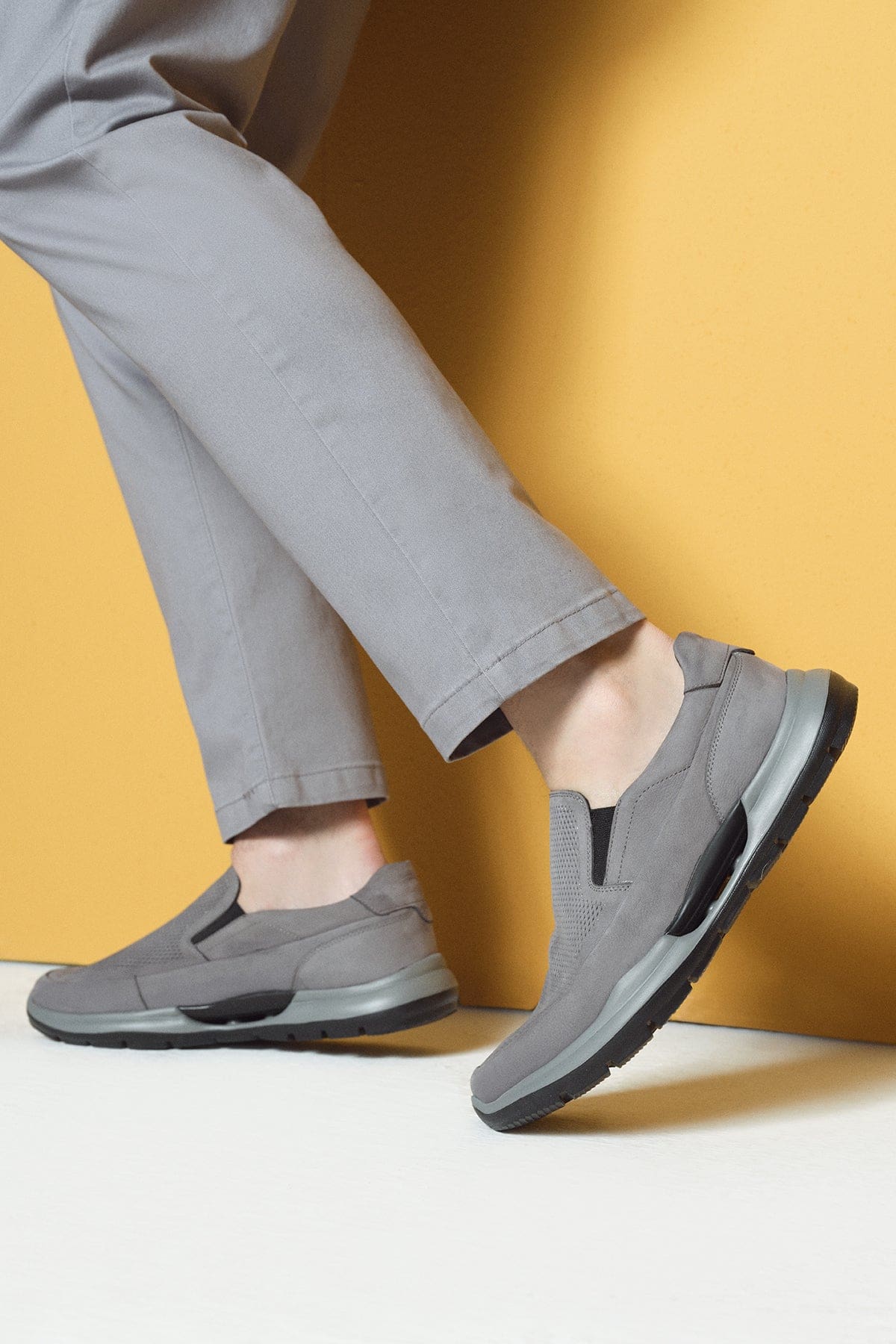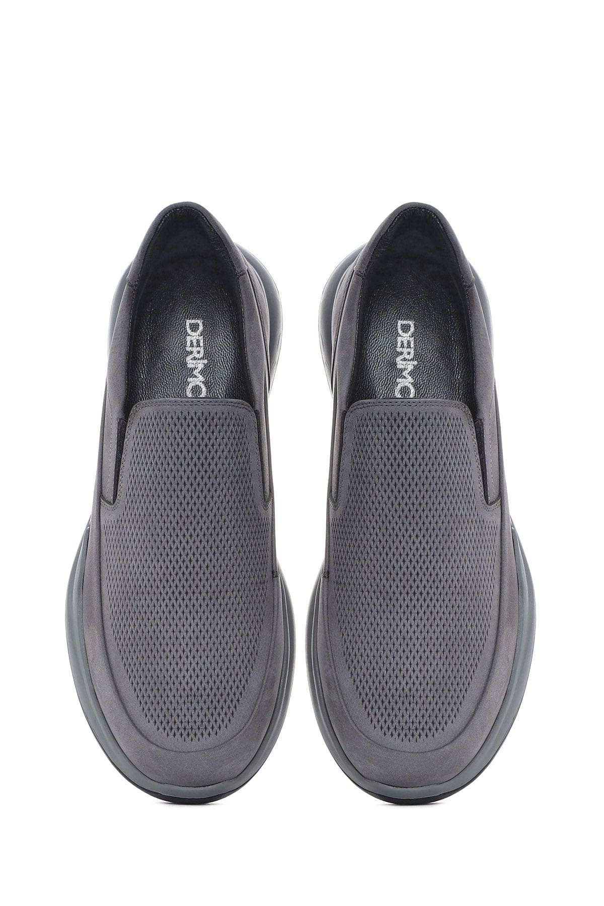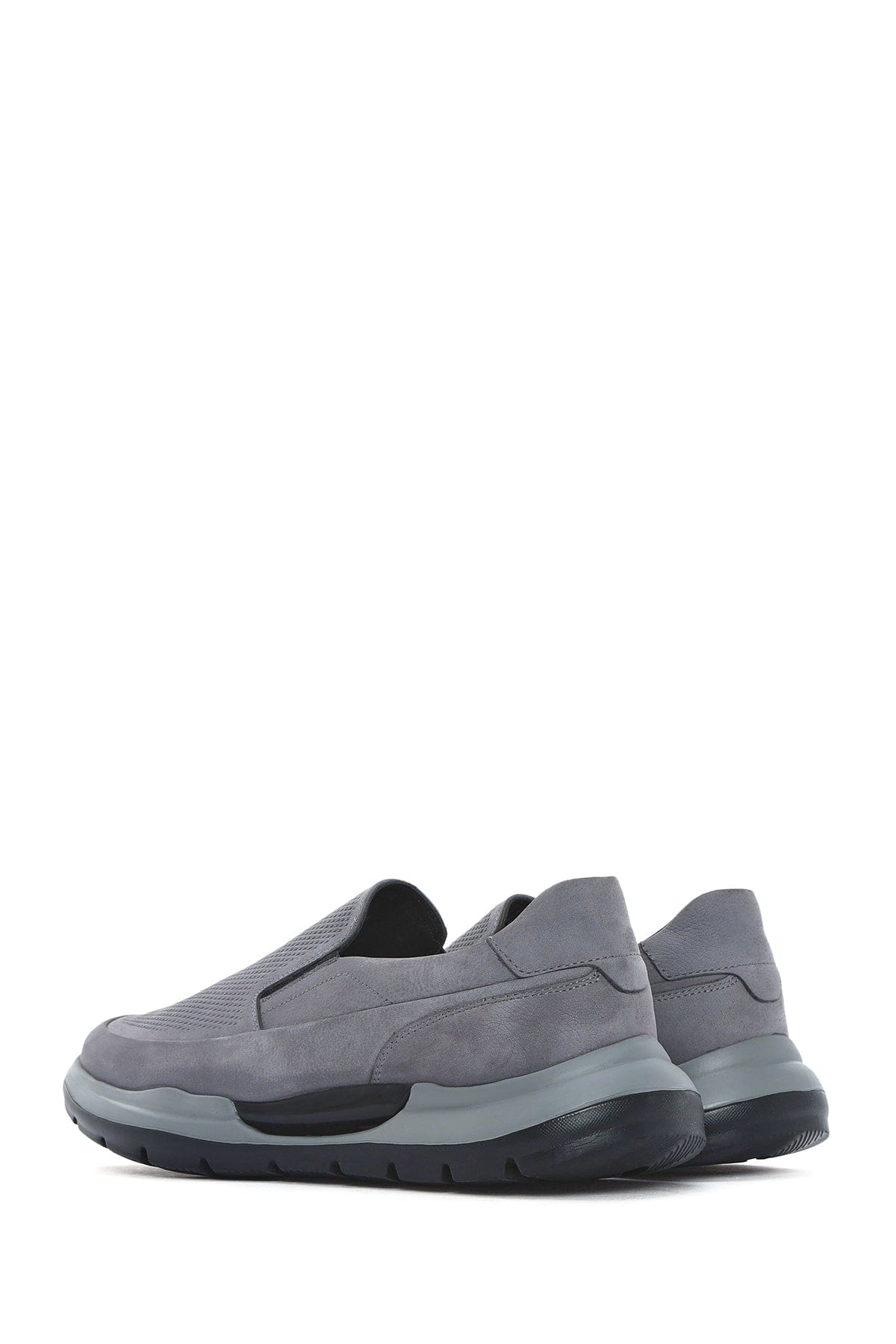 Erkek Gri Kalın Tabanlı Nubuk Deri Comfort Loafer