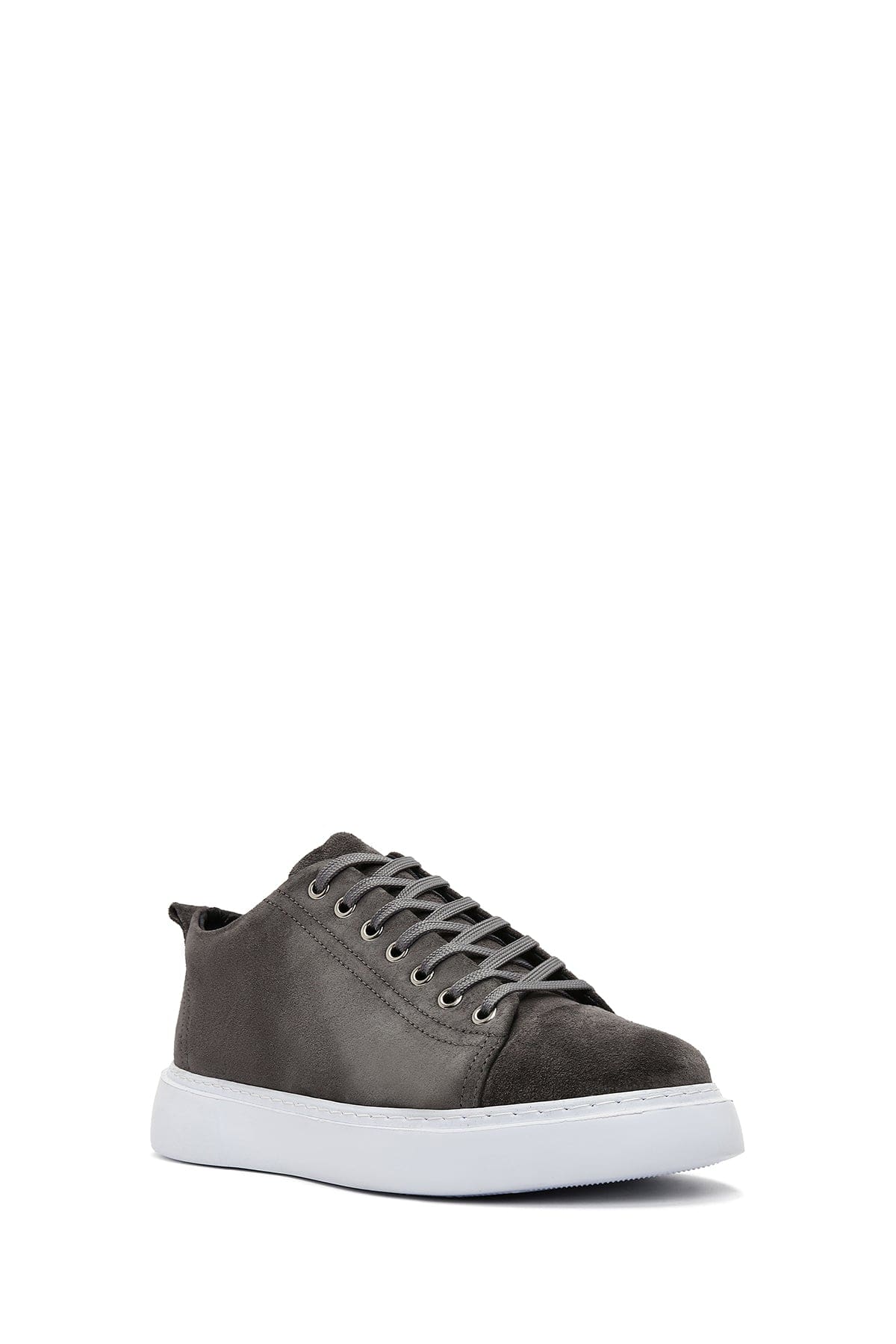 Erkek Gri Bağcıklı Süet Deri Sneaker