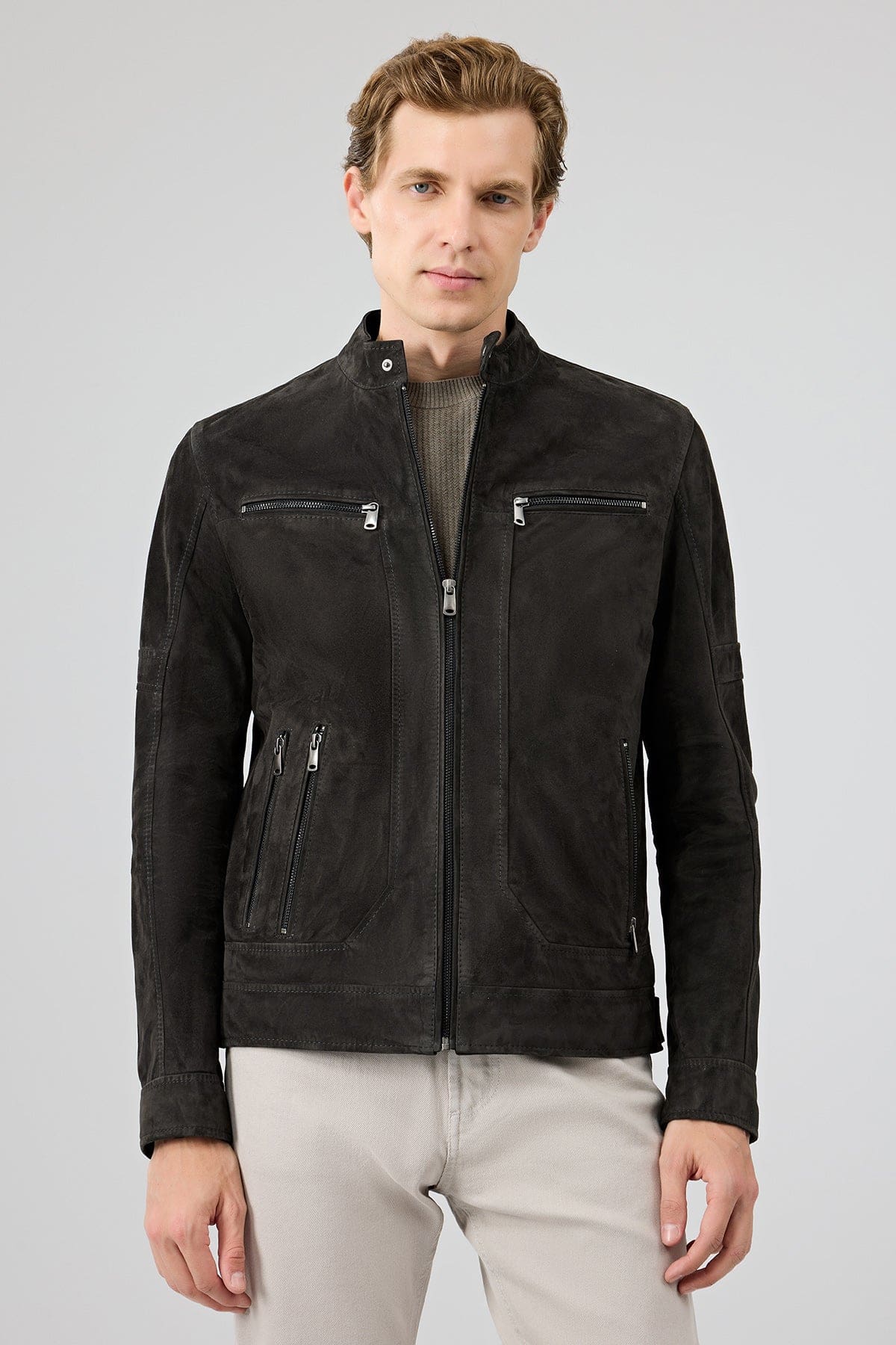 Patrick Erkek Gri Süet Deri Ceket