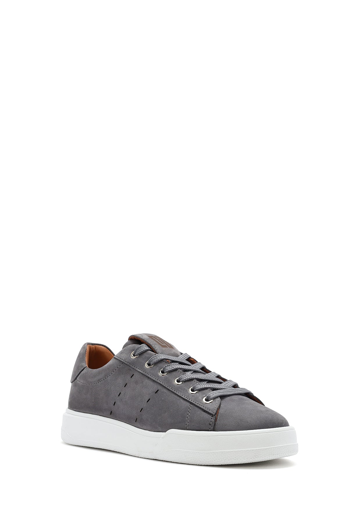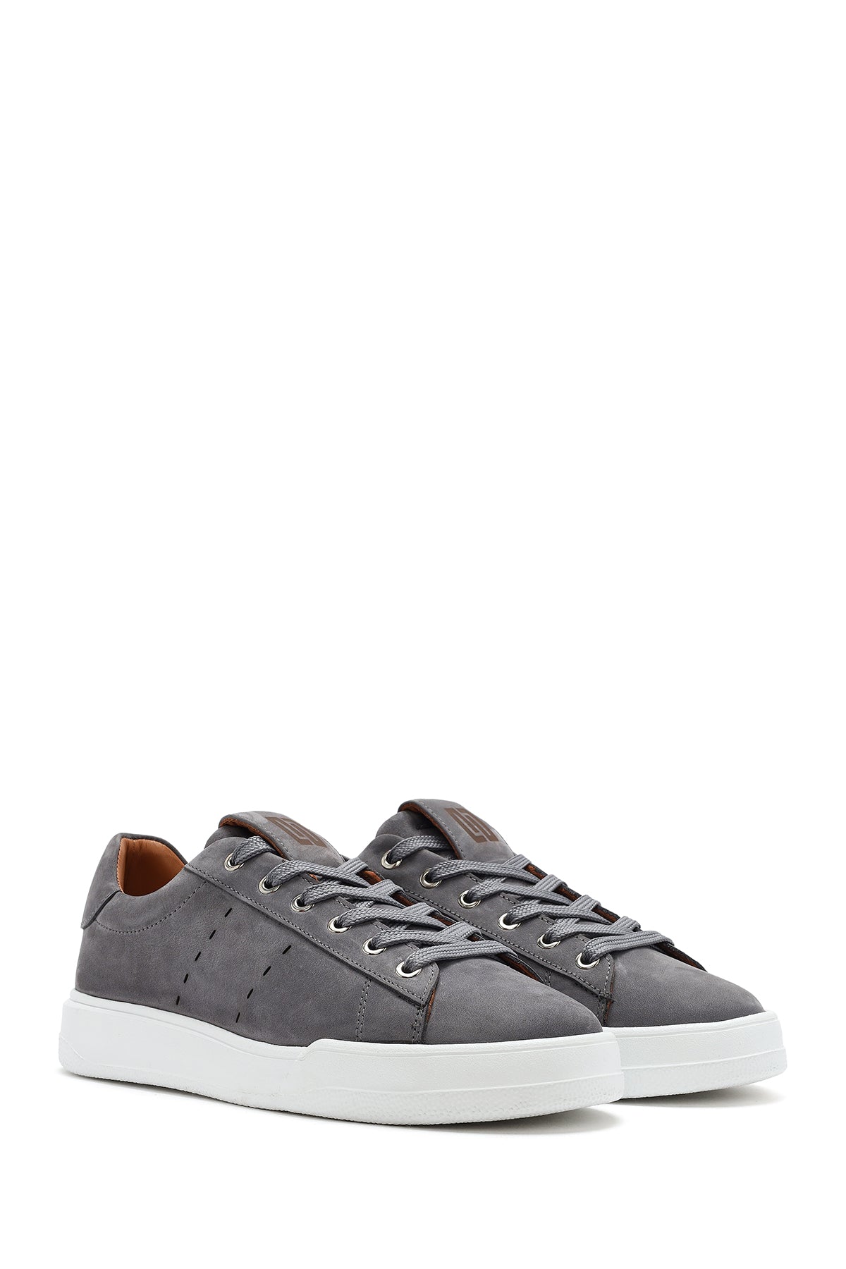 Erkek Gri Bağcıklı Süet Deri Sneaker