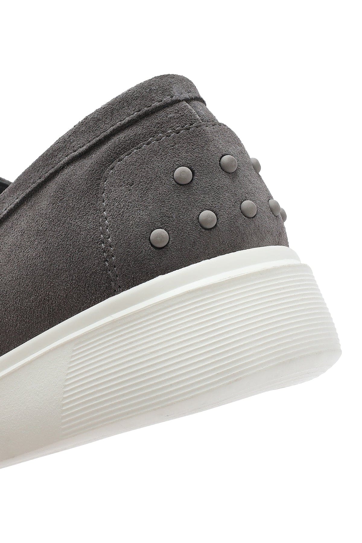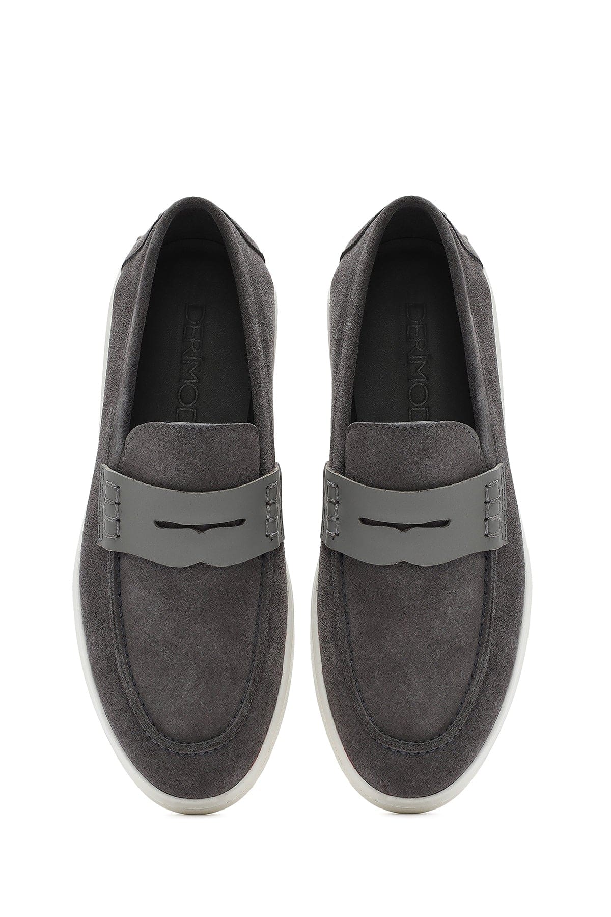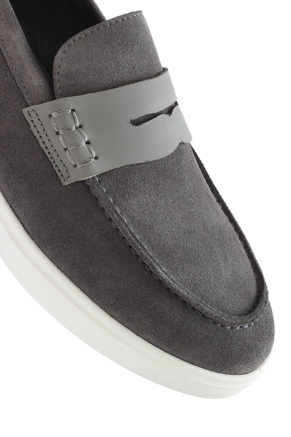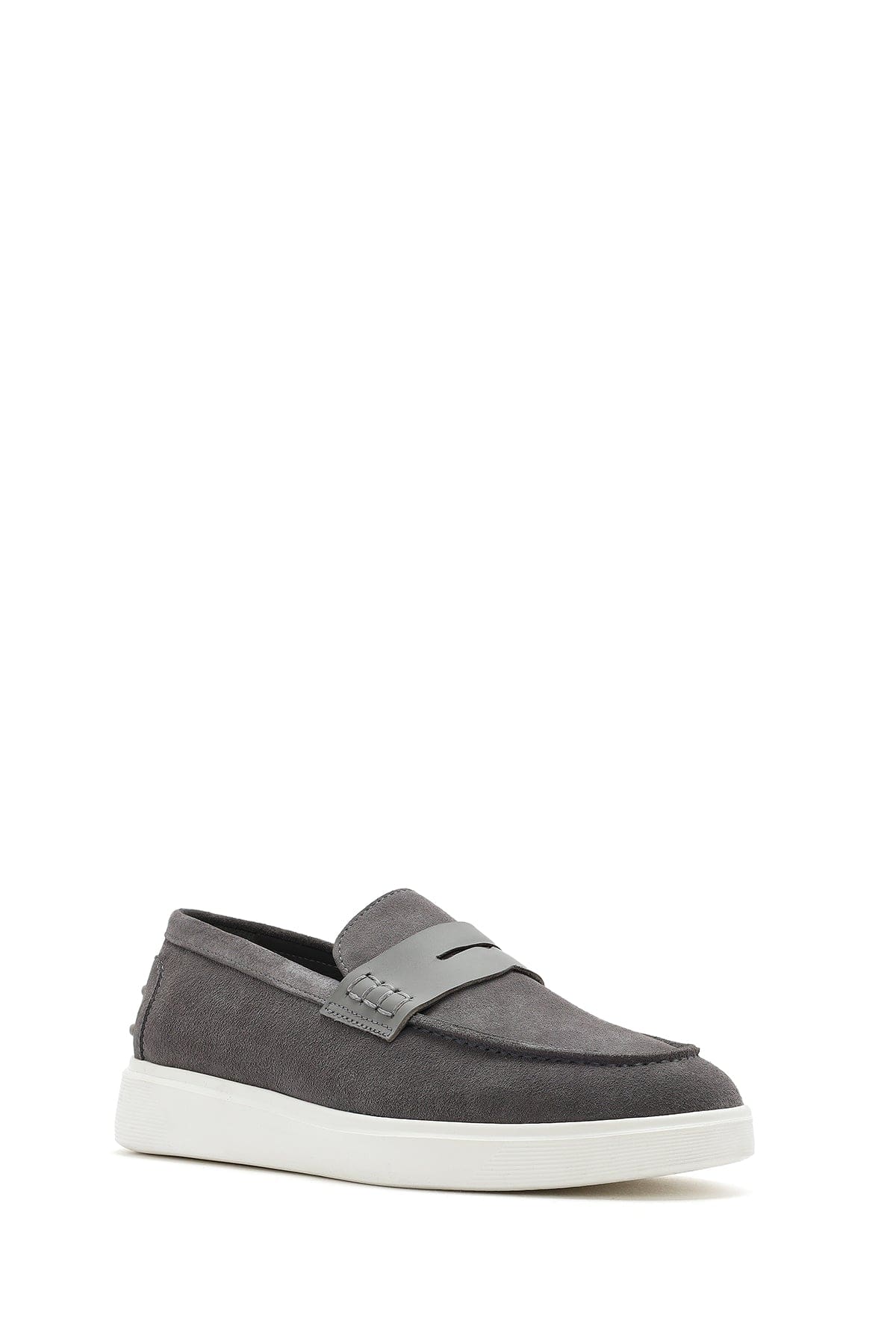 Erkek Gri Kalın Tabanlı Süet Deri Casual Loafer