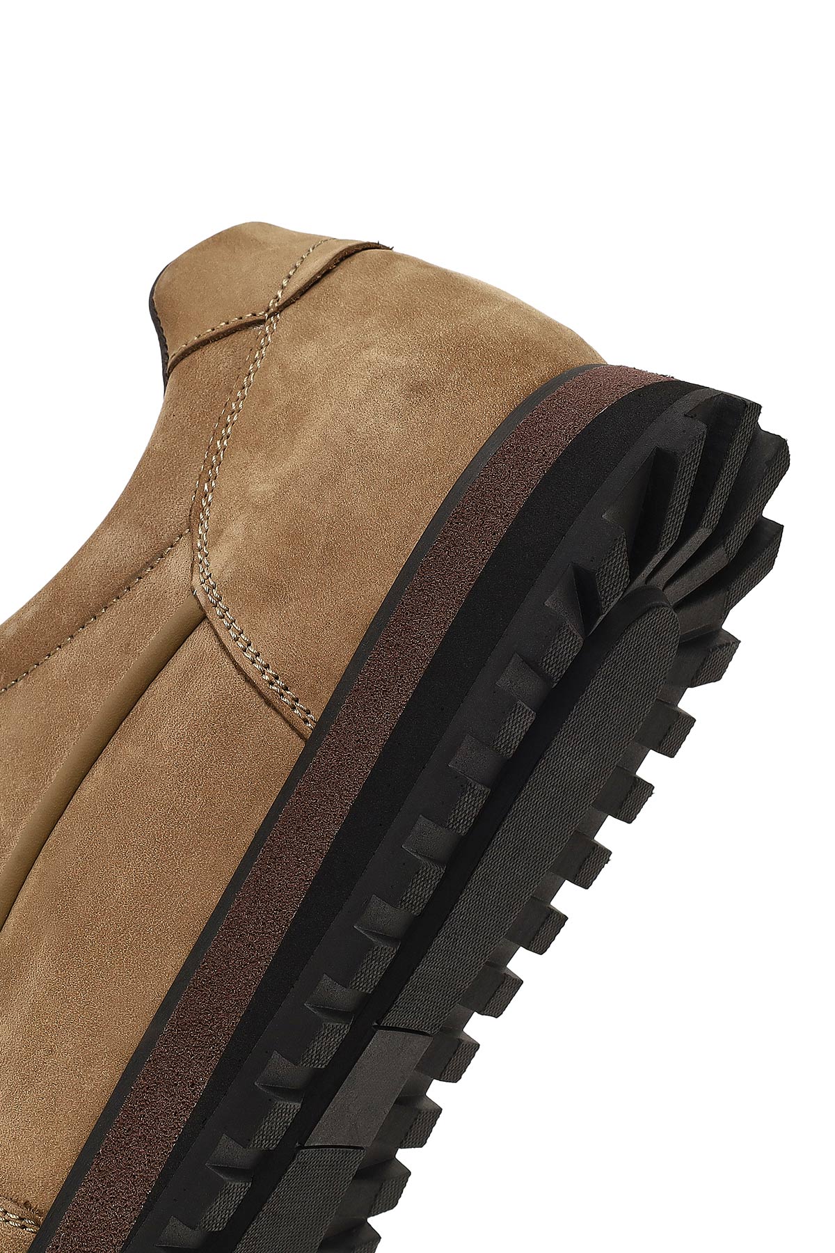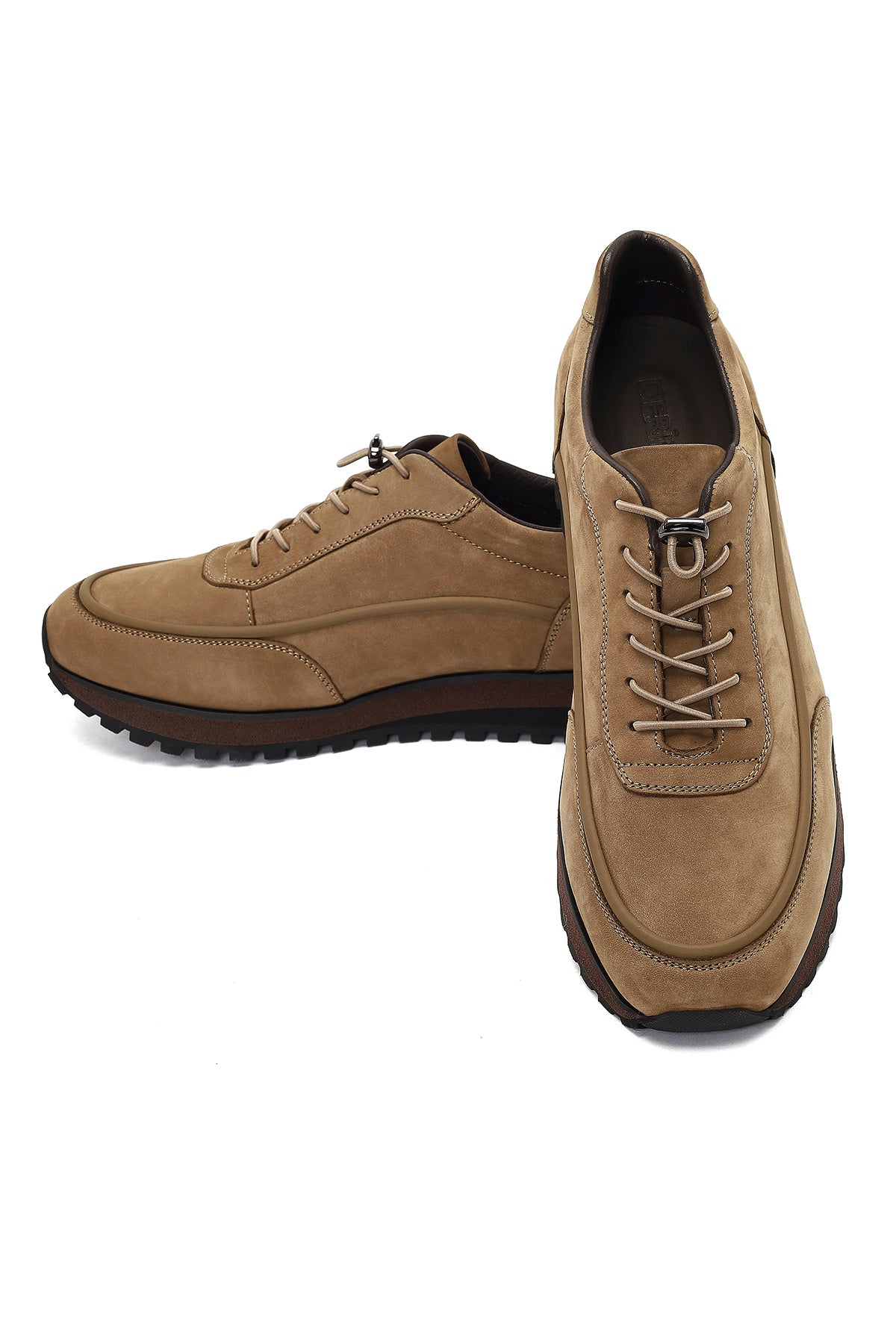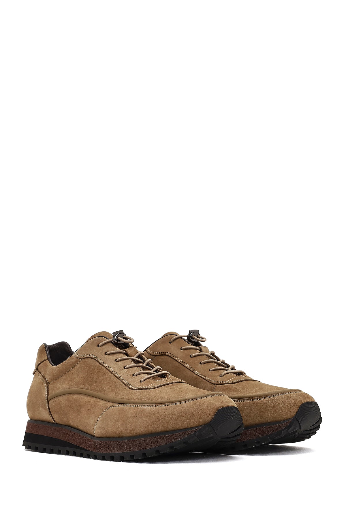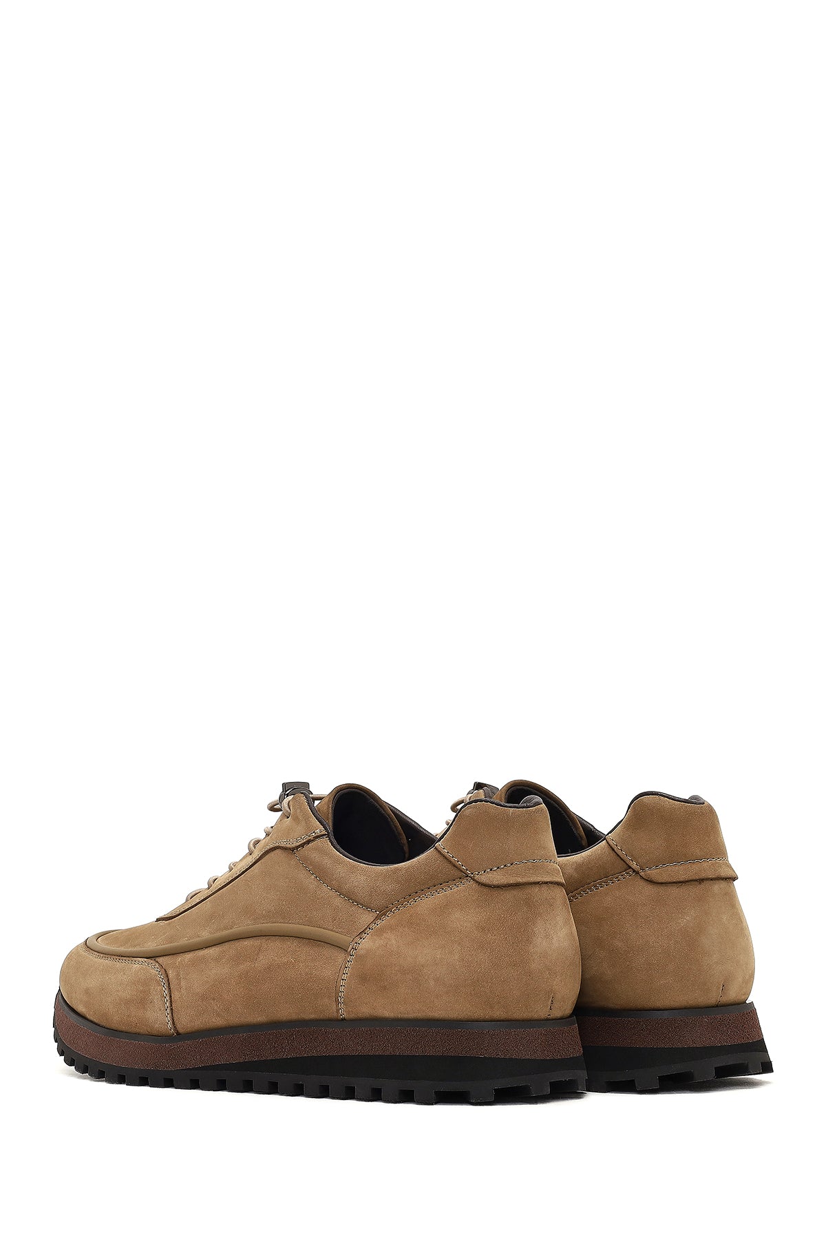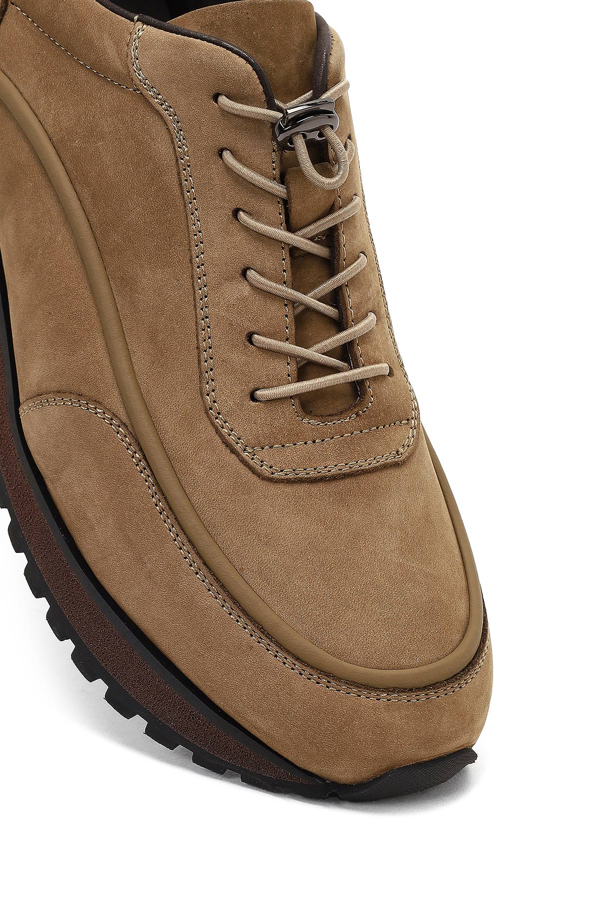 Erkek Vizon Bağcıklı Kalın Tabanlı Nubuk Deri Casual Sneaker
