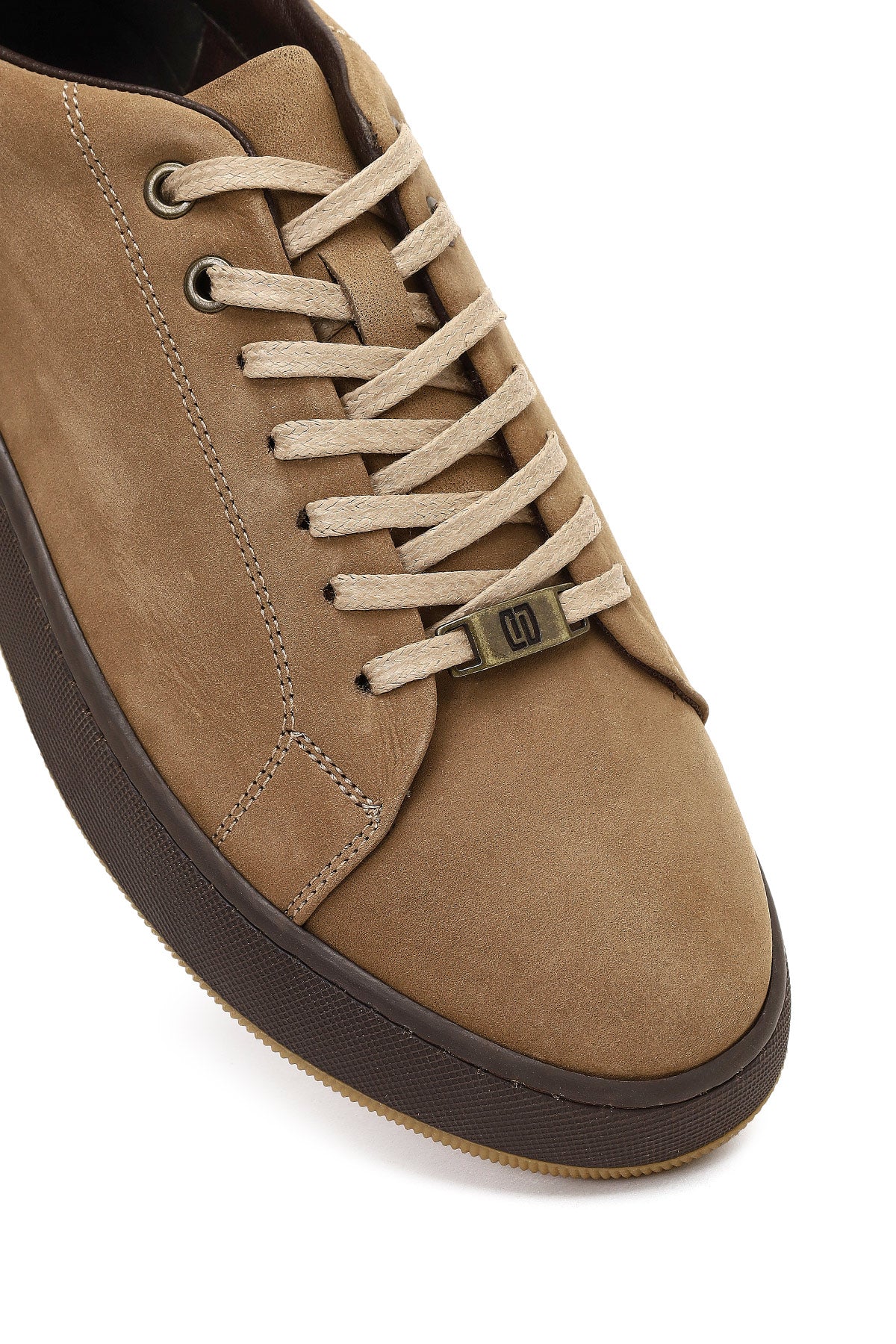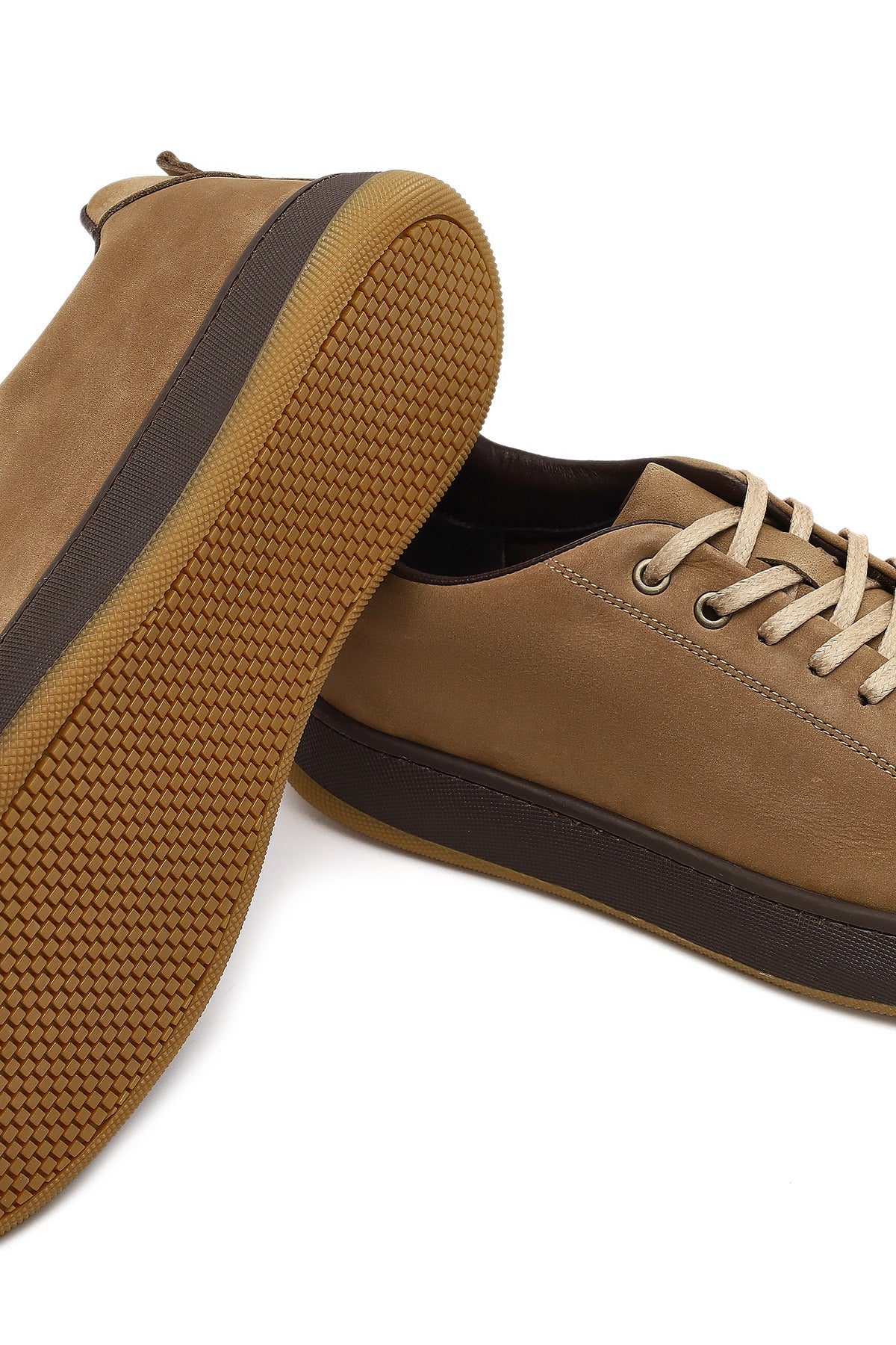 Erkek Vizon Bağcıklı Kalın Tabanlı Nubuk Deri Sneaker