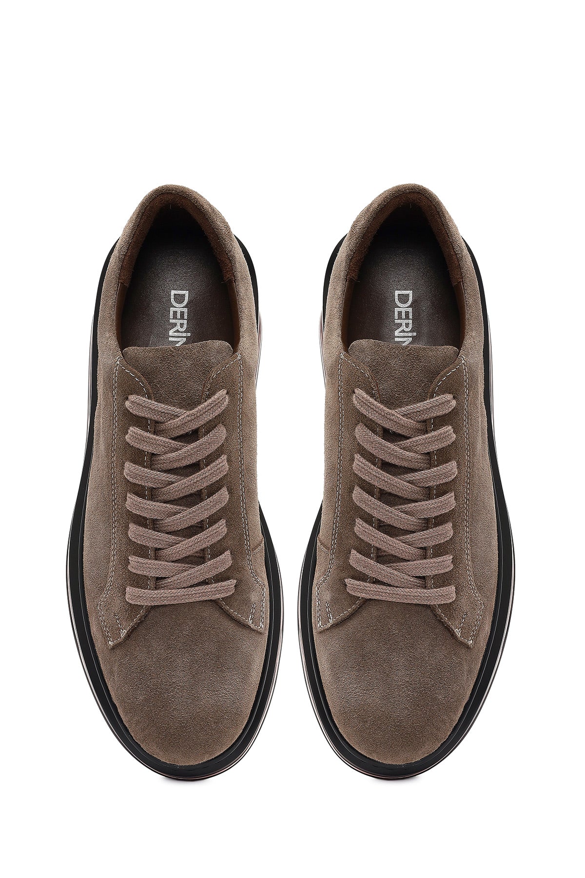Erkek Vizon Bağcıklı Kalın Tabanlı Süet Deri Sneaker