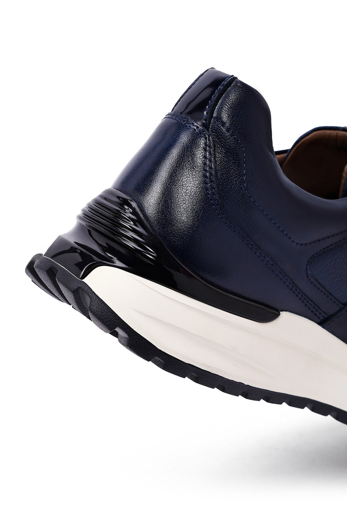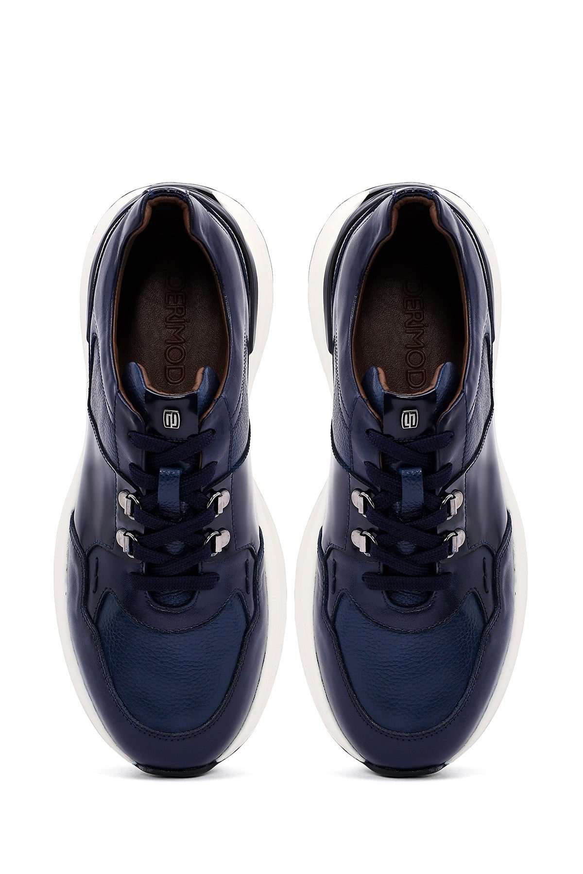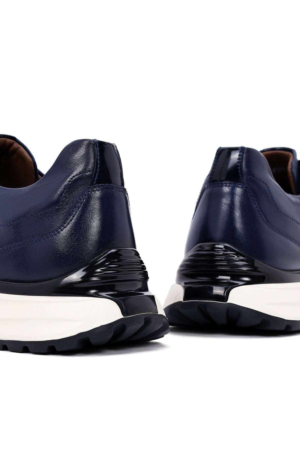 Erkek Lacivert Bağcıklı Kalın Tabanlı Deri Casual Sneaker