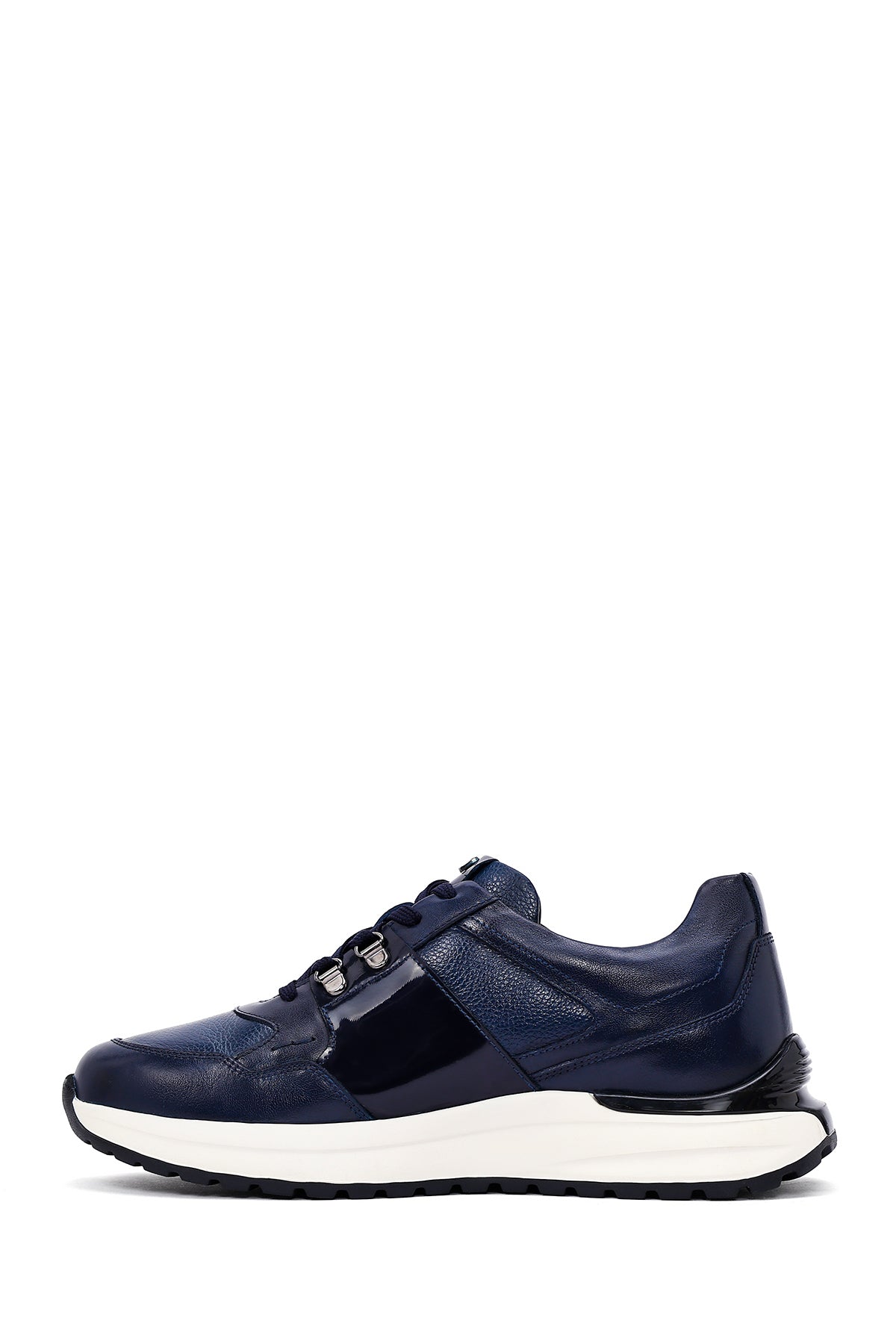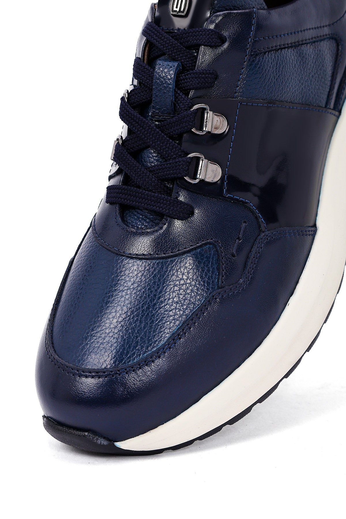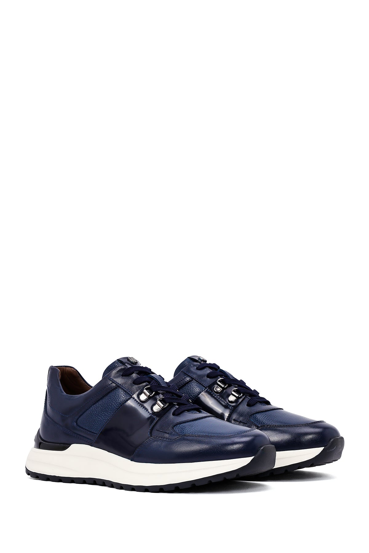 Erkek Lacivert Bağcıklı Kalın Tabanlı Deri Casual Sneaker