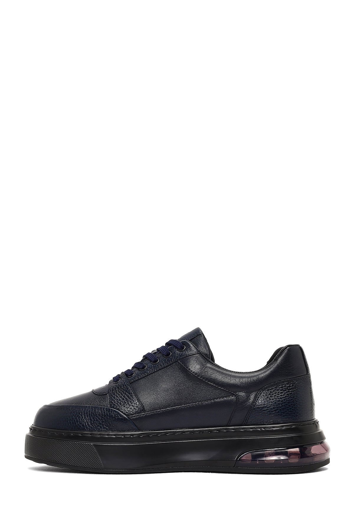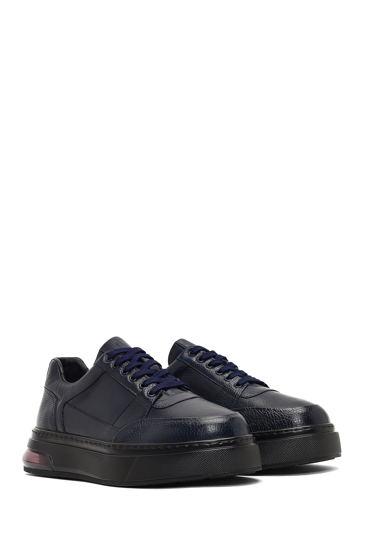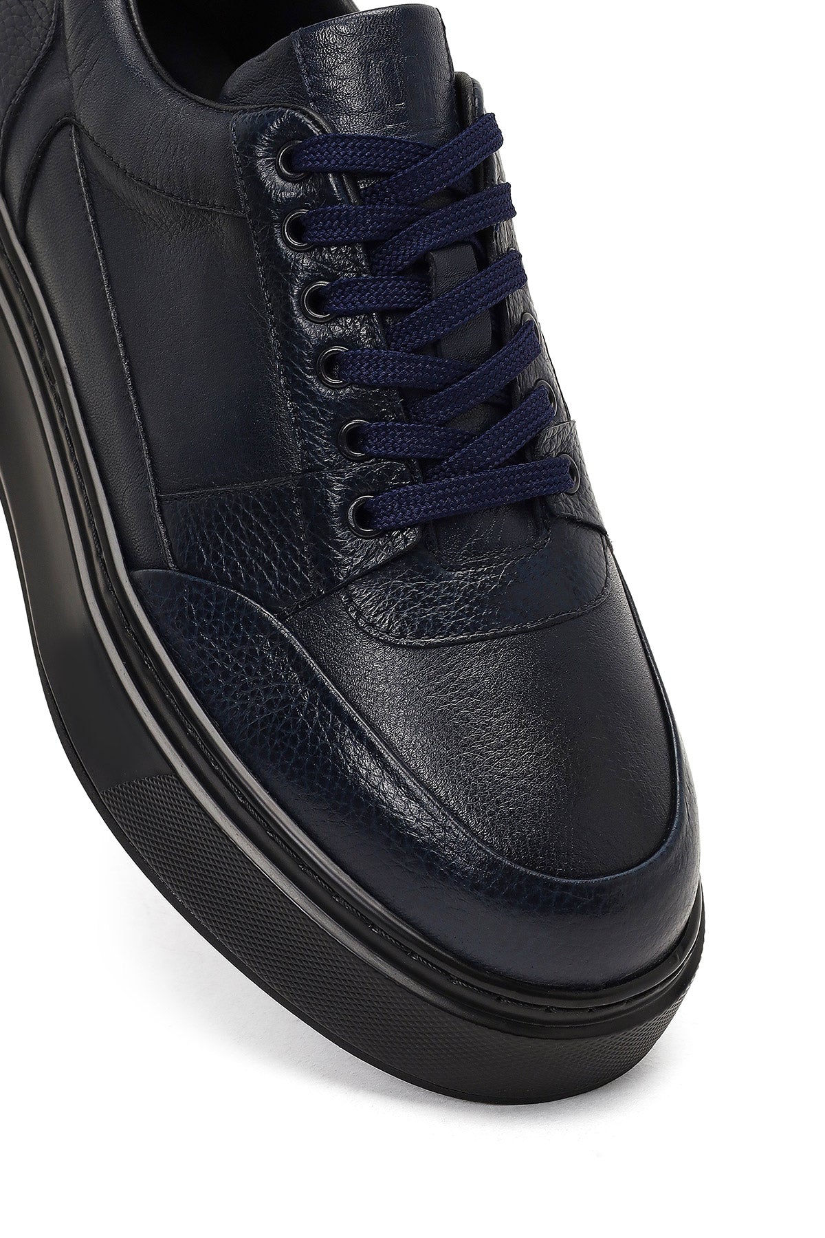 Erkek Lacivert Bağcıklı Kalın Tabanlı Deri Sneaker