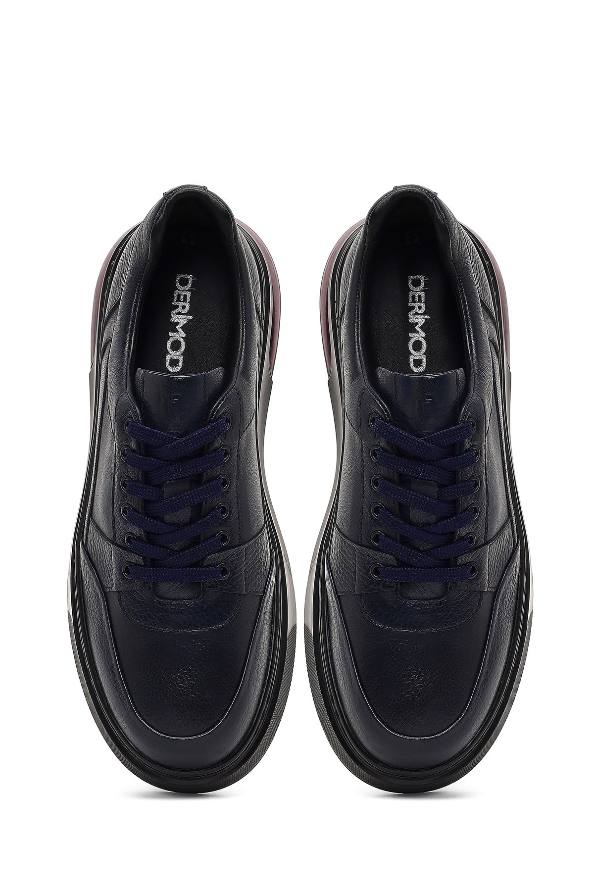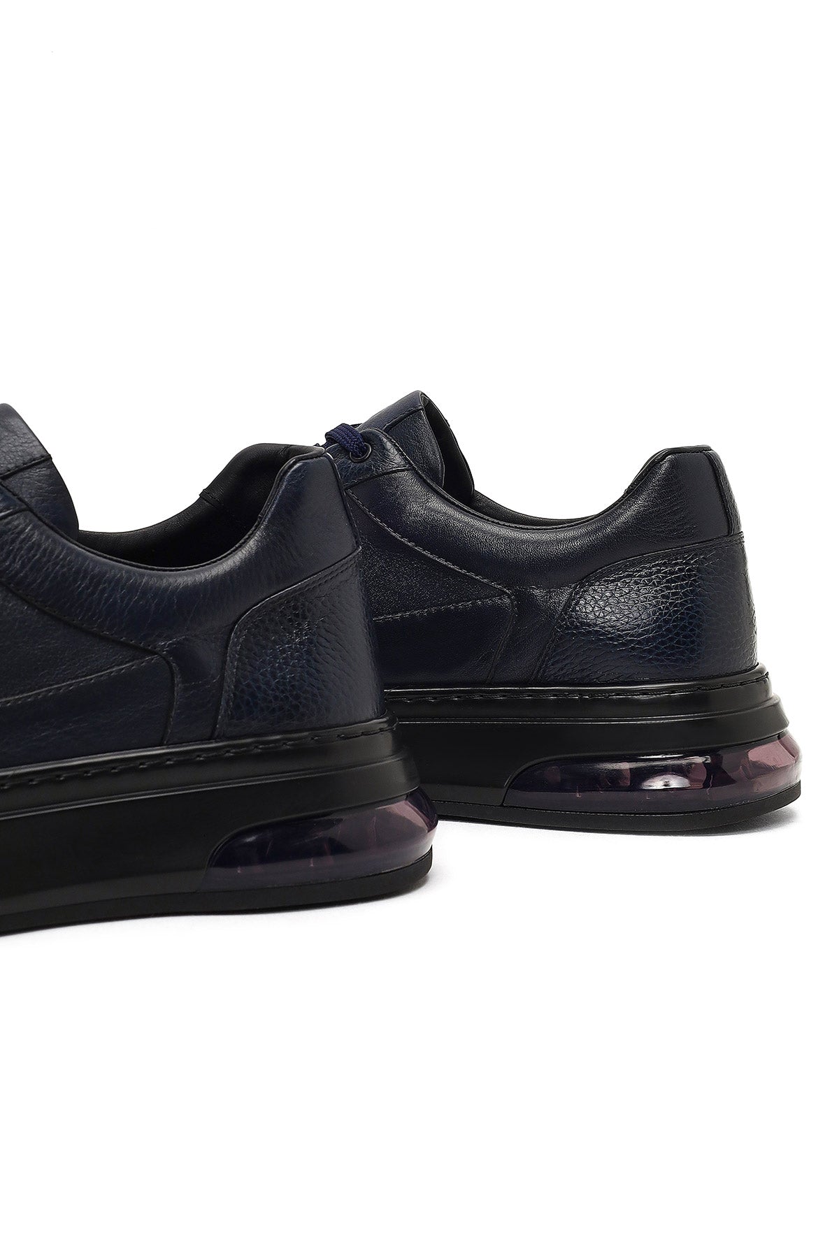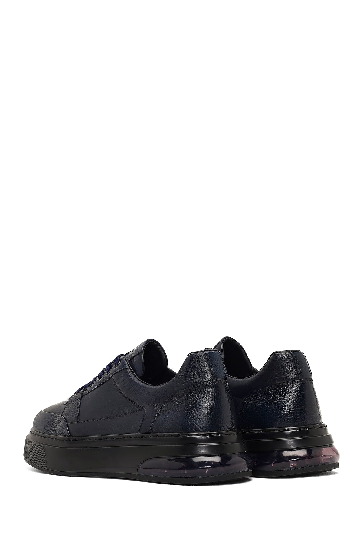 Erkek Lacivert Bağcıklı Kalın Tabanlı Deri Sneaker