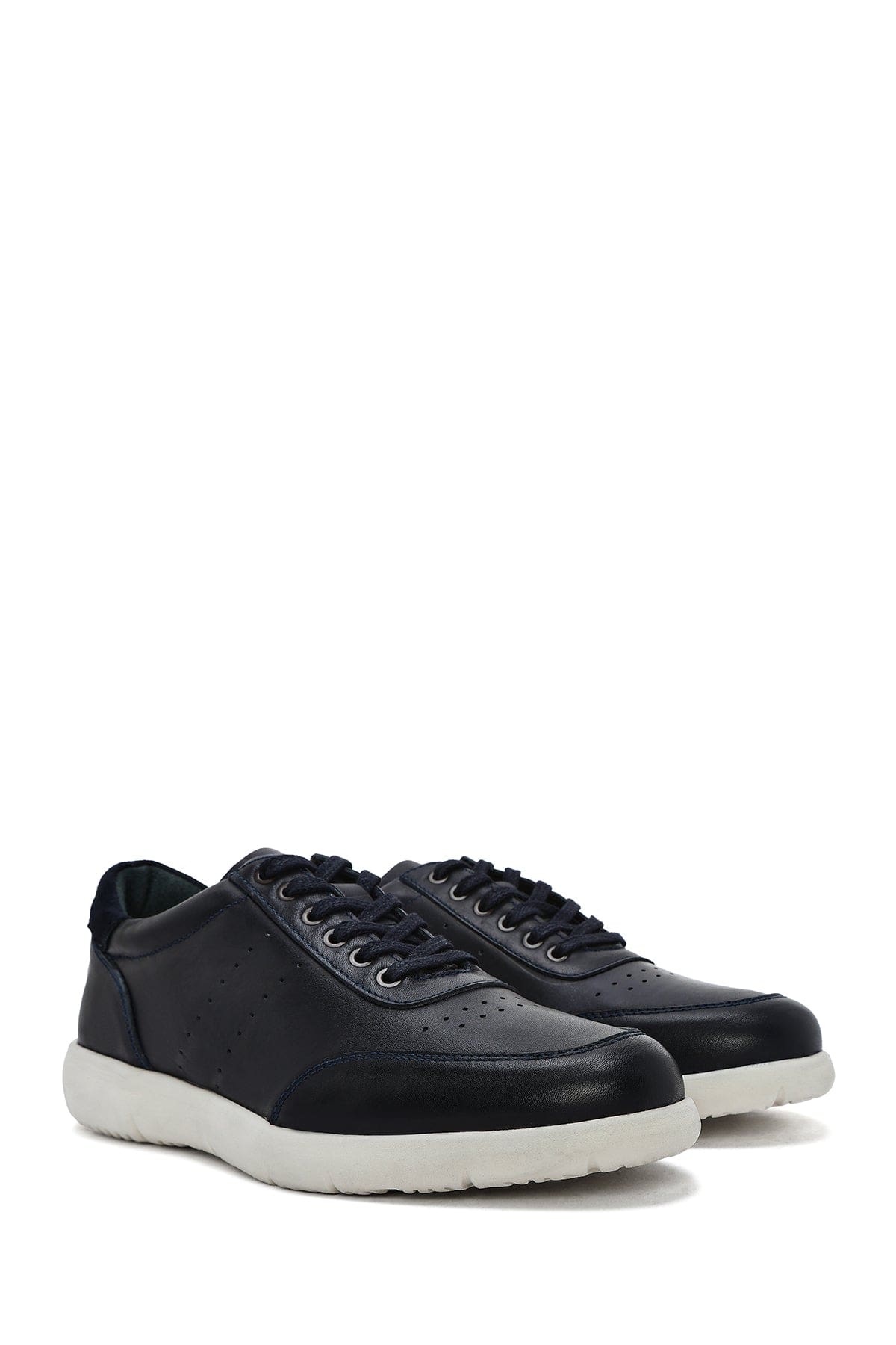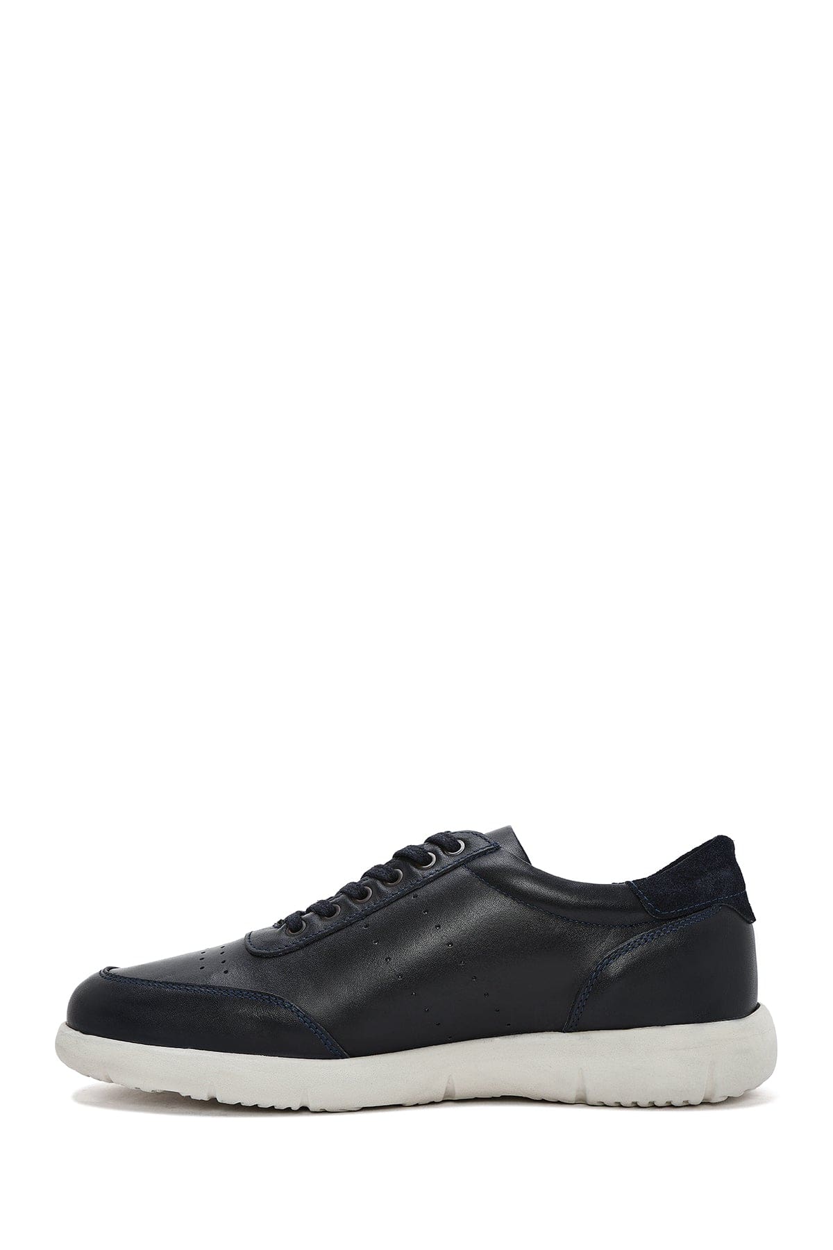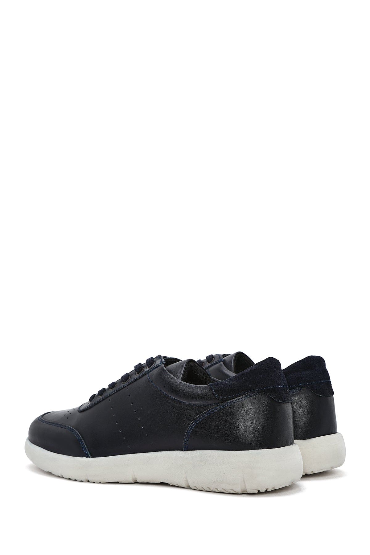 Erkek Lacivert Bağcıklı Deri Casual Sneaker