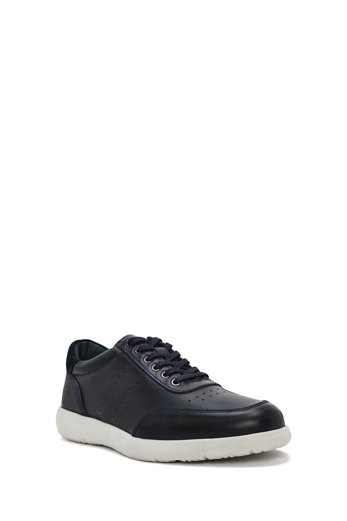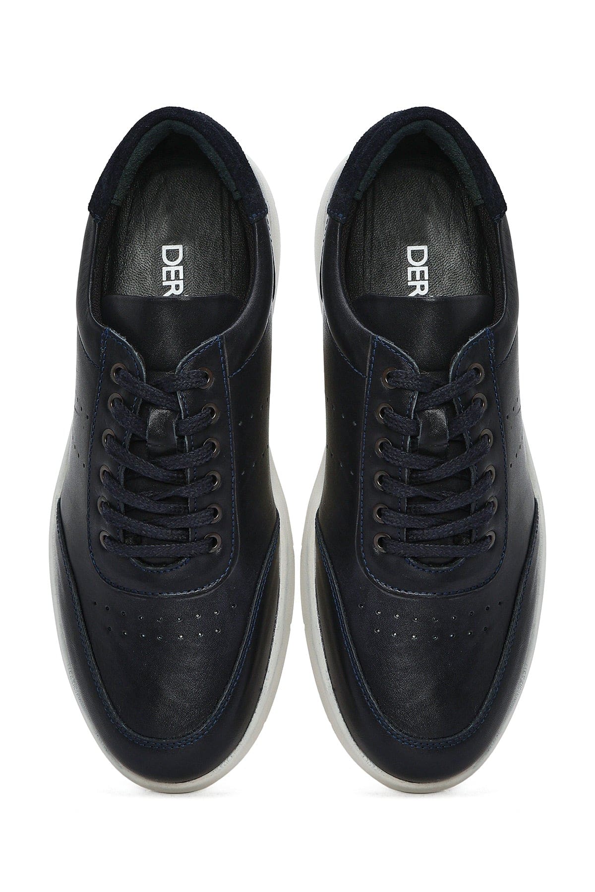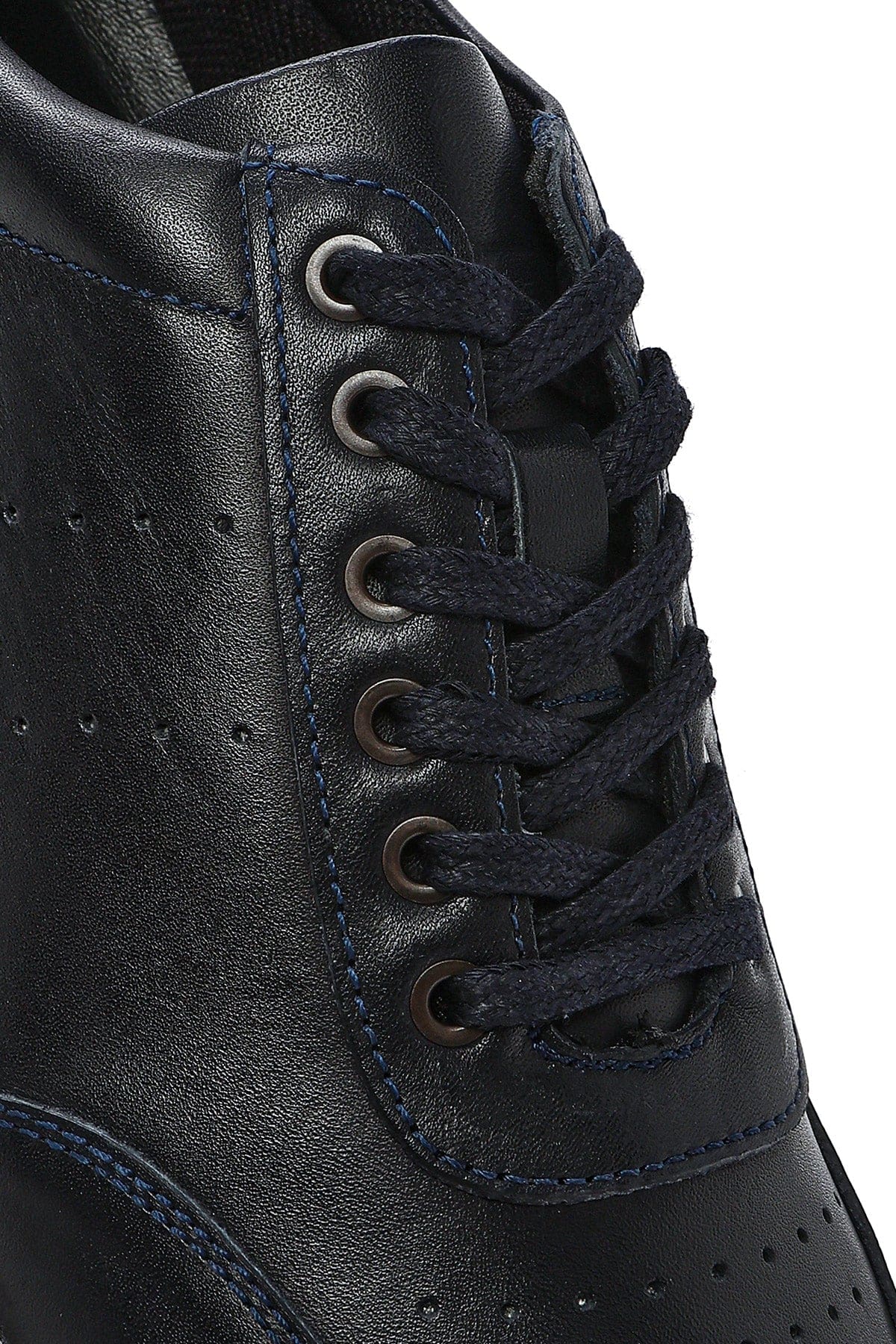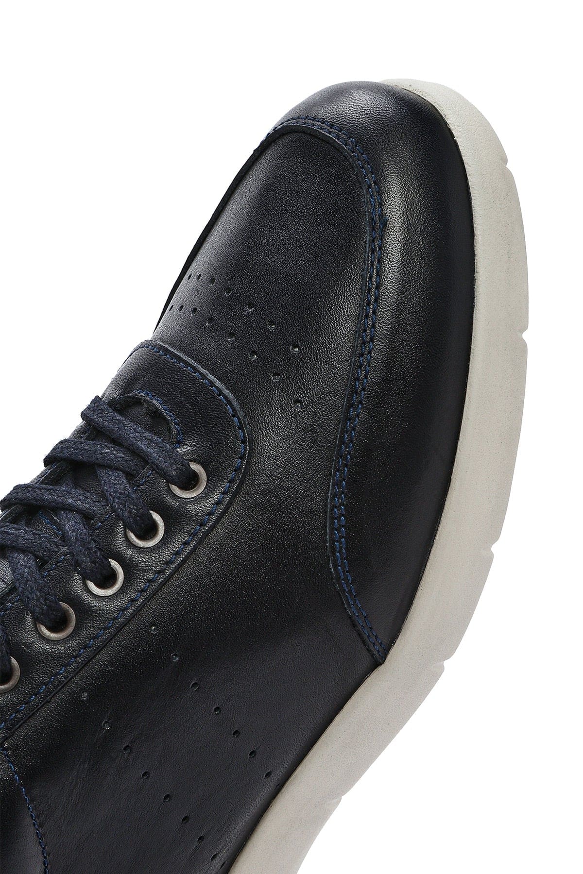 Erkek Lacivert Bağcıklı Deri Casual Sneaker