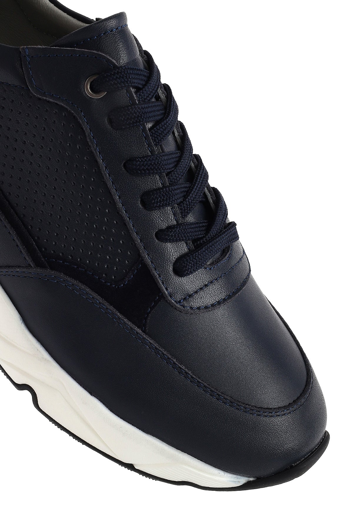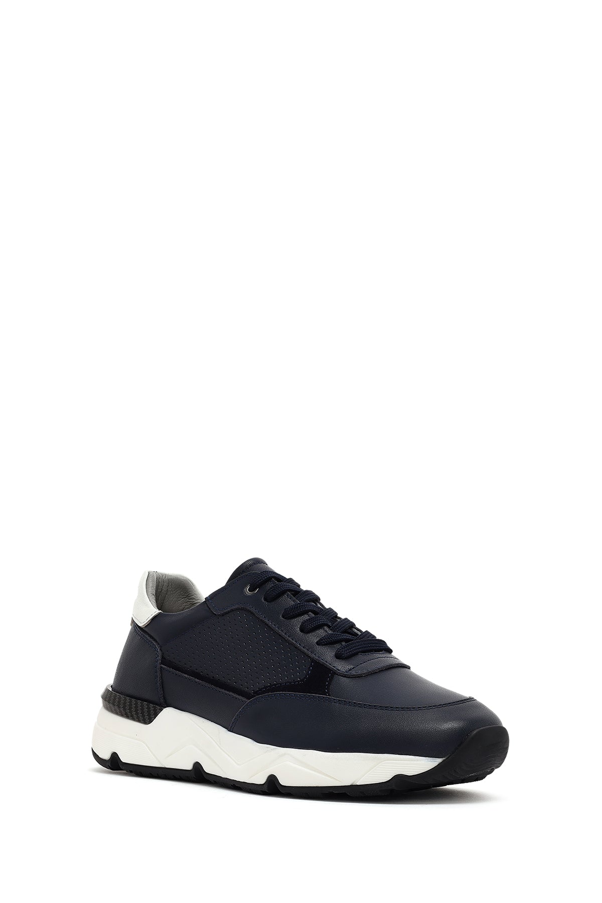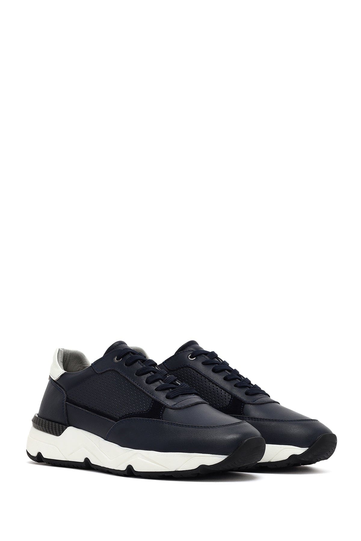 Erkek Lacivert Bağcıklı Kalın Tabanlı Deri Sneaker