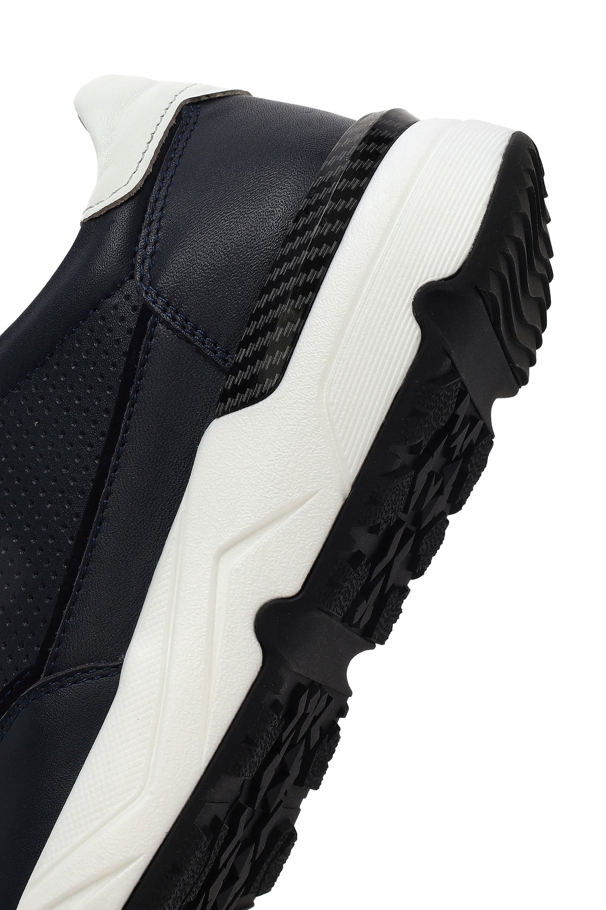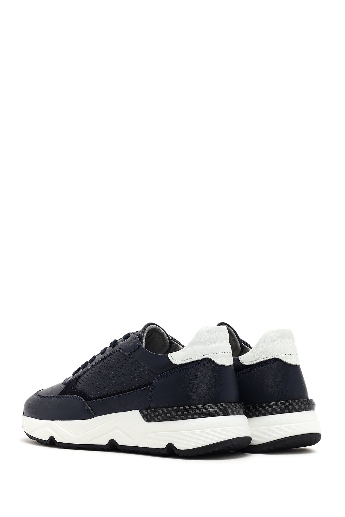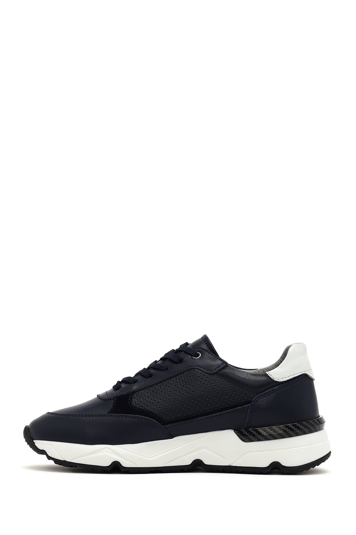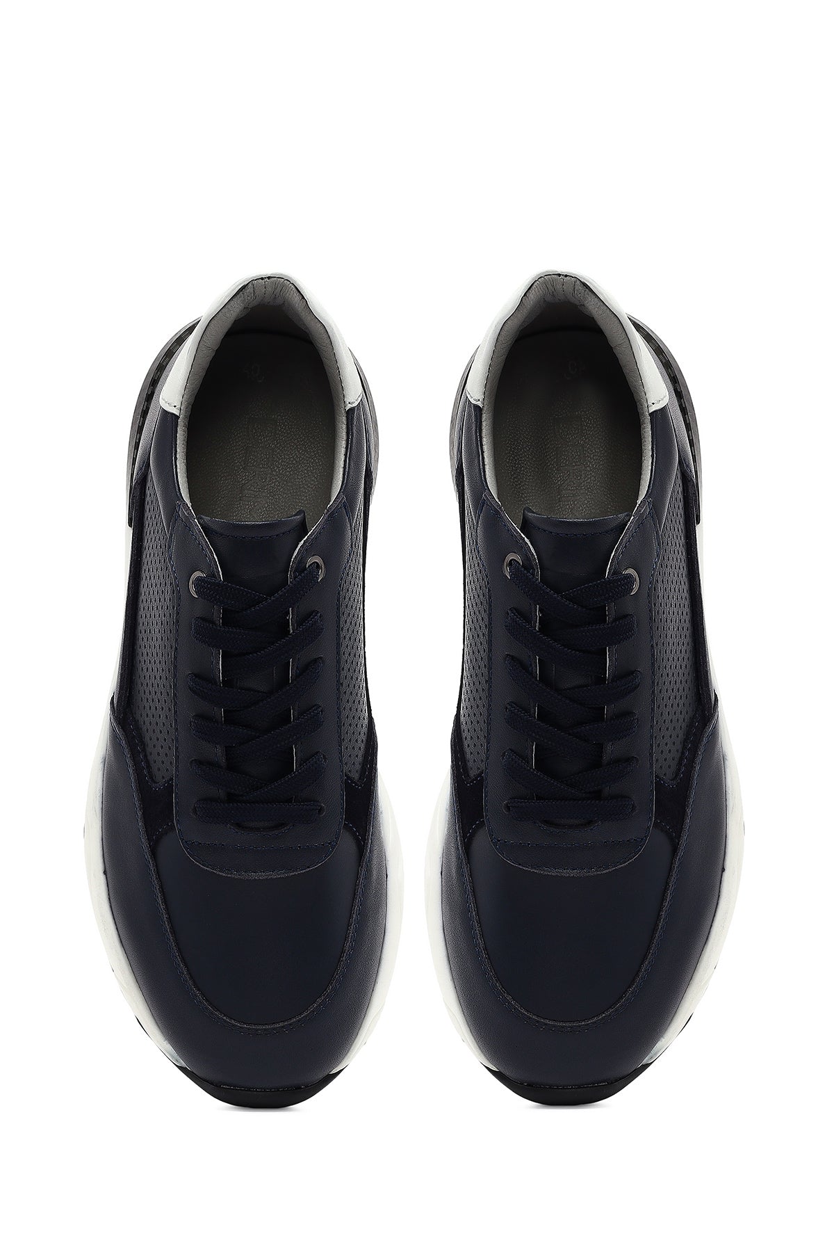 Erkek Lacivert Bağcıklı Kalın Tabanlı Deri Sneaker
