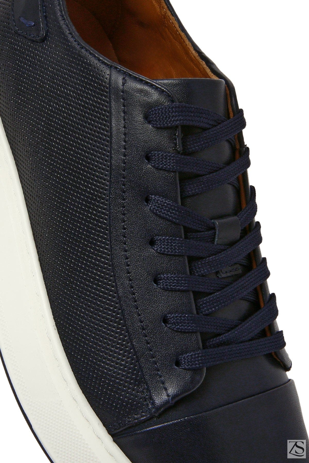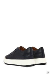 Erkek Lacivert Bağcıklı Kalın Tabanlı Deri Sneaker