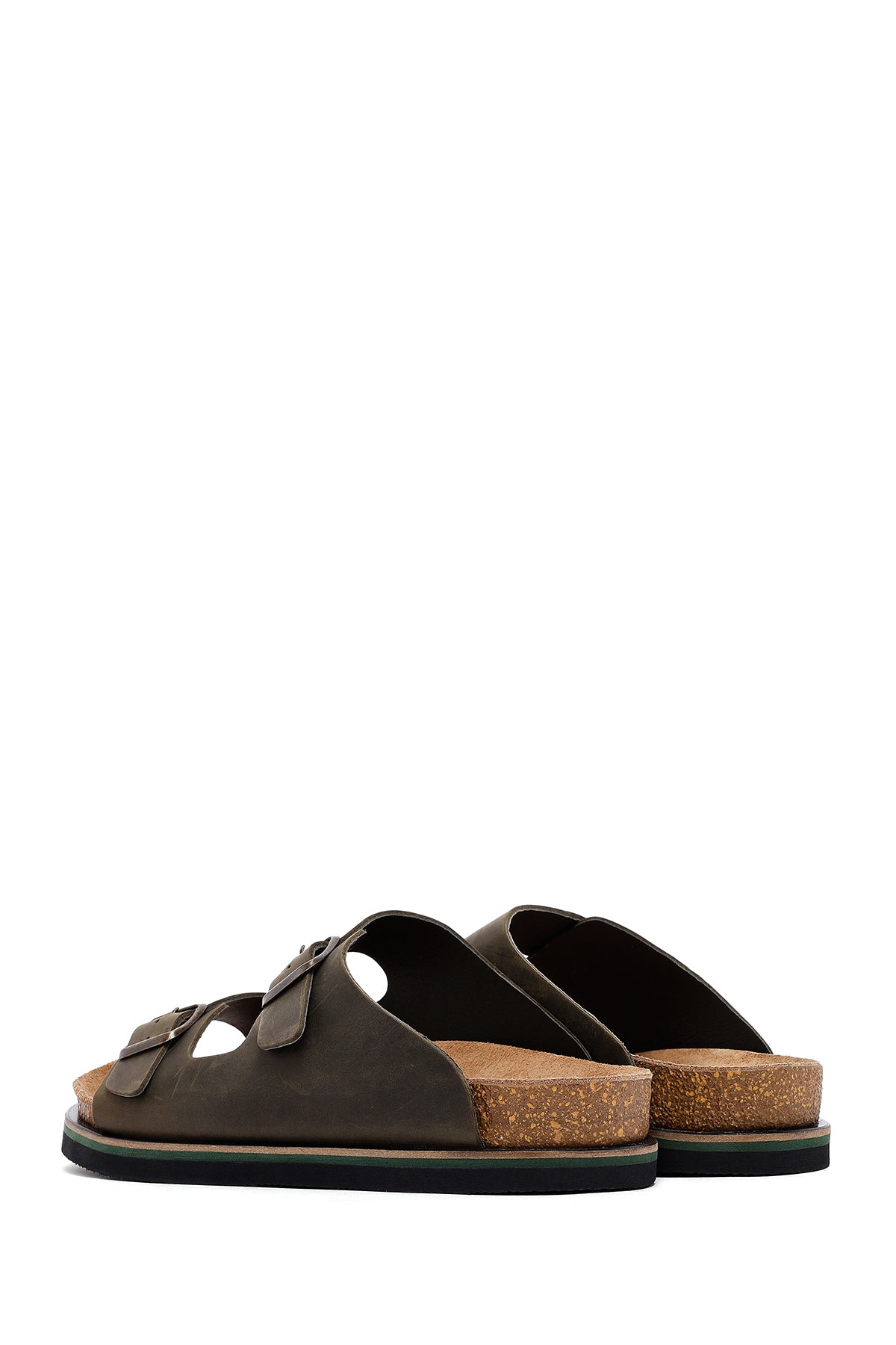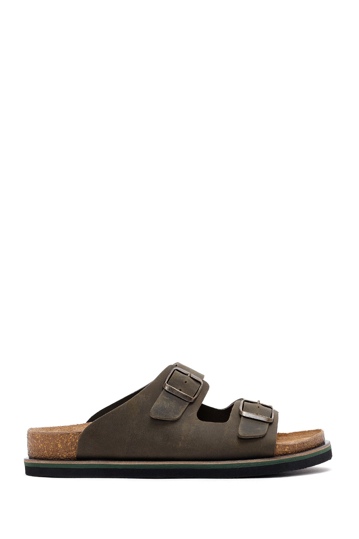 Erkek Haki Tokalı Nubuk Deri Terlik