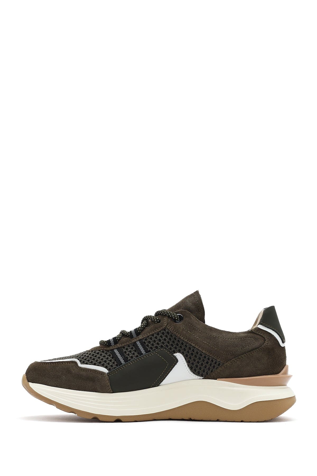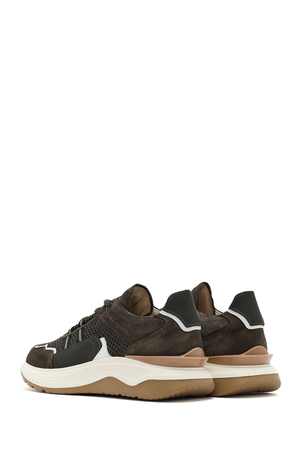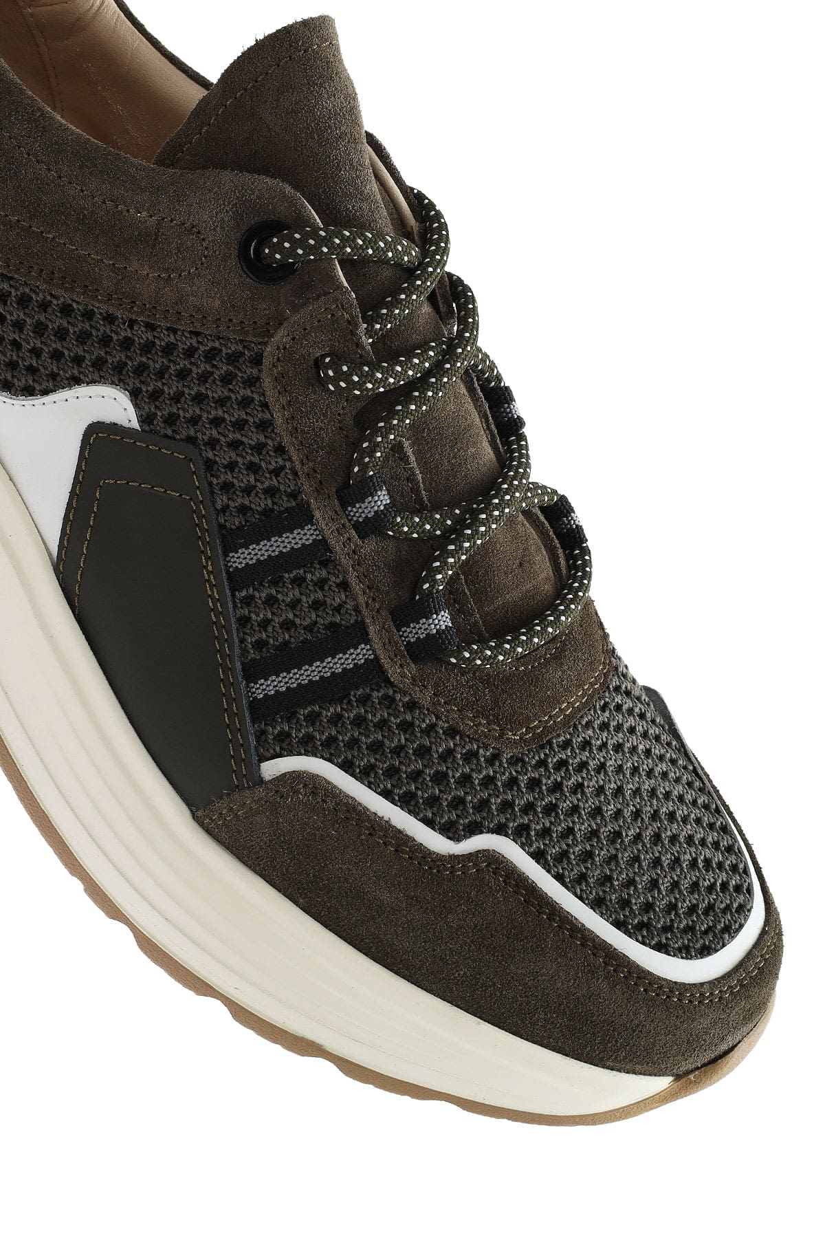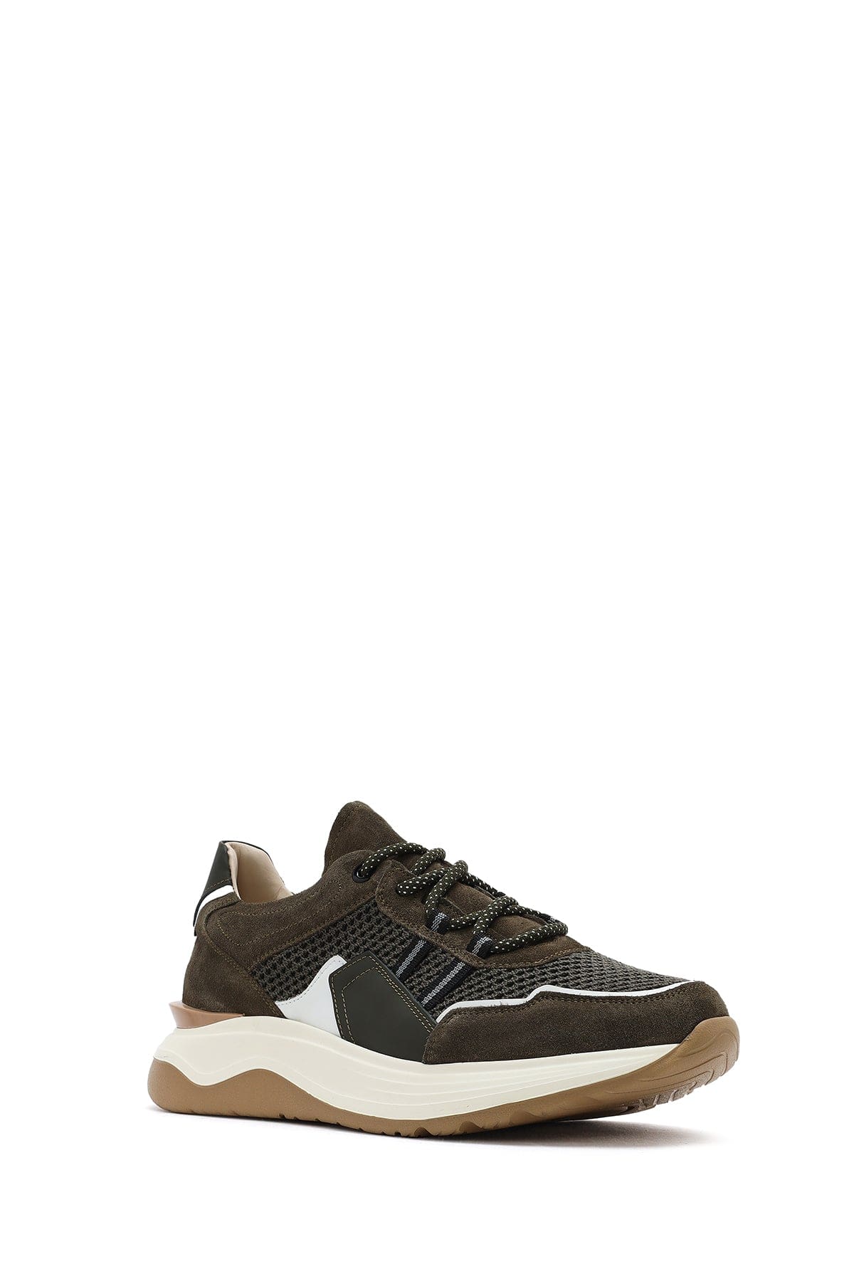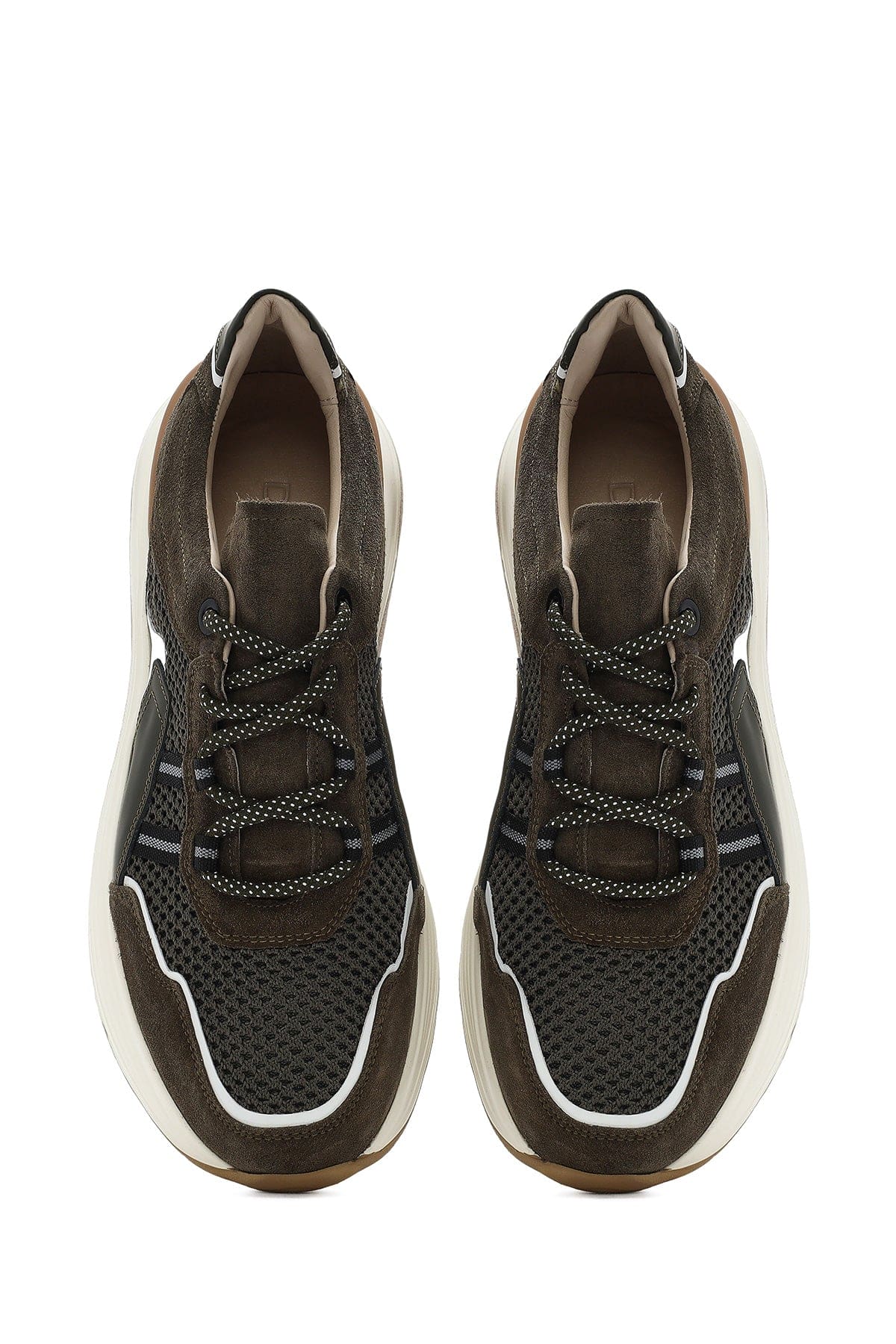 Erkek Haki Bağcıklı Kalın Tabanlı Deri Sneaker