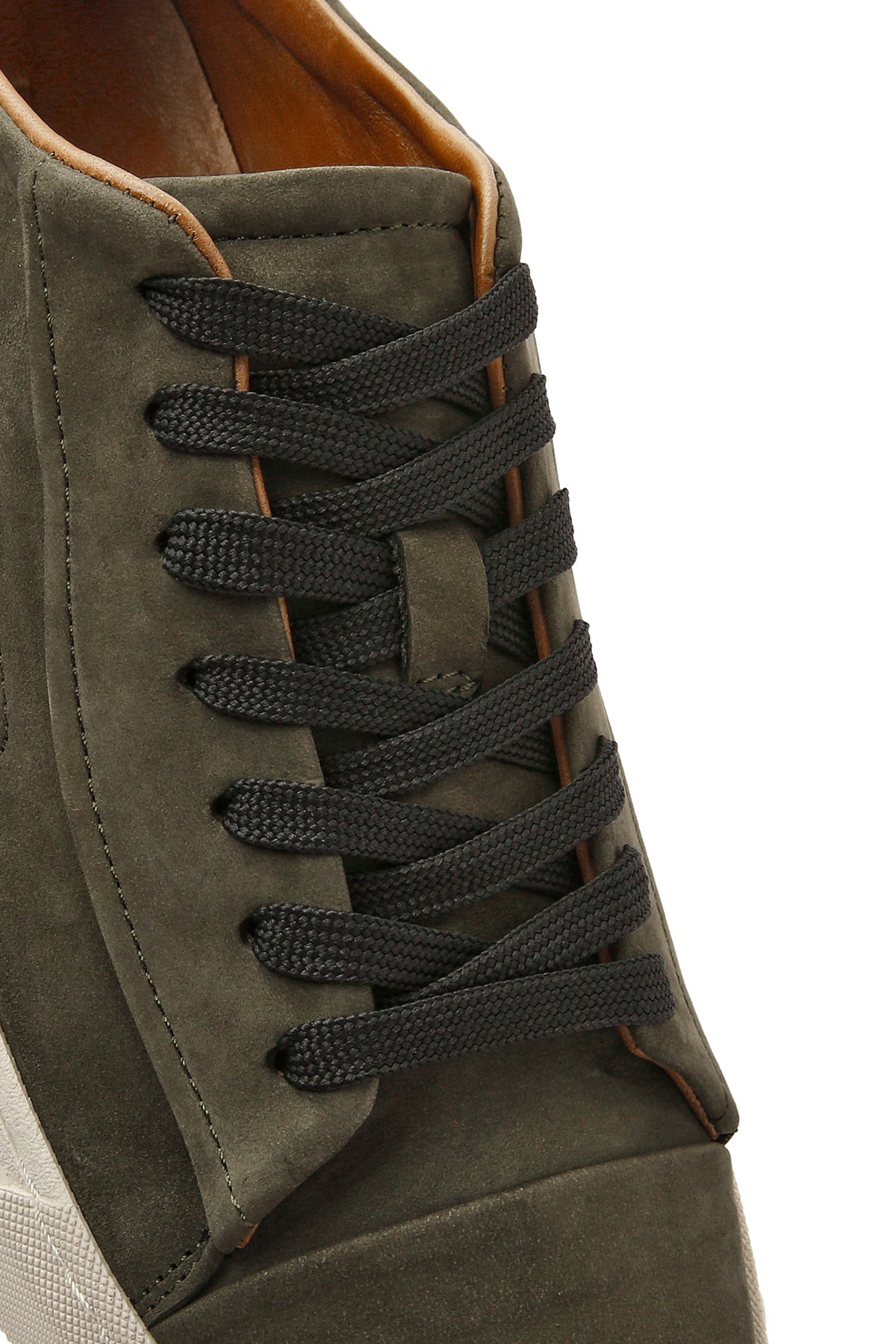 Erkek Haki Bağcıklı Nubuk Deri Sneaker