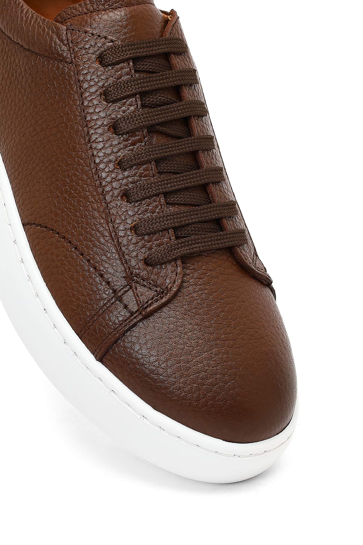 Erkek Taba Bağcıklı Kalın Tabanlı Deri Sneaker