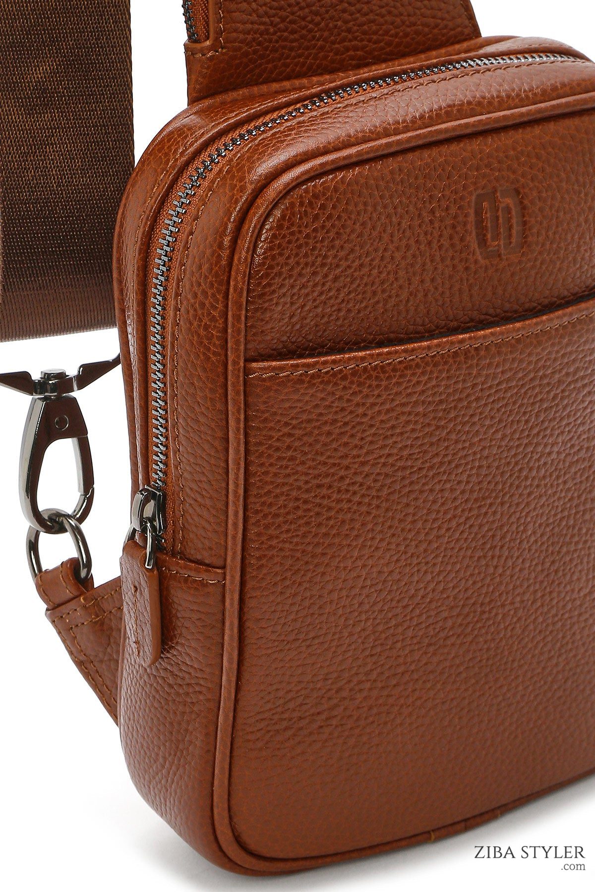 کیف دوشی چرمی مردانه عسلی دری مد